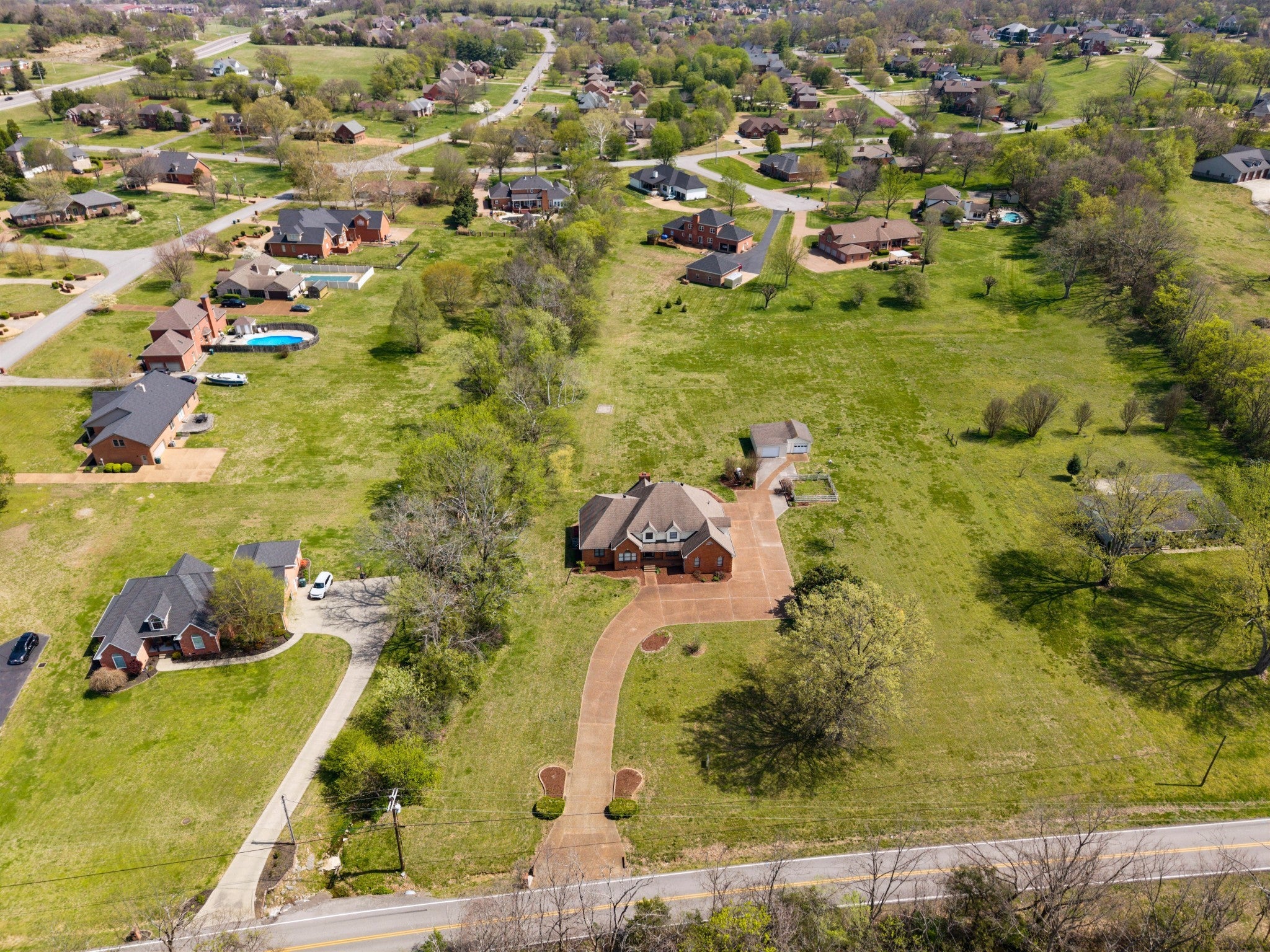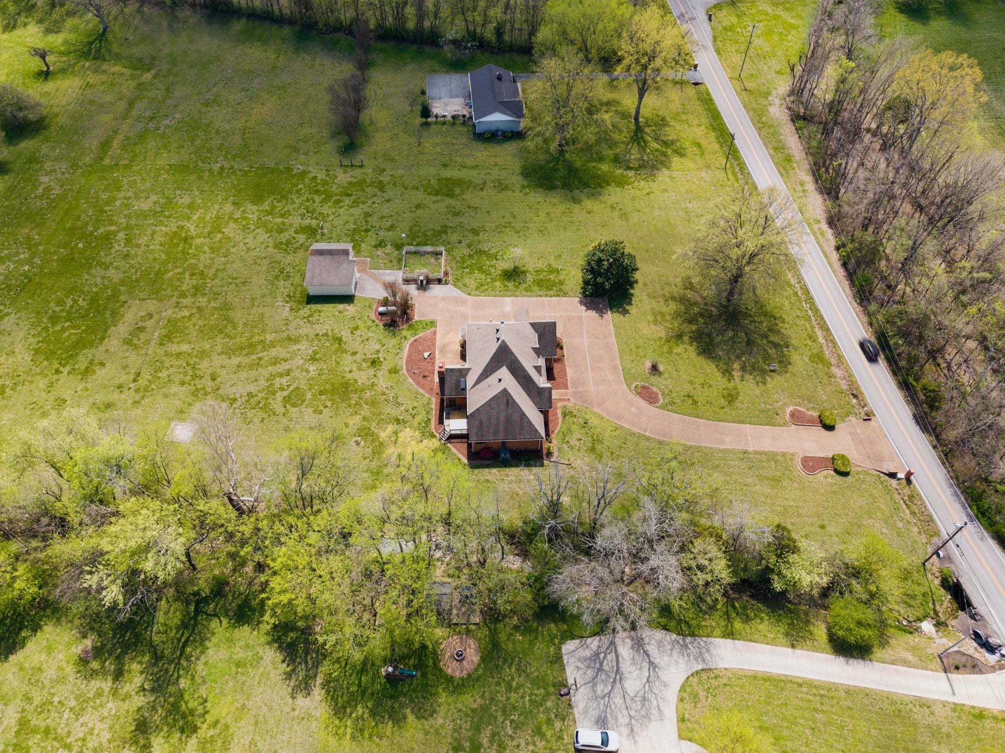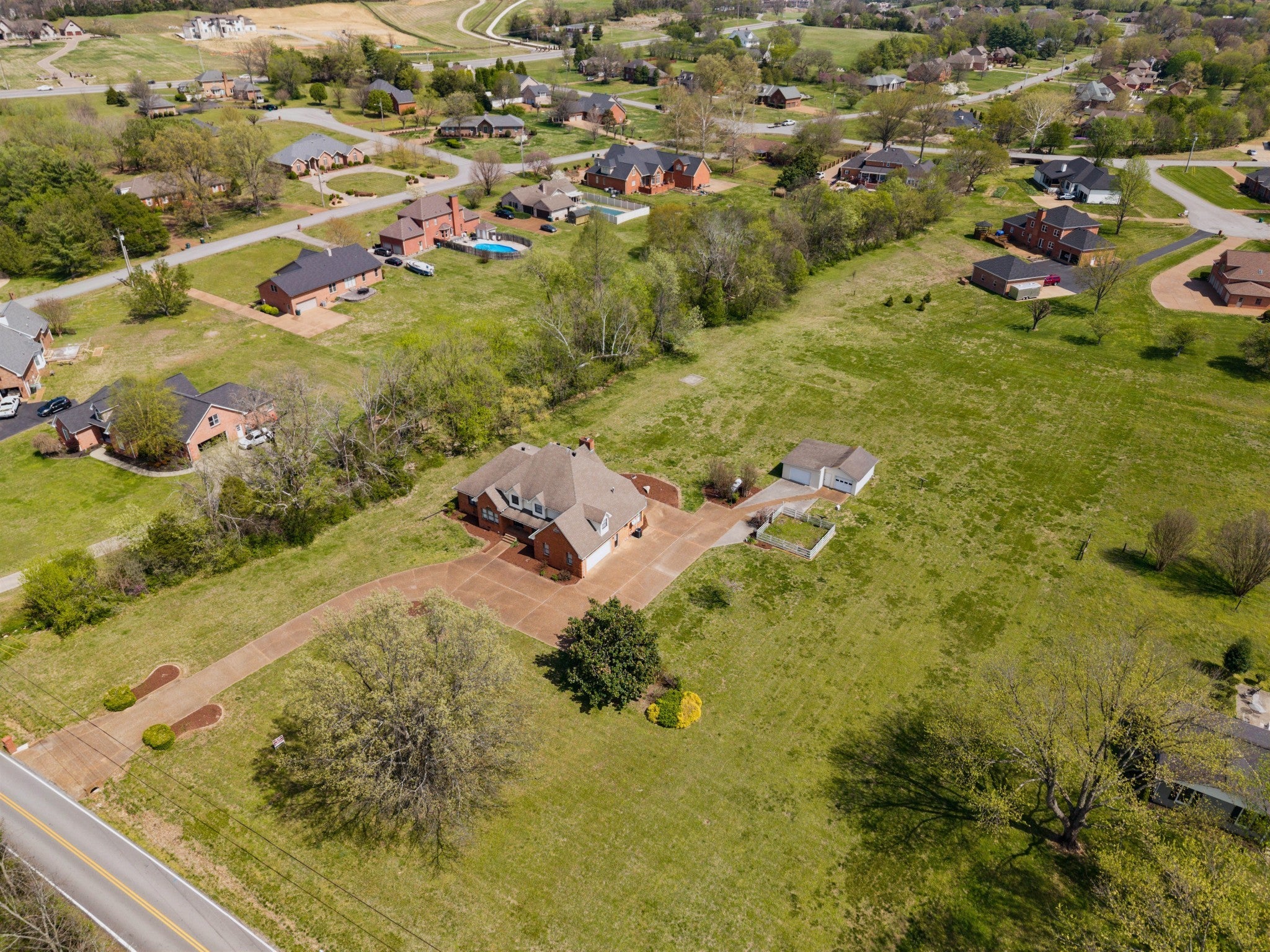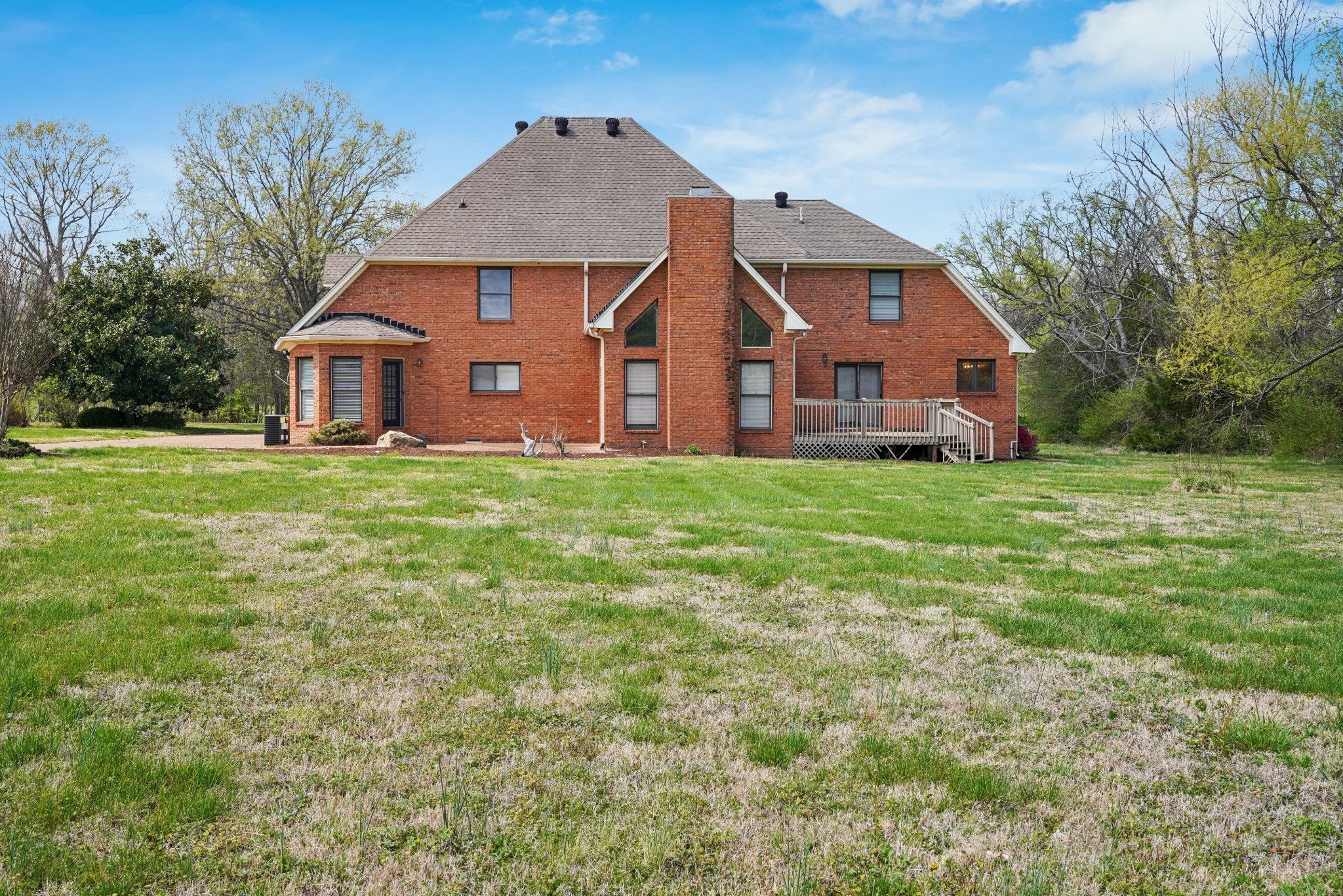 4 BR 3FB, 2 1/2 baths on large 2.98 acre tract that was bought as two tracts together but could be split. Hardwood floors. Deck and patio, 2 car att. garage and detached garage that is wired and had A/C & heat prior. Farm estate feeling but close to town. Large kitchen. Rec. room and offices, large primary bath with tub and shower, has recently been connected to city sewer, has propane tank