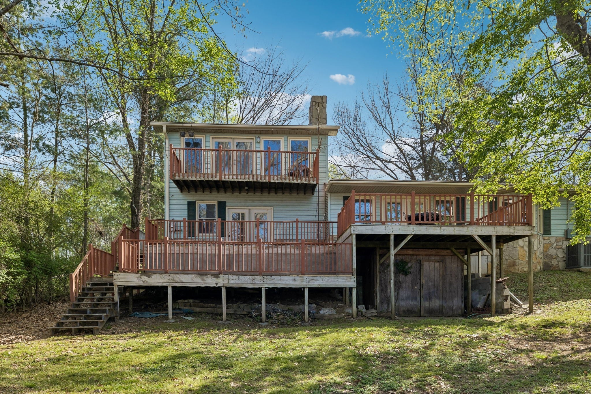 Welcome to your private retreat on Spring Creek—where charm, character, and waterfront living come together. Built in 1970, this inviting lake house offers 2,192 square feet of comfortable living space featuring 3 bedrooms and 3 full bathrooms. Nestled among mature trees with peaceful water views, the home welcomes you with a spacious covered wraparound porch—perfect for relaxing mornings or unwinding in the evening. Inside, you’ll find a warm and functional layout with ample room for family gatherings or weekend getaways. The combination of classic nostalgia and natural surroundings gives this home a timeless appeal. Step outside and enjoy the beauty of lakeside living, with direct access to Spring Creek and a setting that feels both private and serene. Whether you’re looking for a full-time residence, vacation home, or investment opportunity, this property checks all the boxes. Adding to its unique appeal, this home was recently featured on the hit TV show Nashville 911, making it a standout property with a story to tell