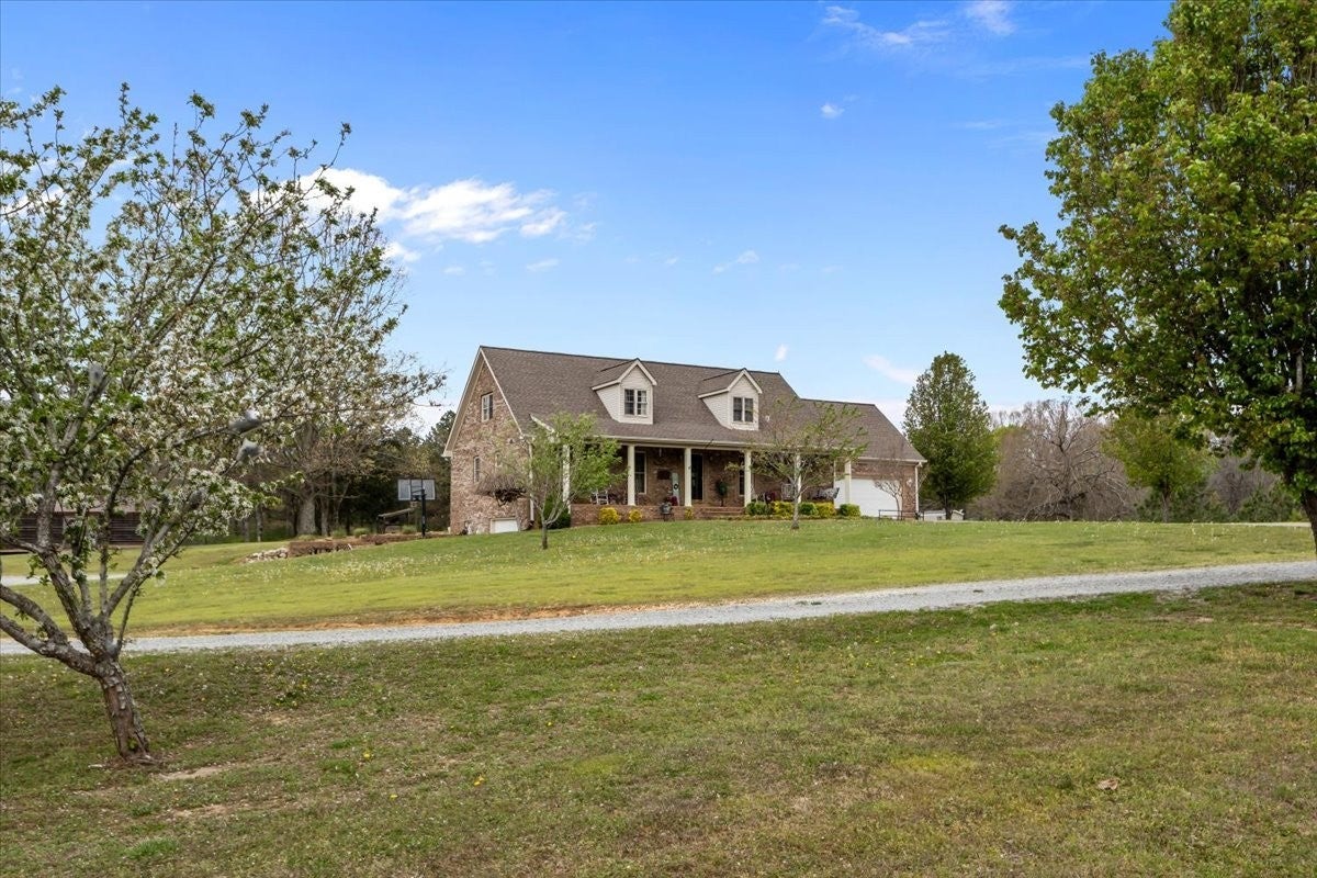 Beautiful brick home on an approximately 9.4-acre parcel in a highly desired neighborhood! This 5-bedroom, 4-bath residence blends generous living spaces with endless potential, offering a perfect canvas for a growing family. The property features an attached garage on both the main level and the basement, ensuring easy access and ample storage. Embrace outdoor living from the covered front porch and entertain guests on the back patio. Enjoy expansive open fields and unrestricted land—ideal for gardening, livestock, or future outbuildings. Water needs are covered with city water connected, plus a dedicated well for livestock or gardening. Just a short drive to multiple boat ramps, this home combines serene country living with convenient recreation. With plenty of room to add more bedrooms or customize spaces to suit your lifestyle, this is a rare opportunity in a coveted location!