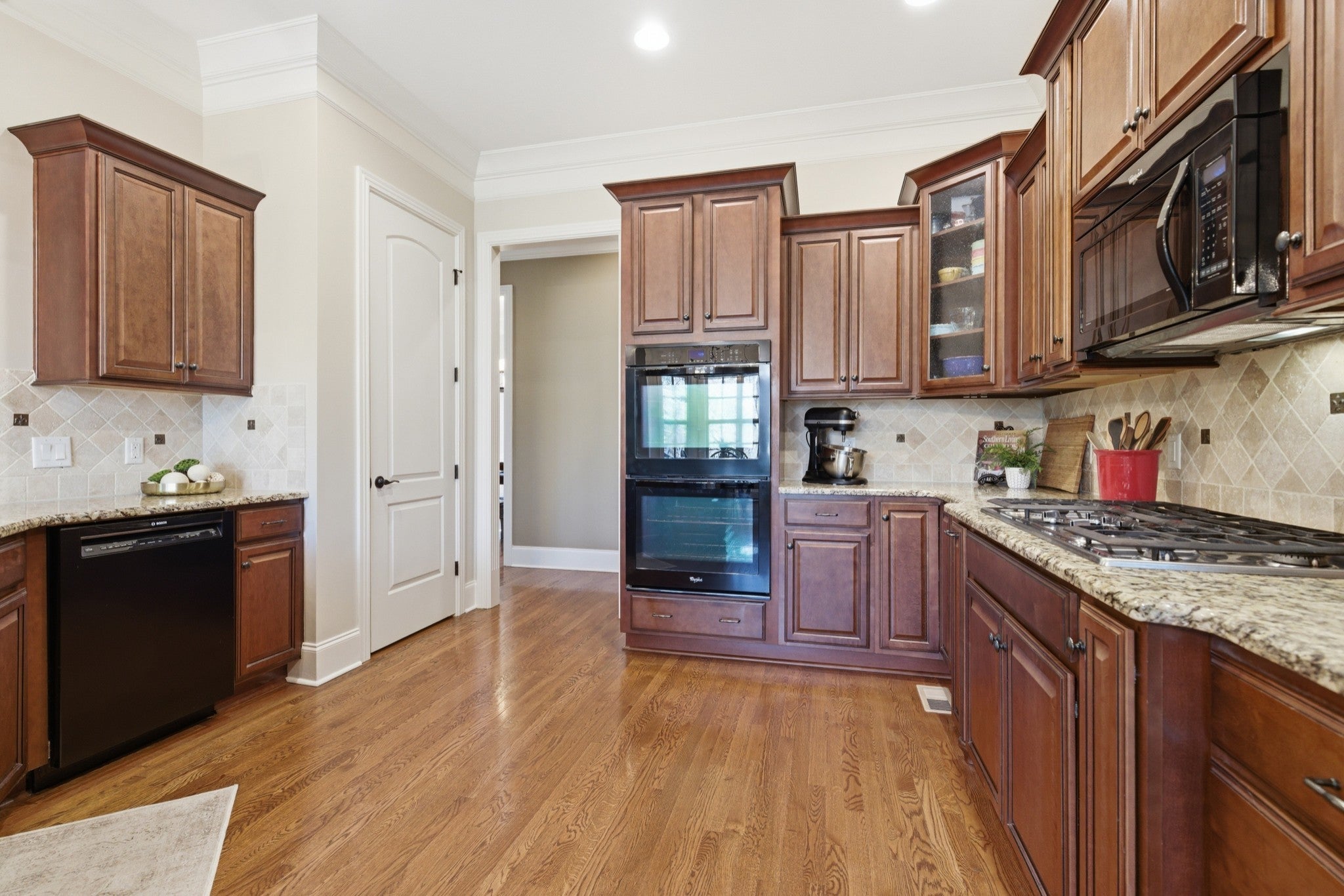 - Double Oven, Cooktop, Dishwasher, Disposal, Microwave