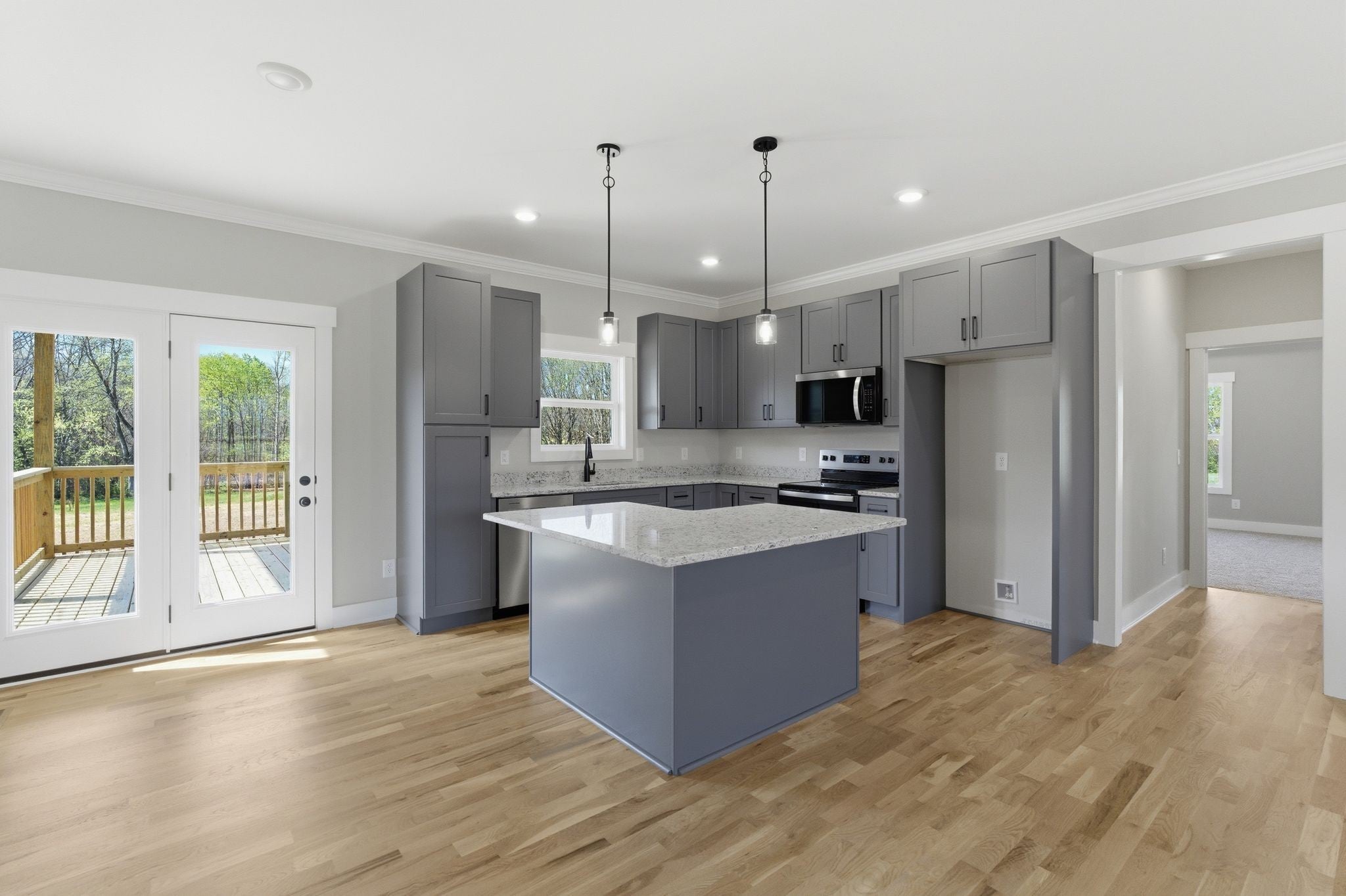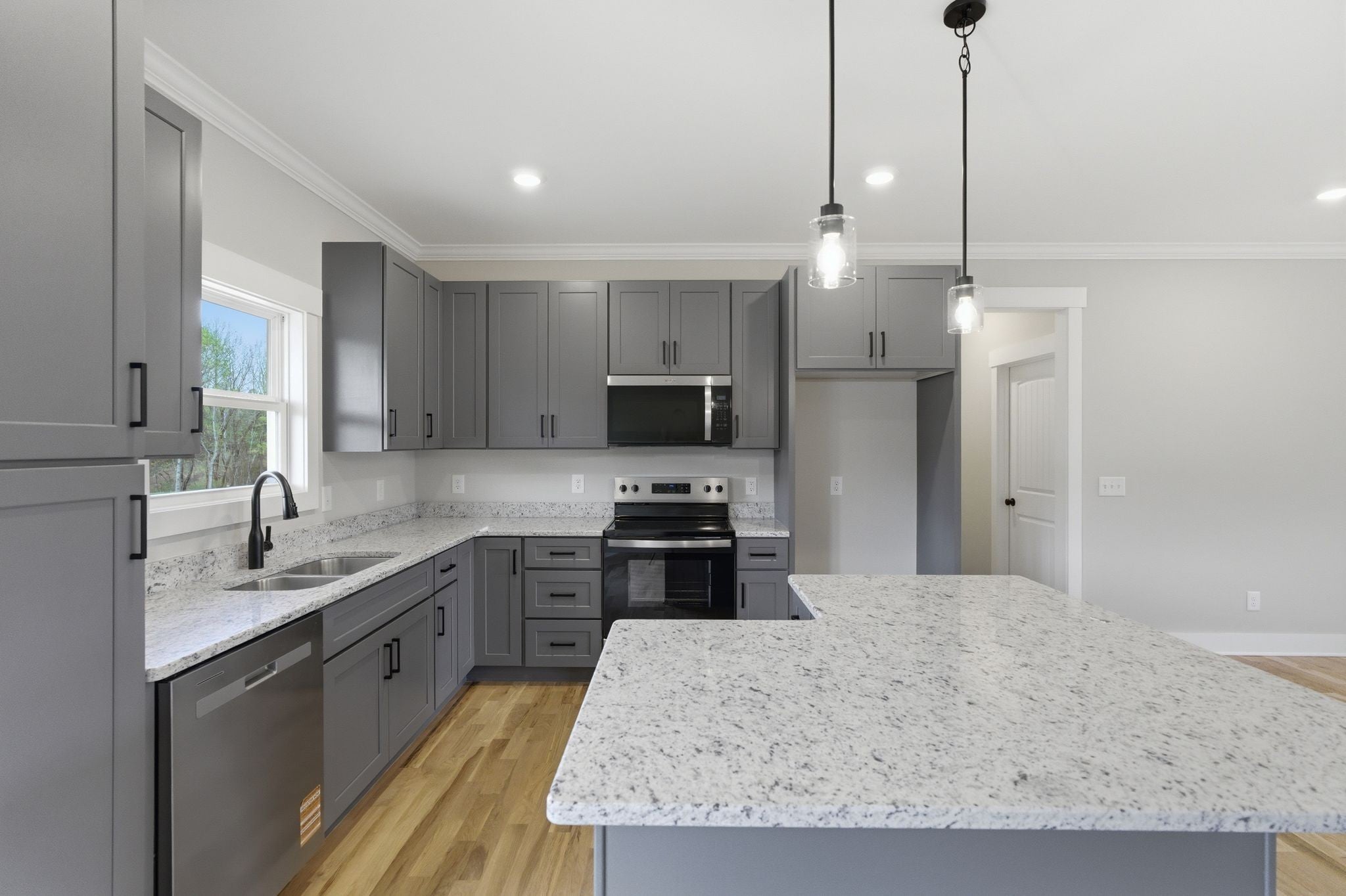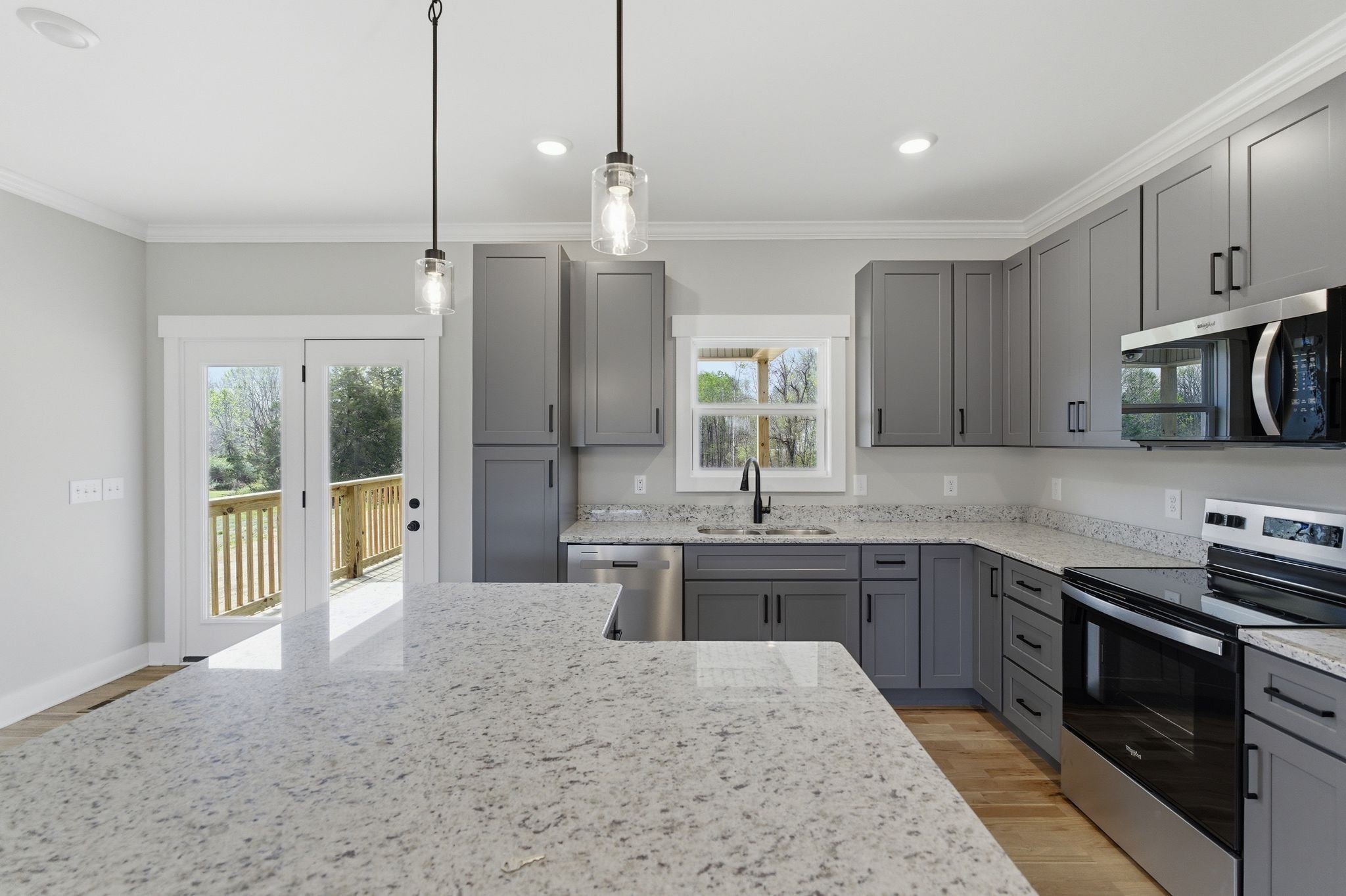 - Electric Range, Dishwasher, Disposal, Microwave