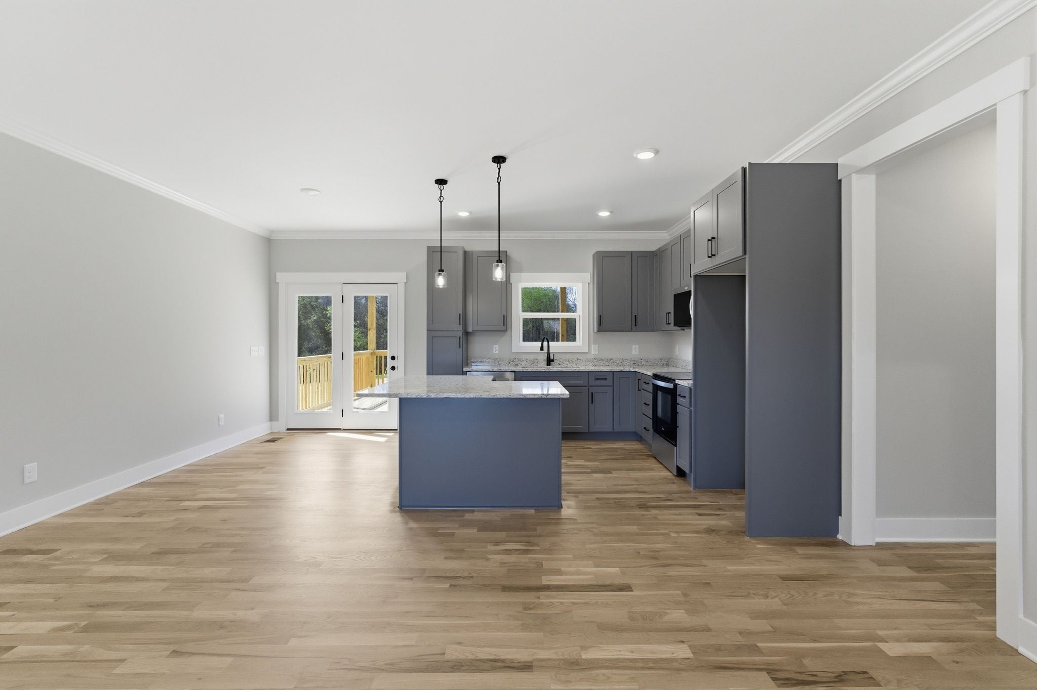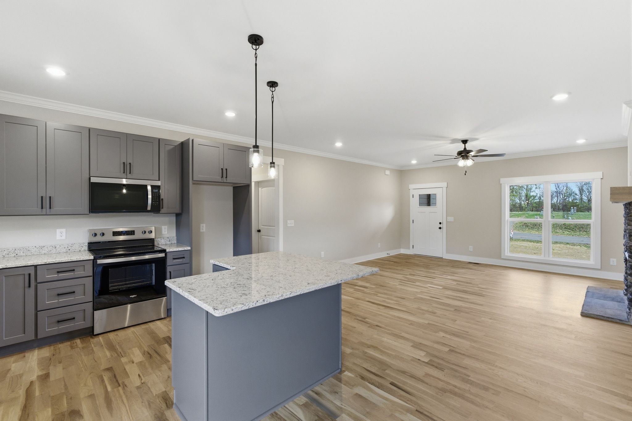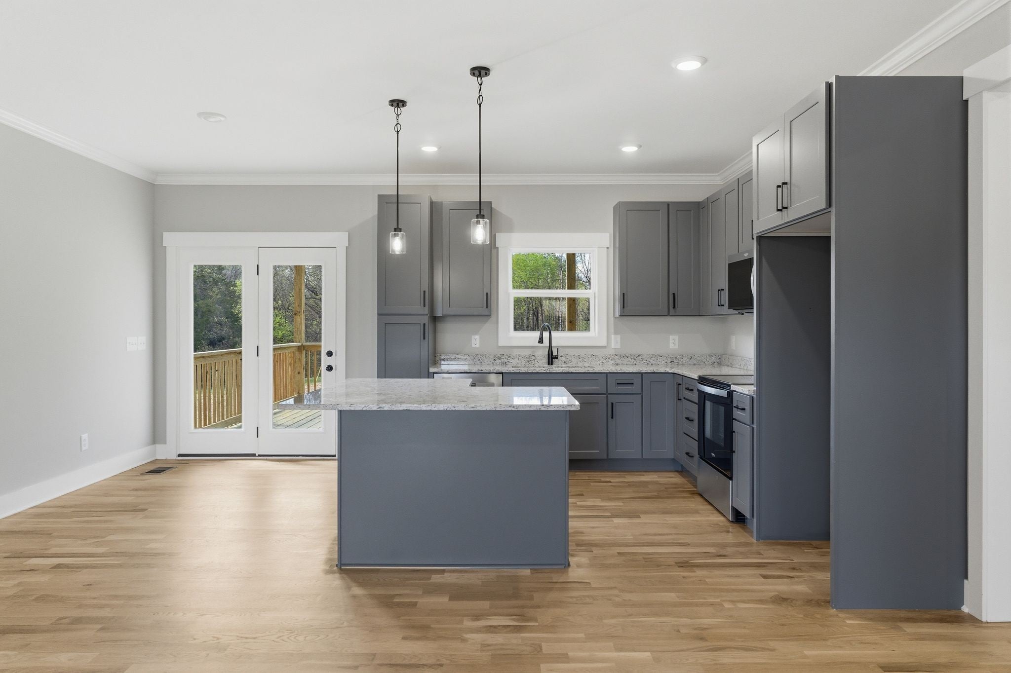- Electric Range, Dishwasher, Disposal, Microwave
