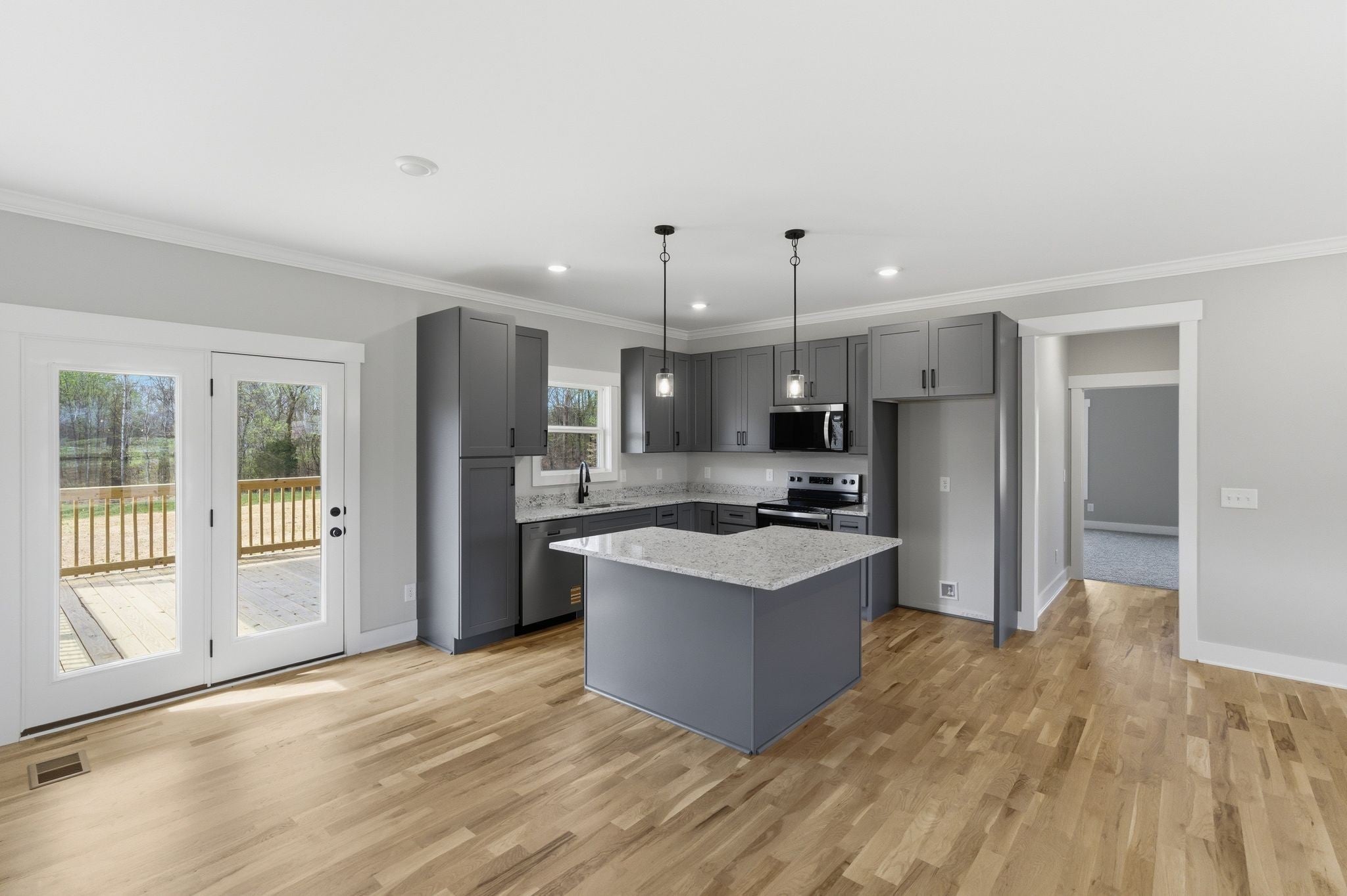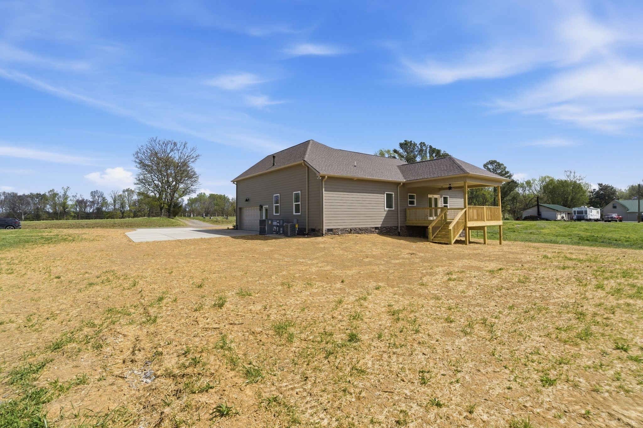Just completed...professional photos coming Monday...Move in ready! Enjoy the peace of mind of not having to worry for many years about repairs or maintenance that comes with new construction...One level, open main living area and kitchen, split bedroom floorplan, and a huge bonus room over the garage. The exterior offers a level, one acre lot, covered front porch, large covered back deck, and an oversized garage. Home has been wired with an exterior plug to connect any generator to should power ever go out!