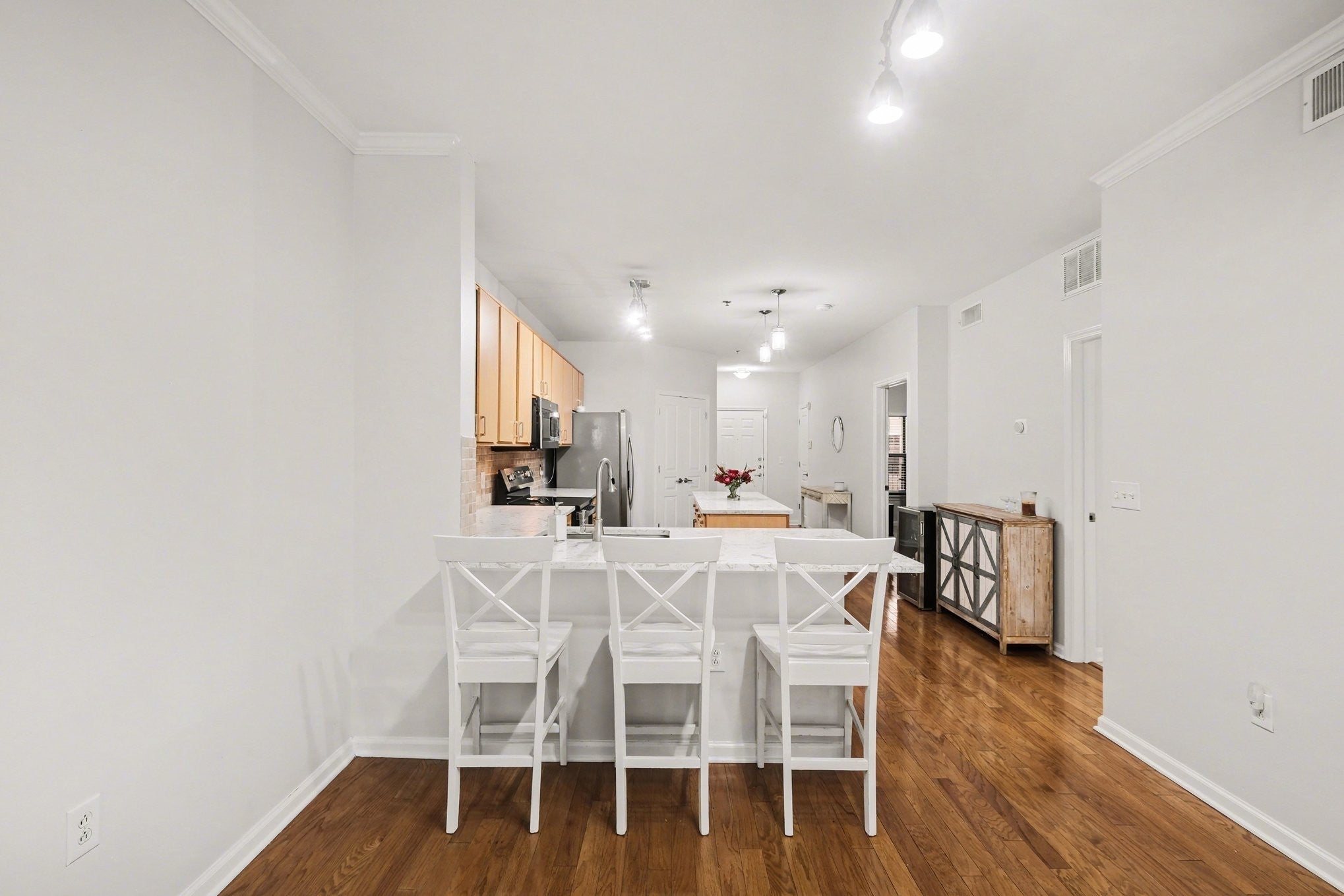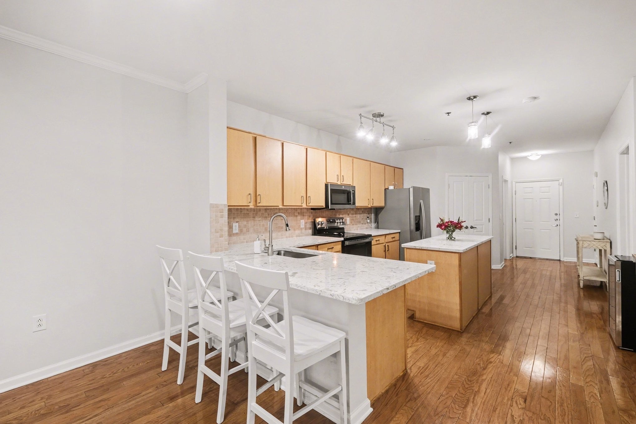 Motivated seller! Incredible Midtown condo walkable to Music Row, Midtown, Vanderbilt, West End, Hillsboro Village, The Gulch, and more. Easy living with 2 assigned garage parking spaces. Long-term rental opportunity. This spacious 2-bedroom, 2-bath condo offers a fantastic layout with a massive kitchen featuring a large center island, full-size laundry room, and oversized walk-in pantry. Both bedrooms include generous walk-in closets. Recent updates include new carpet, bathroom flooring, and fresh paint in 2026. Interior finishes shine with gorgeous quartz kitchen countertops and designer lighting. One-of-a-kind covered walk-out patio balcony. Prime location near Vanderbilt and Belmont Universities, Vanderbilt University Medical Center, Ascension Saint Thomas, and HCA hospital campuses, plus restaurants, coffee shops, bars, music venues, hotels, corporate offices and Turnip Truck grocery just 2 blocks away. Enjoy amenities including a 24-hour fitness center, elegant lounges, workspace lobby, rooftop, elevators, gated entry, and onsite management. Amenities are shared with only 6 floors. Don’t miss this amazing opportunity in the heart of Midtown!