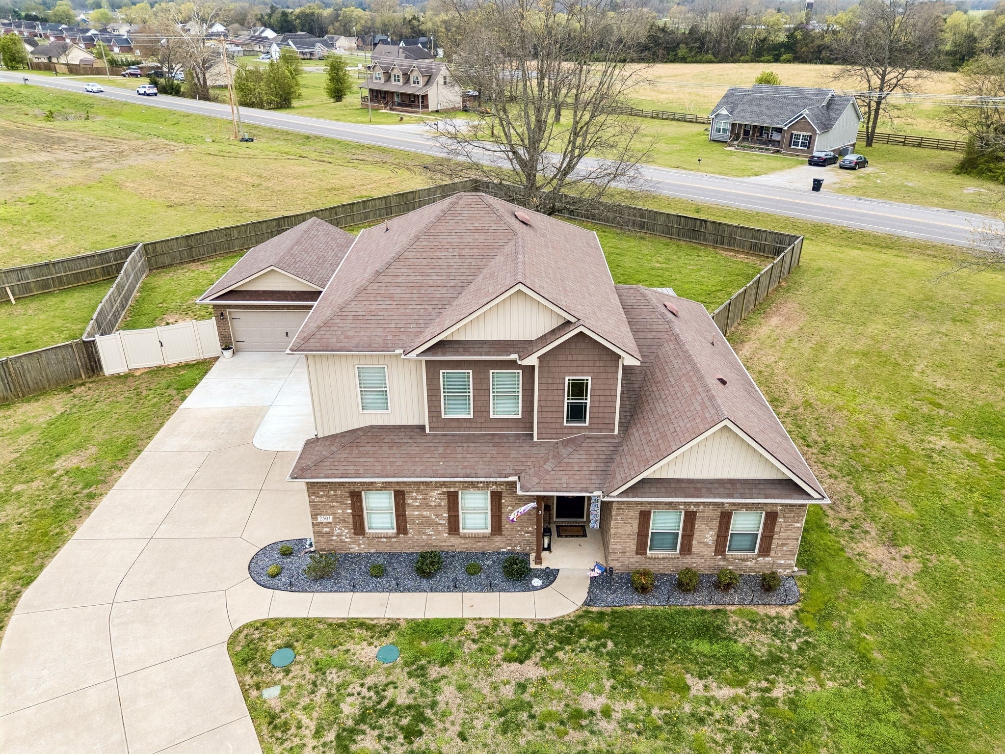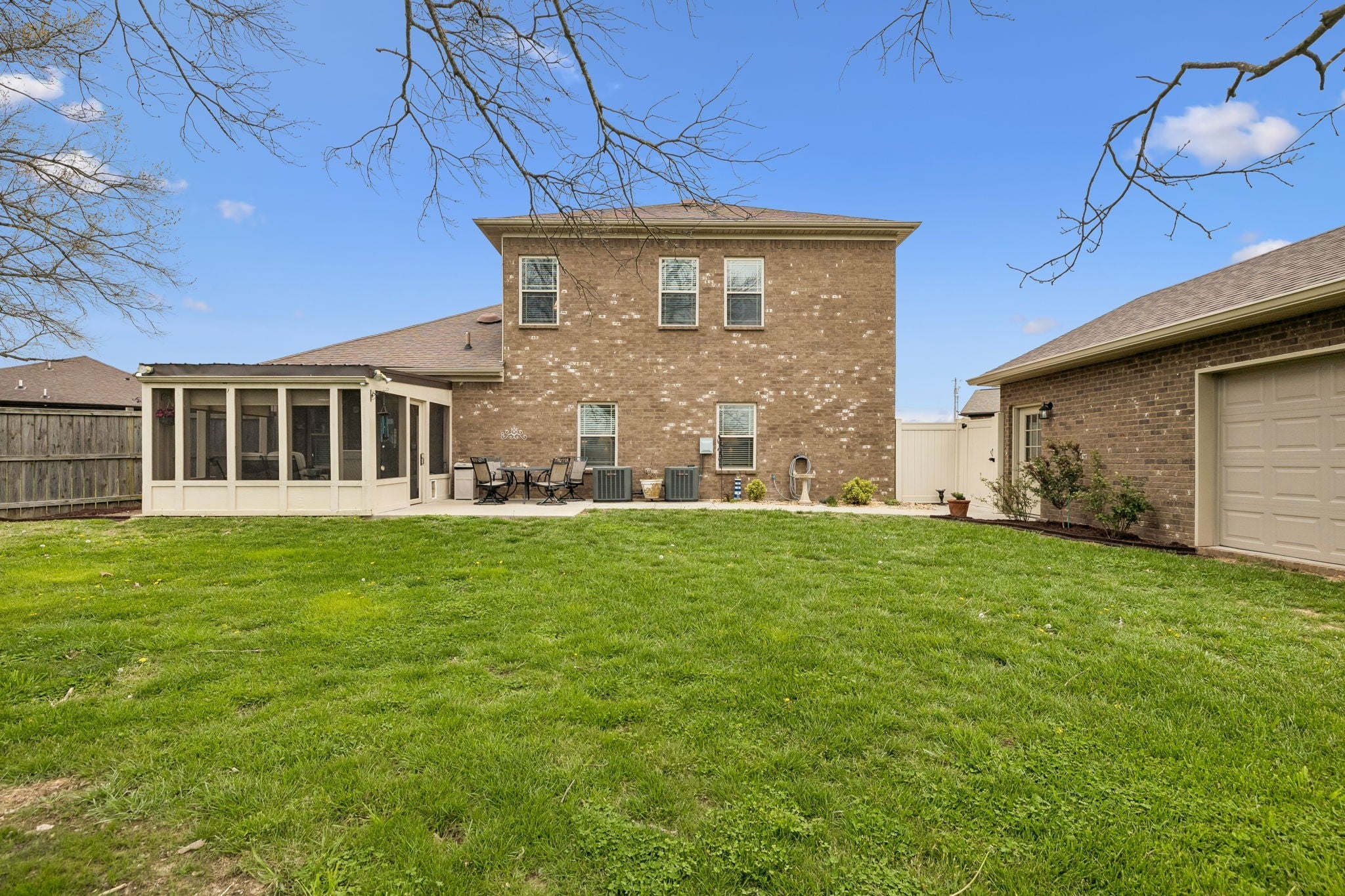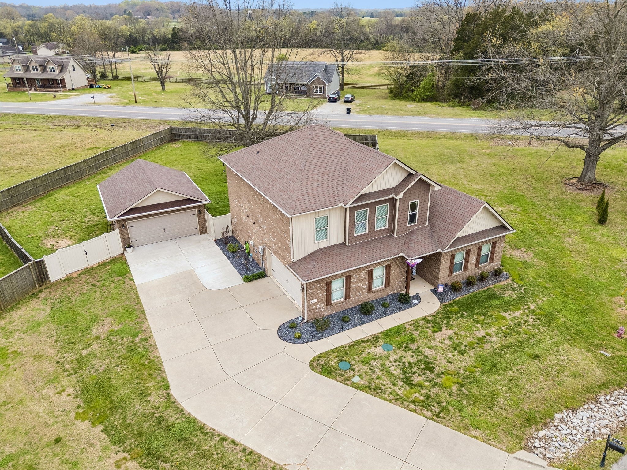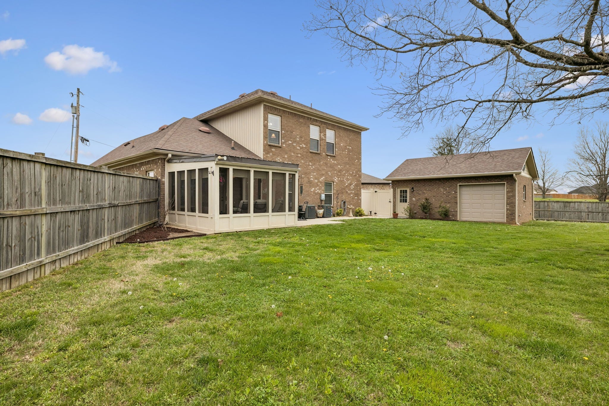Don't miss this immaculate brick home situated on one of the largest lots in the neighborhood! Enjoy these spring days sitting in newly added, large sunroom out back, looking over the full privacy fenced back yard. Inside you will find an open kitchen with upgraded cabinets, granite countertops and extra large island. The oversized primary bedroom is on the main level, with full attached bath including double vanities and brand new walk-in shower. Hardwoods throuout the main level blend a large sitting room and separate living room which are perfect for entertaining. Upstairs has 3 spacious bedrooms and large bonus room, perfect for game nights, home office or whatever functions you desire. All of this is situated on large half acre level lot with mature trees, and a newly built 20x24 brick 2 car detached garage/shop with 2 overhead doors. You won't find another home as well maintained for the price. And best for last, there is NO HOA!