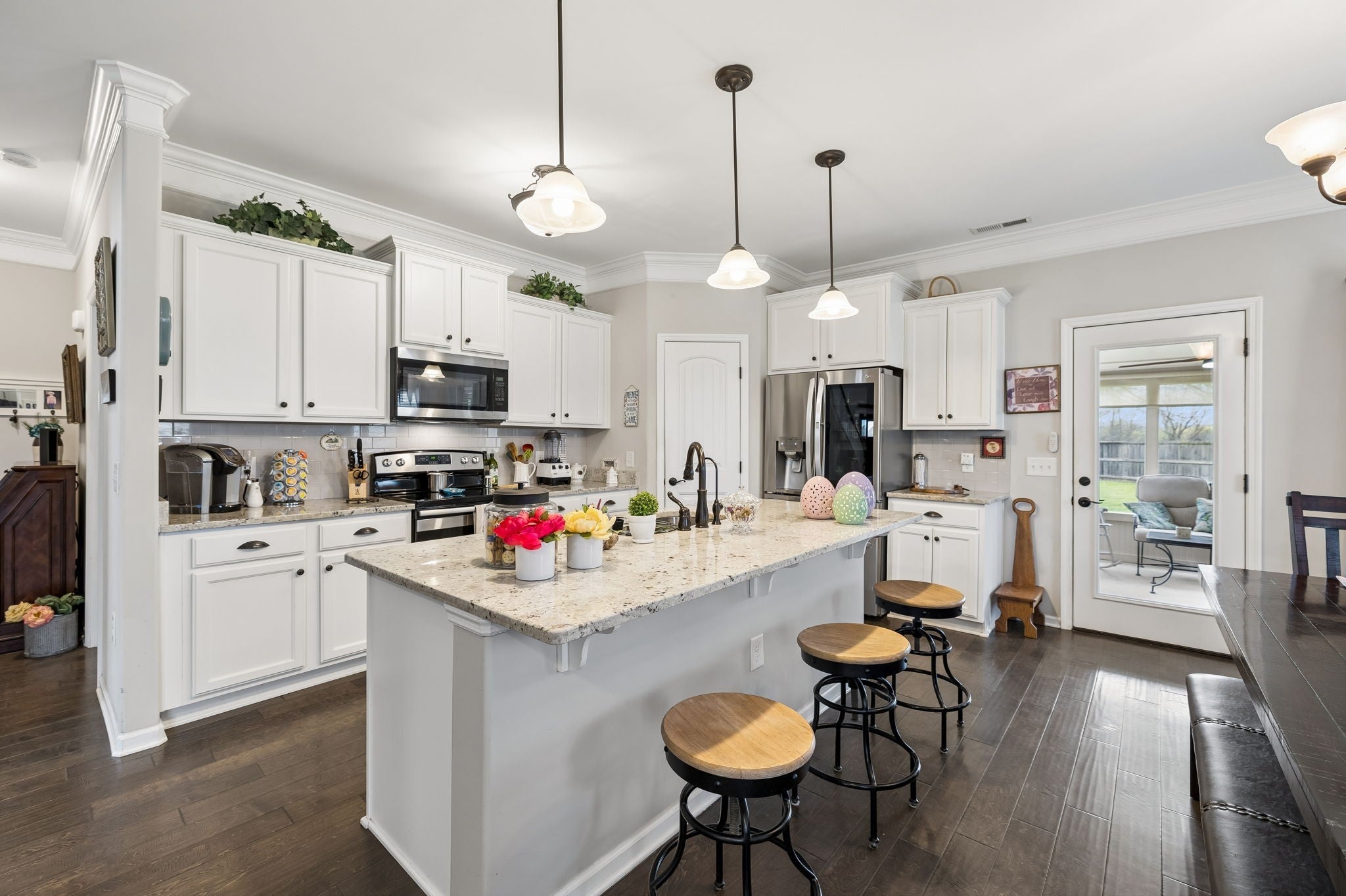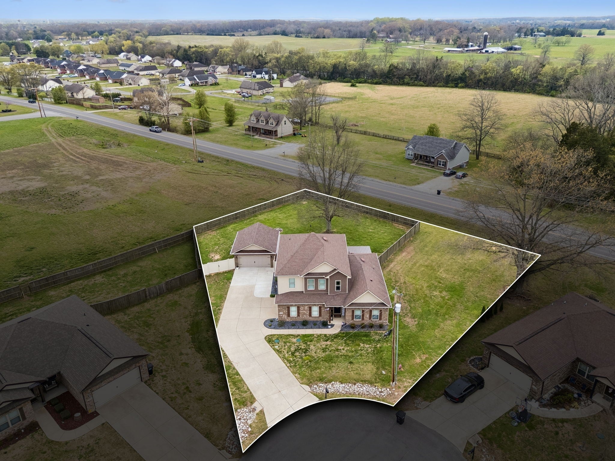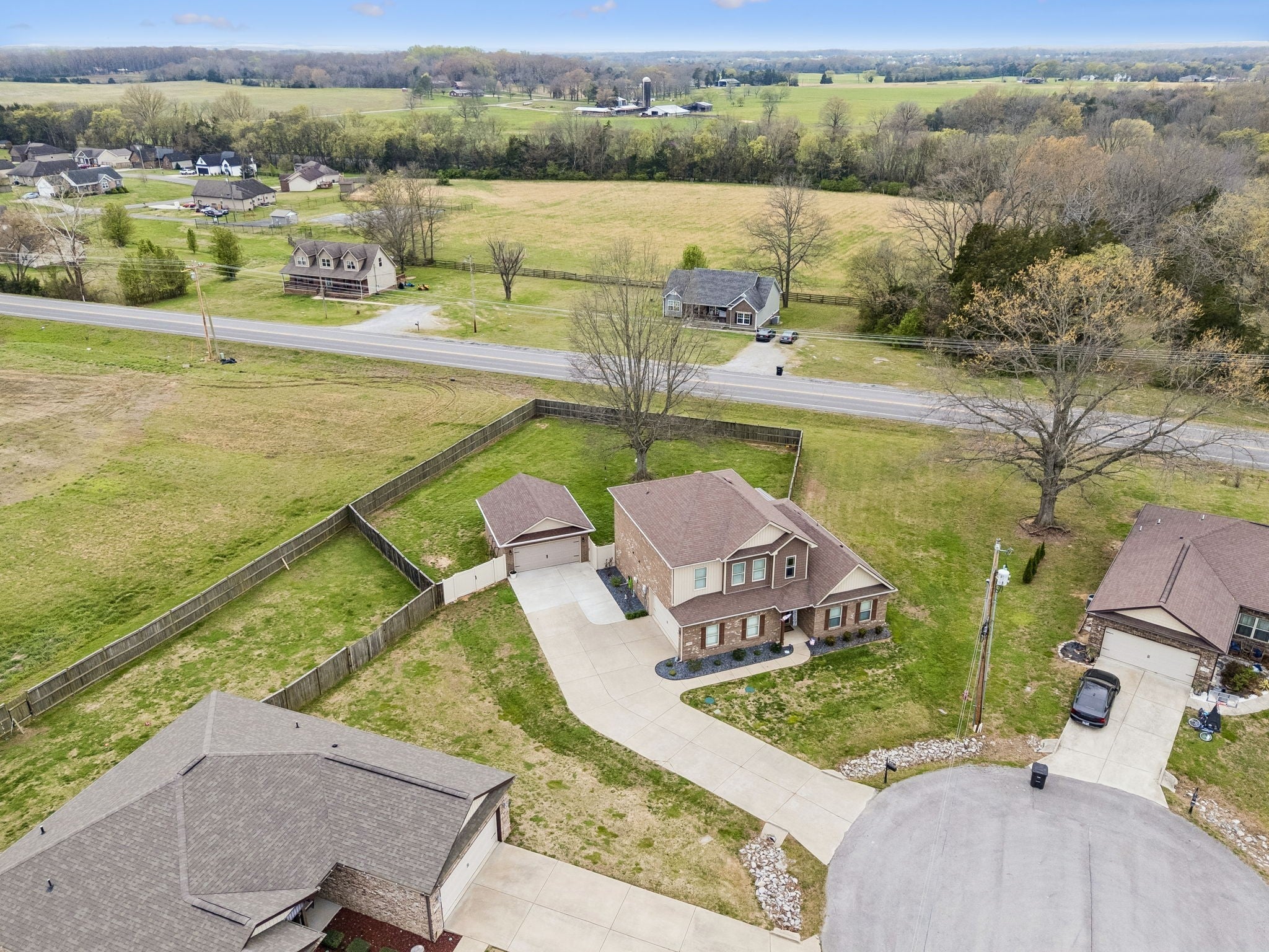 Don't miss this immaculate brick home situated on one of the largest lots in the neighborhood! Enjoy these spring days sitting in newly added, large sunroom out back, looking over the full privacy fenced back yard. Inside you will find an open kitchen with upgraded cabinets, granite countertops and extra large island. The oversized primary bedroom is on the main level, with full attached bath including double vanities and brand new walk-in shower. Hardwoods throuout the main level blend a large sitting room and separate living room which are perfect for entertaining. Upstairs has 3 spacious bedrooms and large bonus room, perfect for game nights, home office or whatever functions you desire. All of this is situated on large half acre level lot with mature trees, and a newly built 20x24 brick 2 car detached garage/shop with 2 overhead doors. You won't find another home as well maintained for the price. And best for last, there is NO HOA!