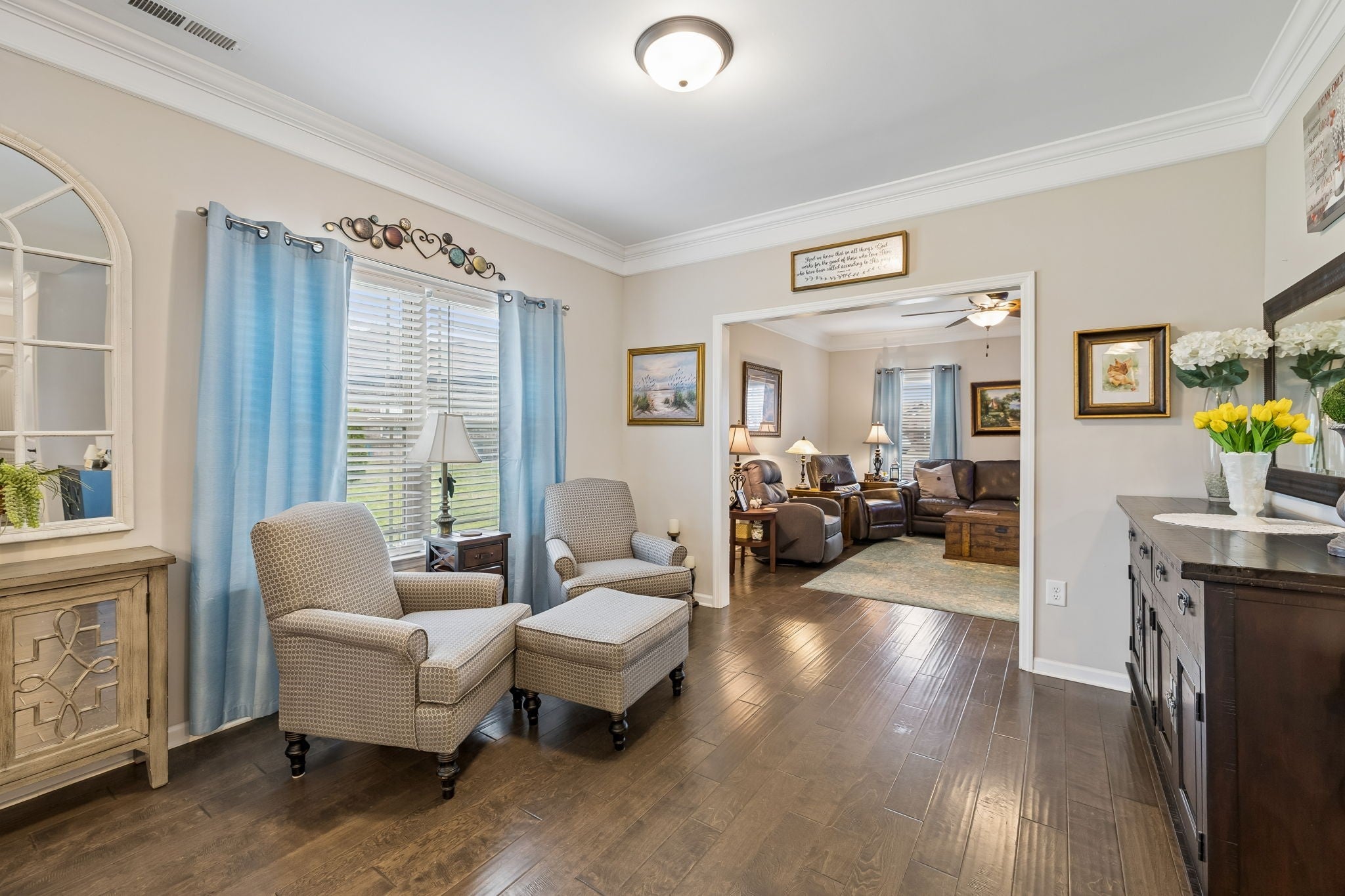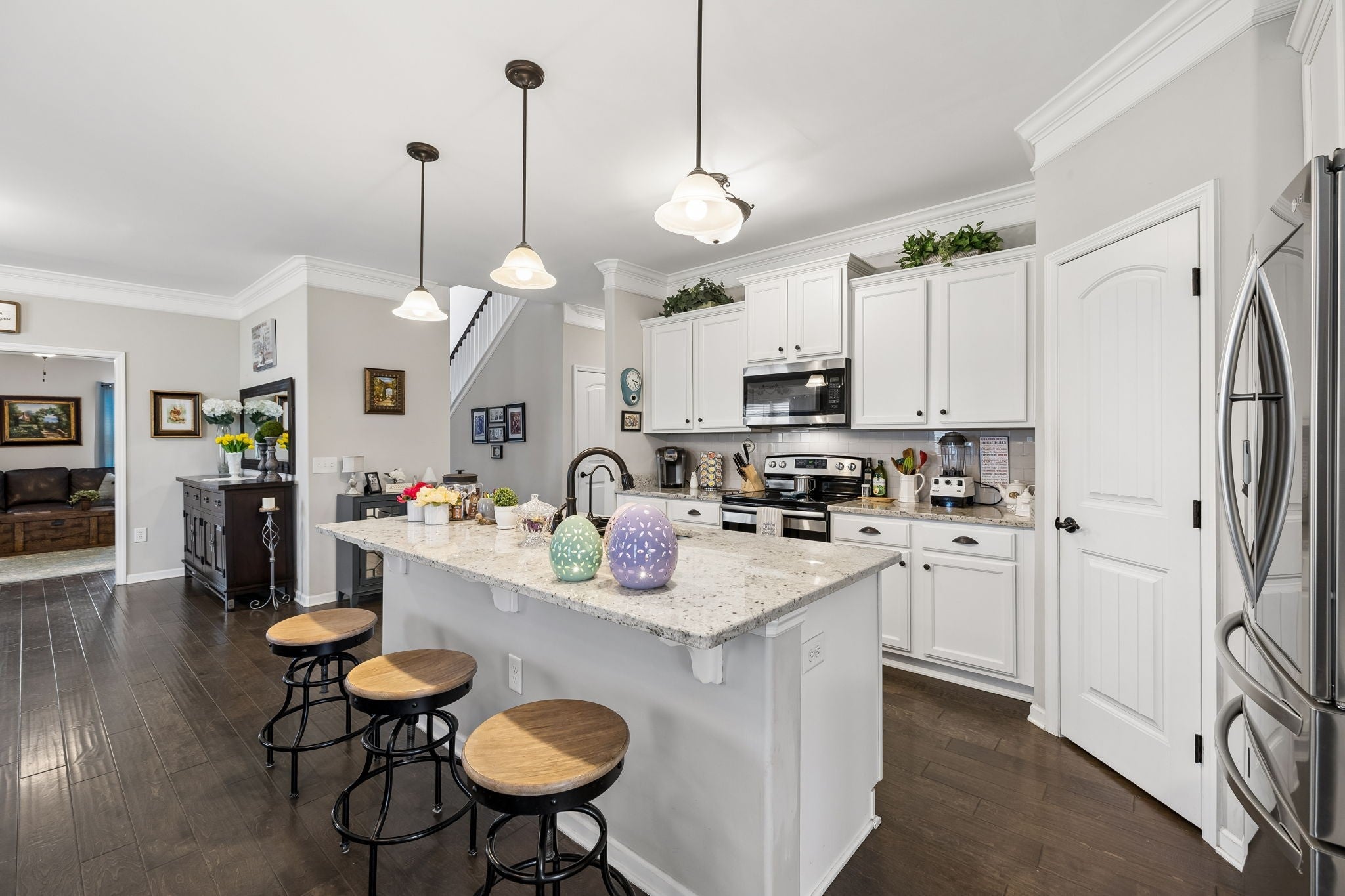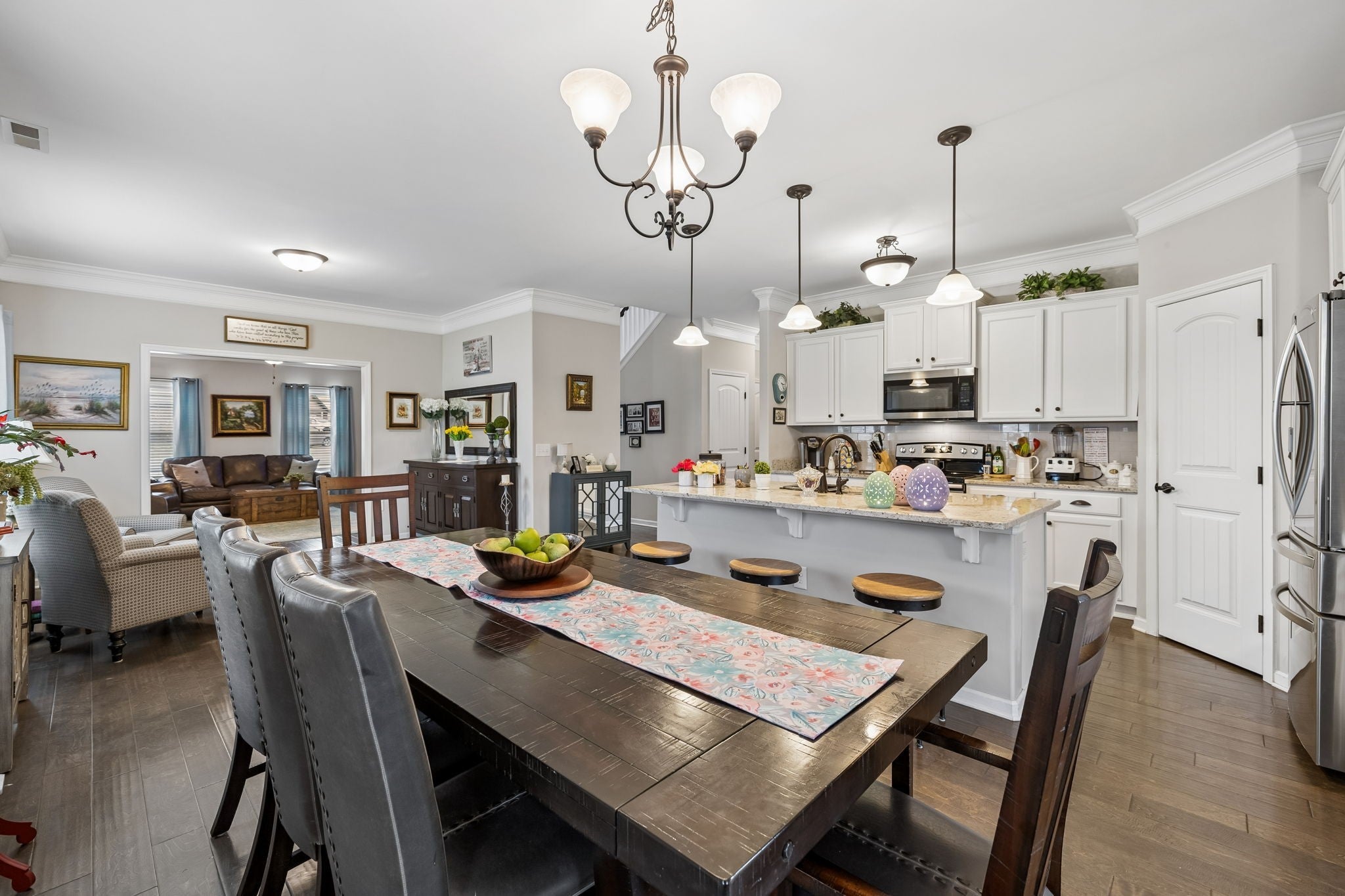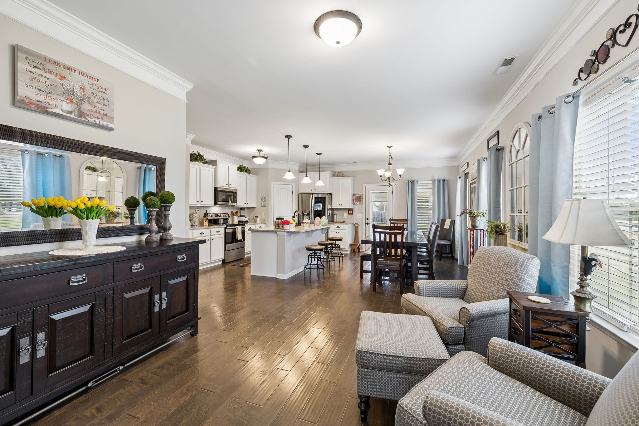 Don't miss this immaculate brick home situated on one of the largest lots in the neighborhood! Enjoy these spring days sitting in newly added, large sunroom out back, looking over the full privacy fenced back yard. Inside you will find an open kitchen with upgraded cabinets, granite countertops and extra large island. The oversized primary bedroom is on the main level, with full attached bath including double vanities and brand new walk-in shower. Hardwoods throuout the main level blend a large sitting room and separate living room which are perfect for entertaining. Upstairs has 3 spacious bedrooms and large bonus room, perfect for game nights, home office or whatever functions you desire. All of this is situated on large half acre level lot with mature trees, and a newly built 20x24 brick 2 car detached garage/shop with 2 overhead doors. You won't find another home as well maintained for the price. And best for last, there is NO HOA!