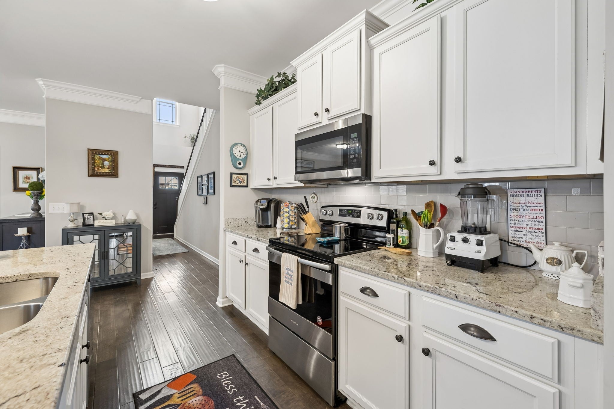 - Electric Oven, Electric Range, Dishwasher, Disposal, Microwave, Stainless Steel Appliance(s)