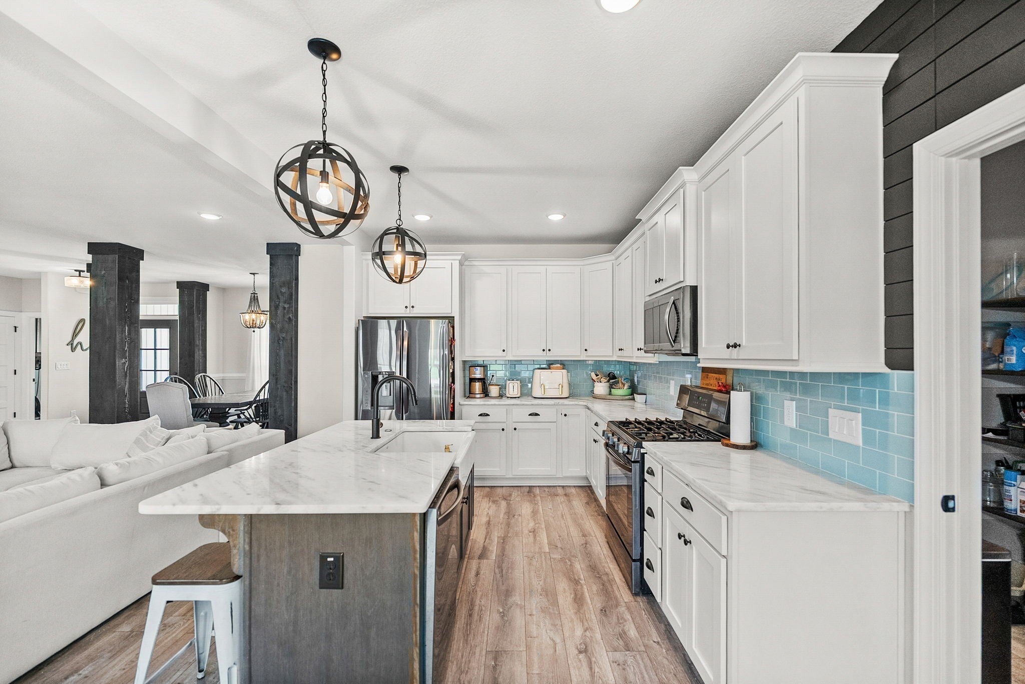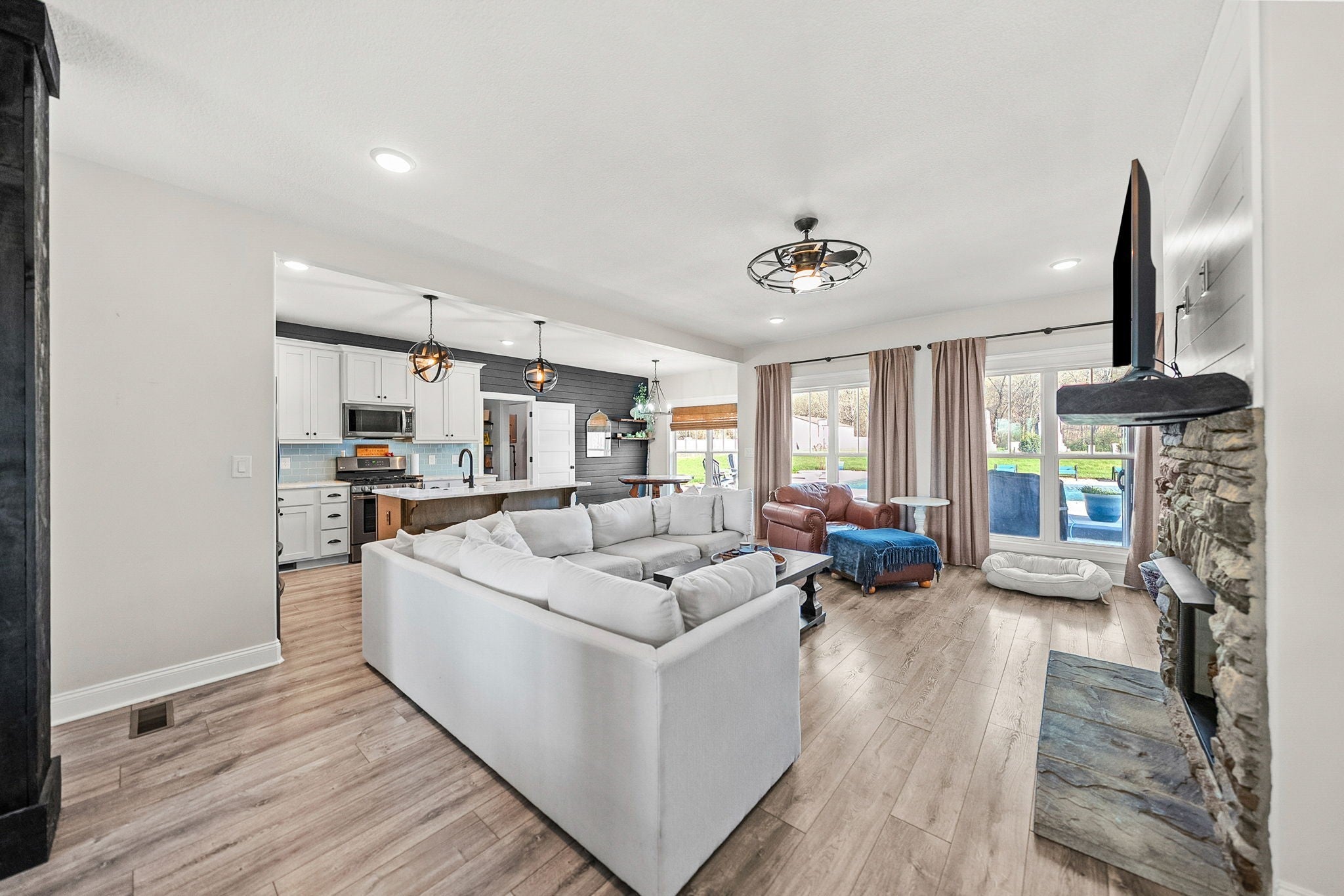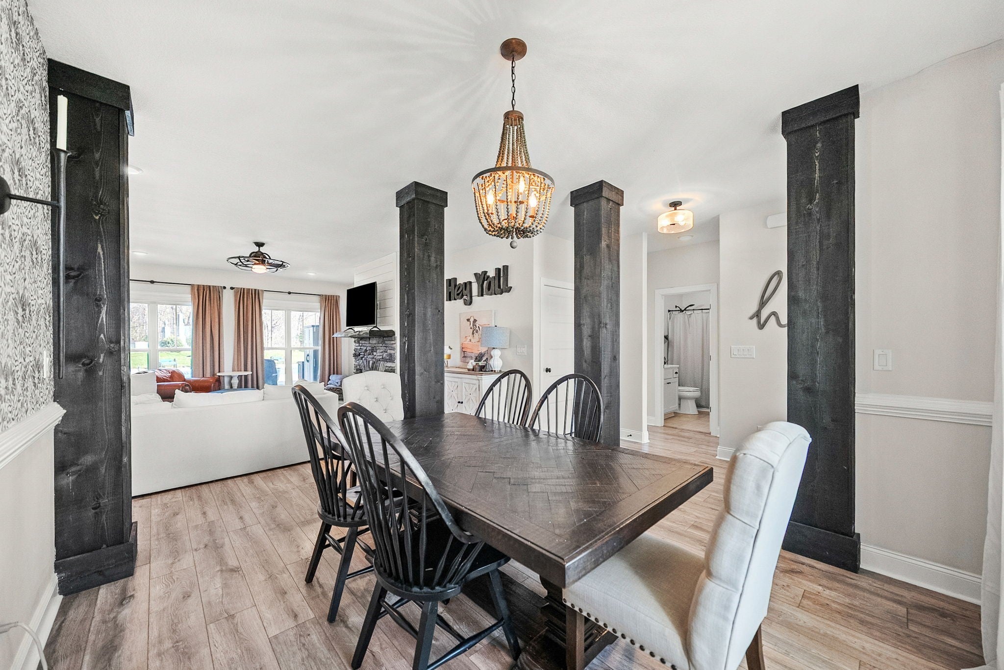 Porch swing, sunsets, pool...a perfect summer! This 6-acre stunner boasts immaculate touches of elegancy in this elevated and elegant farmhouse style home. With 5-bedrooms and 4-full bathrooms, this home is ready for a lively family looking for a little taste of country living close to shops, the interstate, state parks, and restaurants. 6-acres of unrestricted peace is ready also has a large 20' x 40' in-ground pool, including a tanning deck. To add to all the beauty, the home also comes with the quietest tenants one could ever want; the Alexander Johnson Cemetery is a remarkable piece of history and beauty from the Civil War. All the upgrades are all ready for you, too! Tankless water heater, granite counter tops, large mudroom/pantry, LVP downstairs, carpet upstairs, walk-in attic space, extra parking, half basketball court, and a huge concrete pad around the pool for all of your parties - which displays the most perfect sunsets. This home has been filled with so much life and love but is ready for a new chapter. Come take a look at your new home!