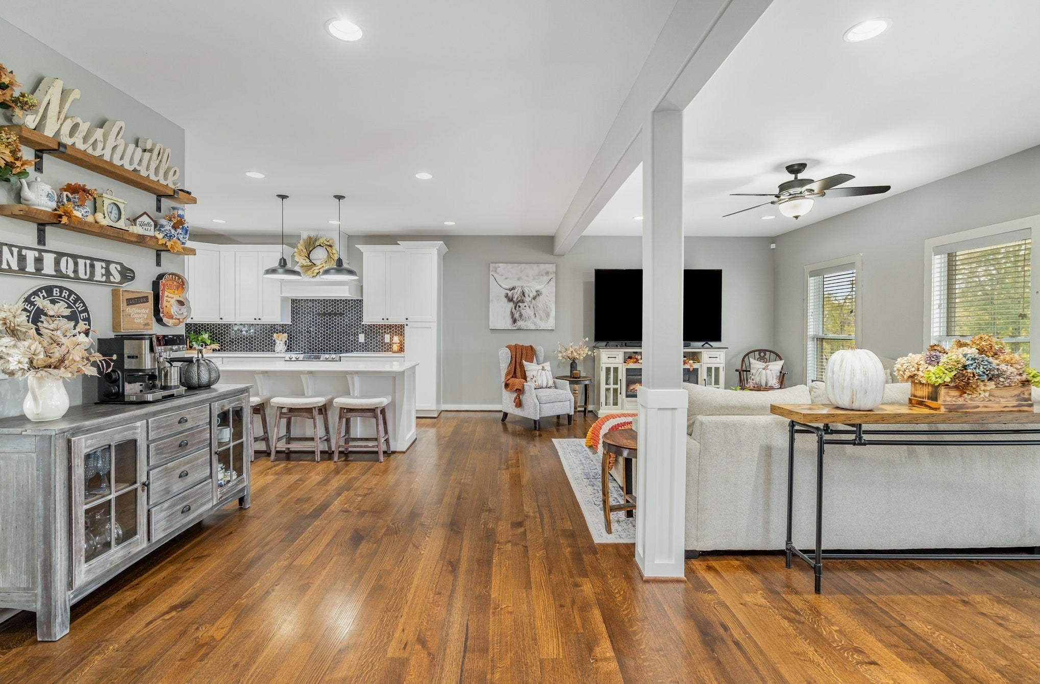 Beautiful 3-bedroom, 3-bath home on over an acre in a prime Gallatin location! Just 10 minutes from Historic Downtown Gallatin and close to plenty of shopping and dining, along with the Gallatin Country Club! Step inside to an open layout with wood floors and recessed lighting throughout. The large living room flows into the kitchen featuring stainless steel appliances, a center island with breakfast bar seating, and a walk-in pantry. The primary suite is on the main level and includes a huge walk-in closet and a beautiful bathroom with double vanities, a soaking tub, and a separate shower. Upstairs, you’ll find two additional bedrooms, a full bath, and a versatile loft space. Enjoy quiet evenings on the covered front porch or entertain on the large covered back deck overlooking the expansive yard, plenty of room to relax or entertain! BONUS: The sale will include a Cub Cadet XT1 (2024) with accessories! Worth $4,500. Making maintaining the yard easy!
