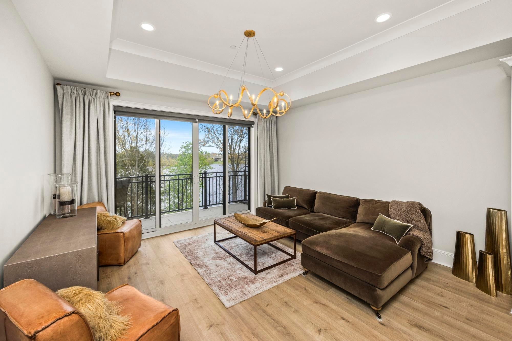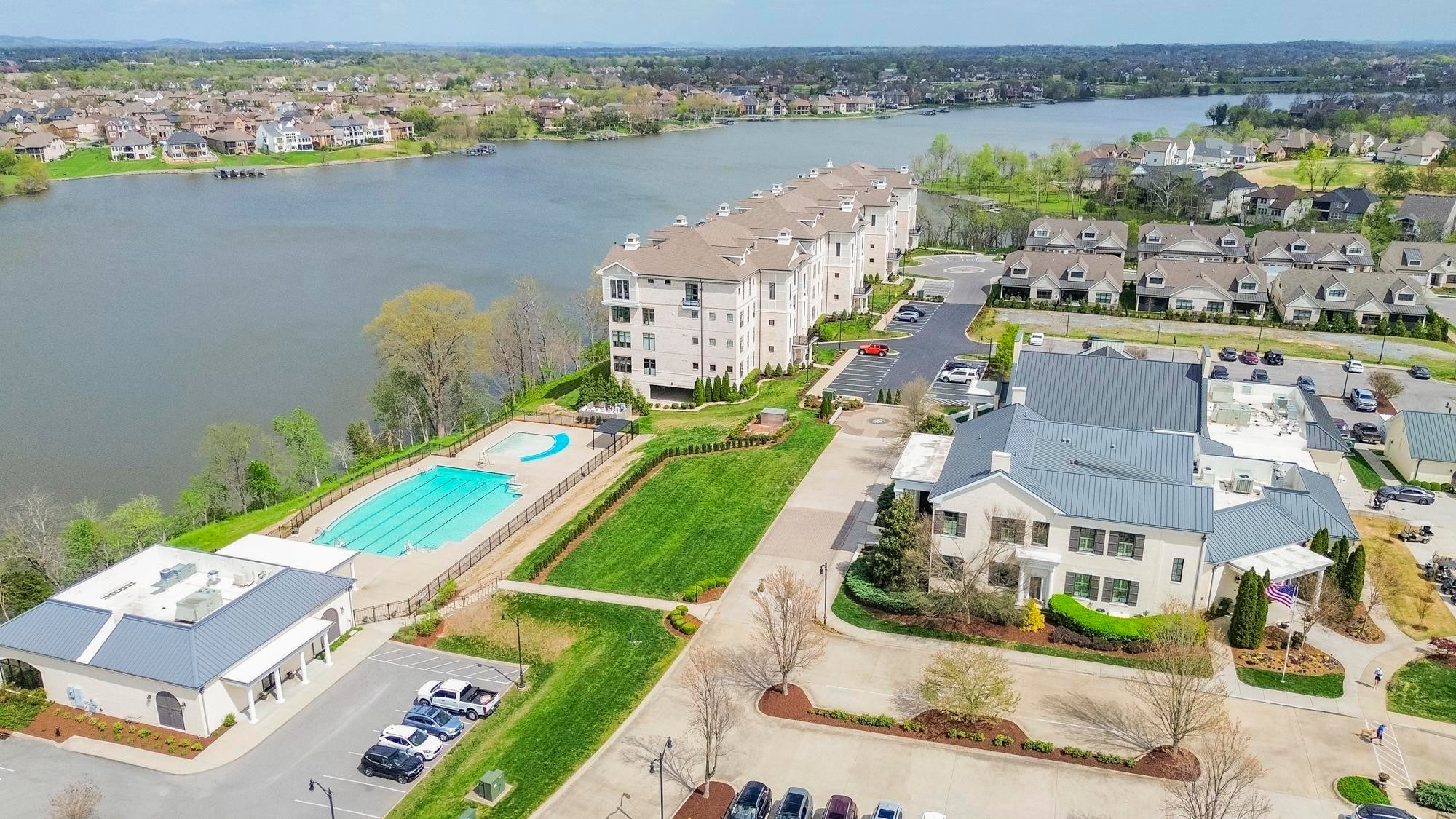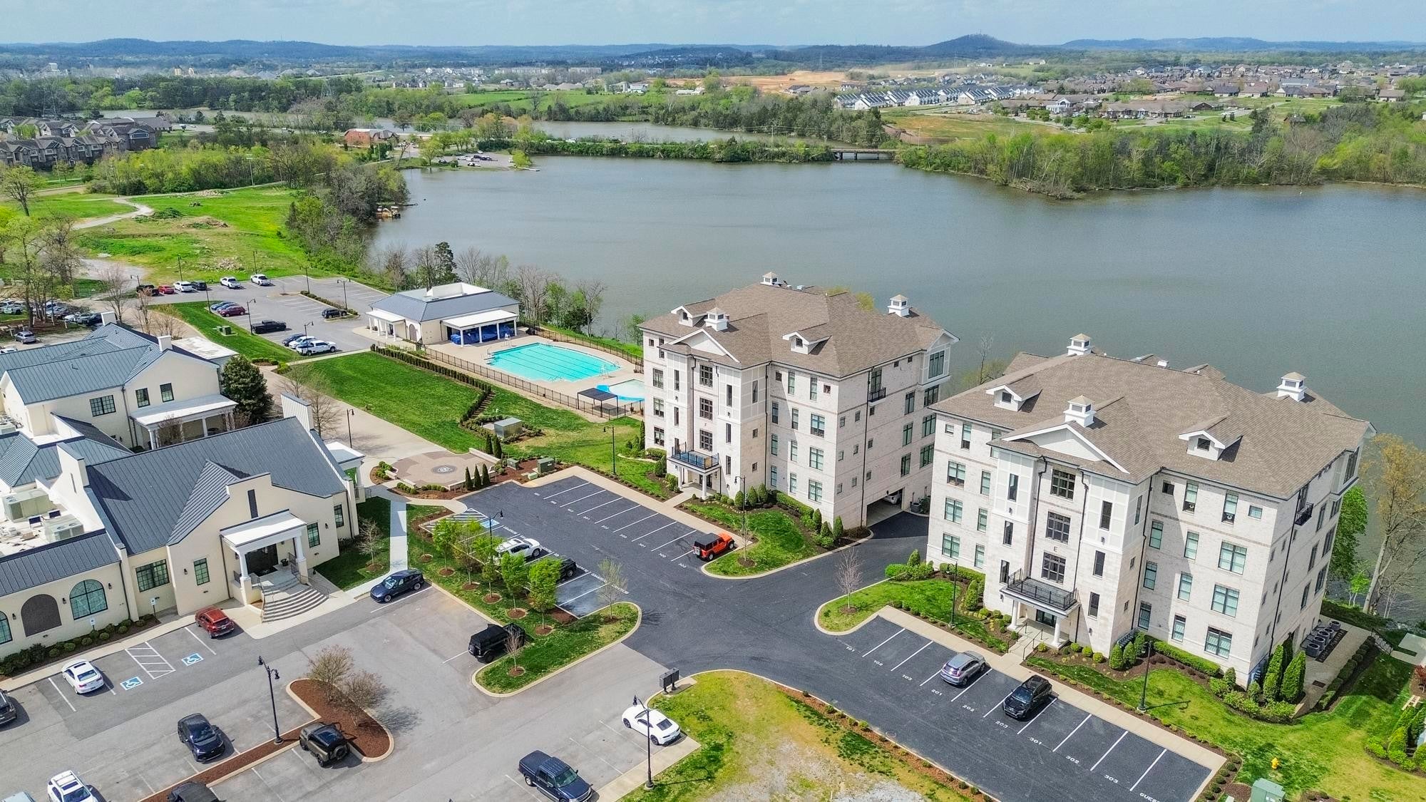 Experience the best of lakefront luxury in this stunning condo located in the highly sought-after Foxland Harbor community. With an optional club membership, enjoy access to two championship golf courses, elegant clubhouses, resort-style swimming pools, dining, and more. Take in breathtaking lake views from your private balcony or from nearly every room inside. Expansive glass sliding doors open from both the living room and the primary suite, seamlessly blending indoor and outdoor living. This beautifully designed home features soaring ceilings, custom lighting, and electronic shades throughout. The chef’s kitchen is a showstopper, complete with premium KitchenAid appliances, a gas range, icemaker, and a spacious walk-in pantry. The bright, open floor plan is filled with high-end finishes, creating an inviting yet sophisticated atmosphere. The clubhouse and pool are just a short stroll away, making it easy to enjoy the community’s top-tier amenities. Conveniently located near local shopping and dining, and just a quick 20-minute drive to downtown Nashville, this property offers the perfect balance of peaceful lakeside living and city accessibility.