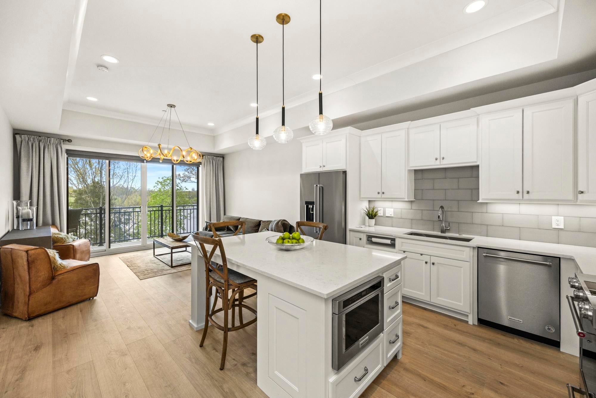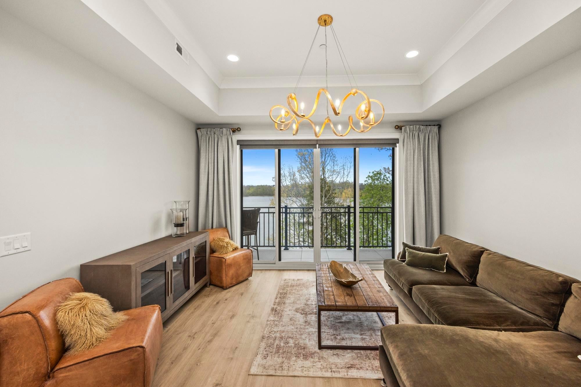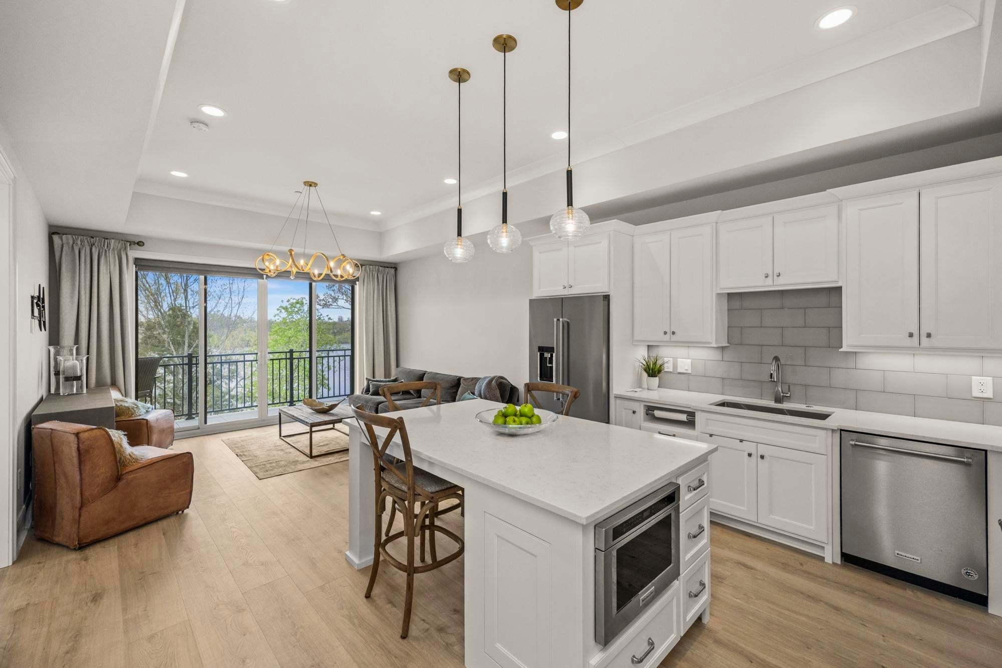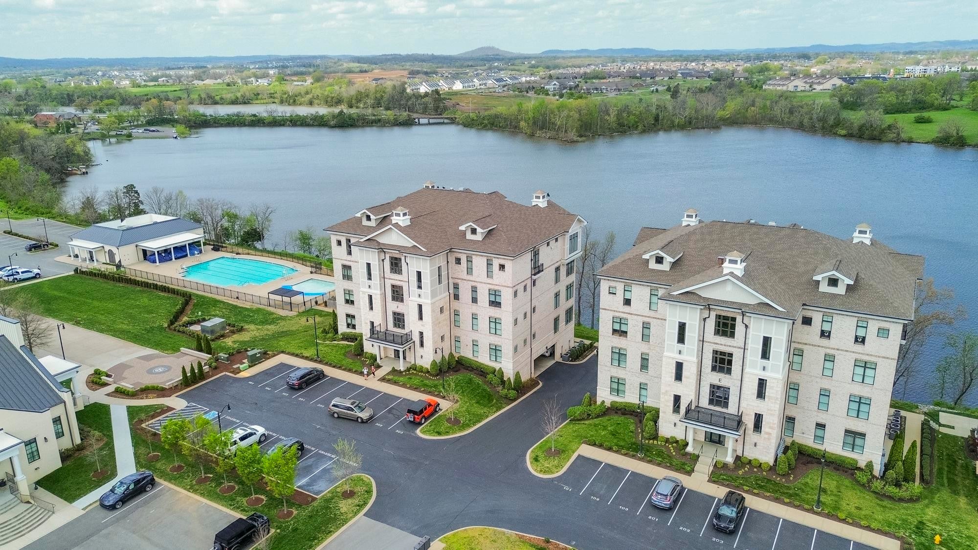 Experience the best of lakefront luxury in this stunning condo located in the highly sought-after Foxland Harbor community. With an optional club membership, enjoy access to two championship golf courses, elegant clubhouses, resort-style swimming pools, dining, and more. Take in breathtaking lake views from your private balcony or from nearly every room inside. Expansive glass sliding doors open from both the living room and the primary suite, seamlessly blending indoor and outdoor living. This beautifully designed home features soaring ceilings, custom lighting, and electronic shades throughout. The chef’s kitchen is a showstopper, complete with premium KitchenAid appliances, a gas range, icemaker, and a spacious walk-in pantry. The bright, open floor plan is filled with high-end finishes, creating an inviting yet sophisticated atmosphere. The clubhouse and pool are just a short stroll away, making it easy to enjoy the community’s top-tier amenities. Conveniently located near local shopping and dining, and just a quick 20-minute drive to downtown Nashville, this property offers the perfect balance of peaceful lakeside living and city accessibility.