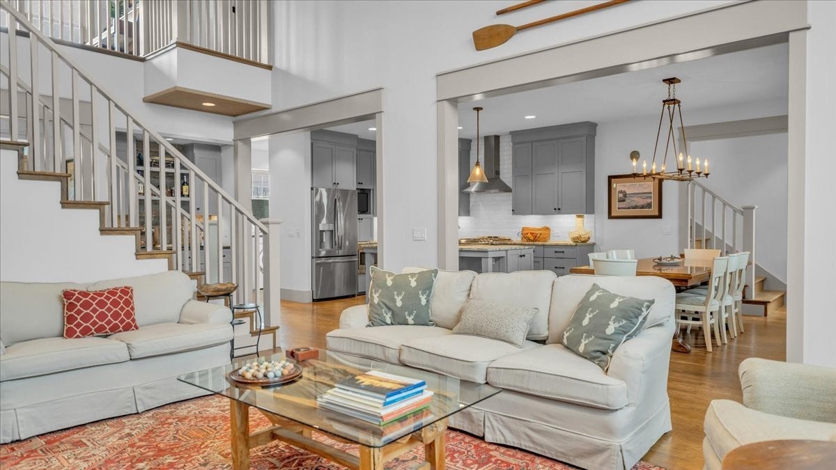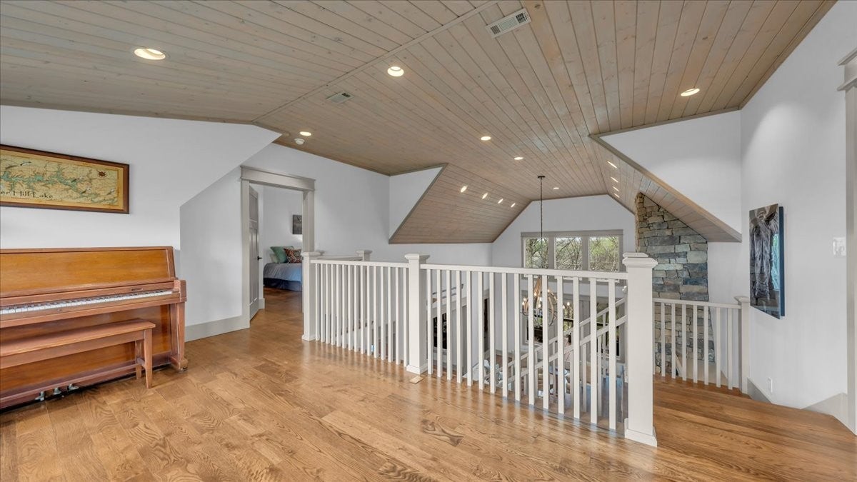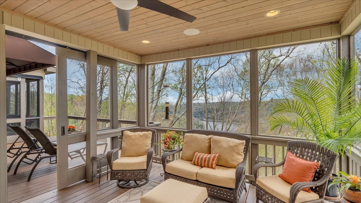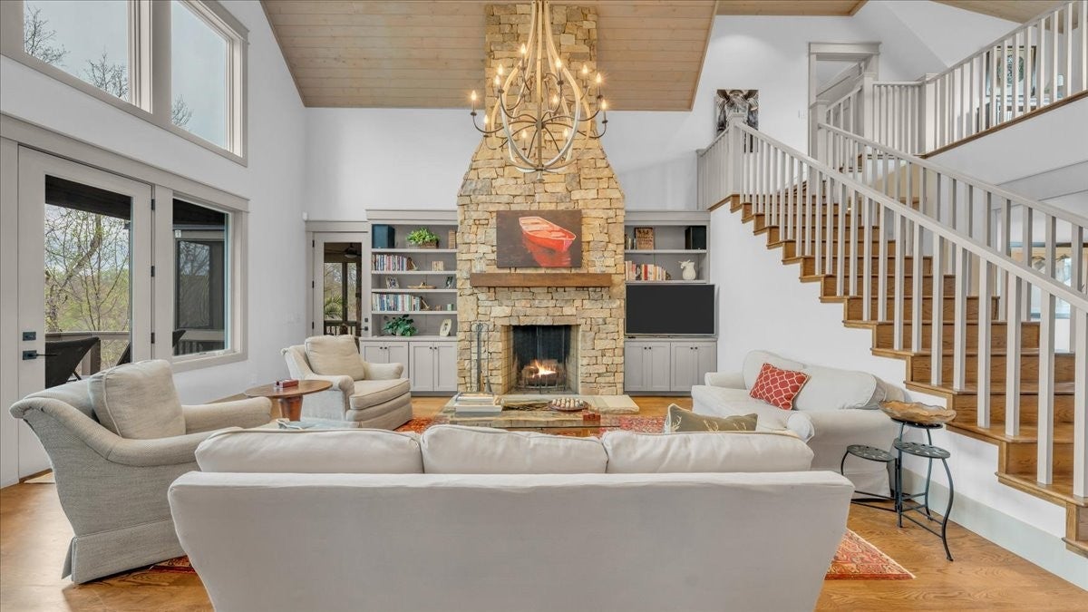 Discover lake living in this exceptional Custom-built lake view residence overlooking the natural beauty of Center Hill Lake, This home offers a rare blend of refined design, modern comfort and breathtaking surroundings. It could be a permanent residence or year-round weekend retreat with spacious outdoor deck, porches overlooking the lake, and both an indoor and outdoor gas-assisted wood-burning fireplace. Stained white oak flooring is used in all rooms except baths, laundry and rec room. The main level offers an open concept plan. The great room has a soaring tongue and groove ceiling, dramatic chandelier, oversized stacked stone fireplace and built-in cabinetry with honed granite top and reclaimed barn wood. The Kitchen features features stainless steel appliances with built in gas range , honed granite, large indoor dining area and is open to the great room. There are two screened porches one for enjoying your meal outdoors and the other porch is for enjoying your coffee in the morning, relaxing after a day on the lake, with its own fireplace a great place to be if there is a chill in the air. The half bath for quests has a pottery sink made by local artist. Also, on the main floor is the primary suite that connects to the outdoor porch with the fireplace. The attached bath has double vanities , large shower and heated tile floors. The second floor has a gallery space overlooking the great room that could be used as a study. Also on the second floor are two bedrooms each with private bath and oversized soaking tub. The rec room has a half bath, a Ping-Pong table and plenty of extra room for games and sleeping. There is approximately 1200 + SF of unfinished basement area thats perfect for storage or could be finished off for additional living space. The home is located 3 miles from I40 East and 7 miles to Hurricane Marina making this home an exceptional location.