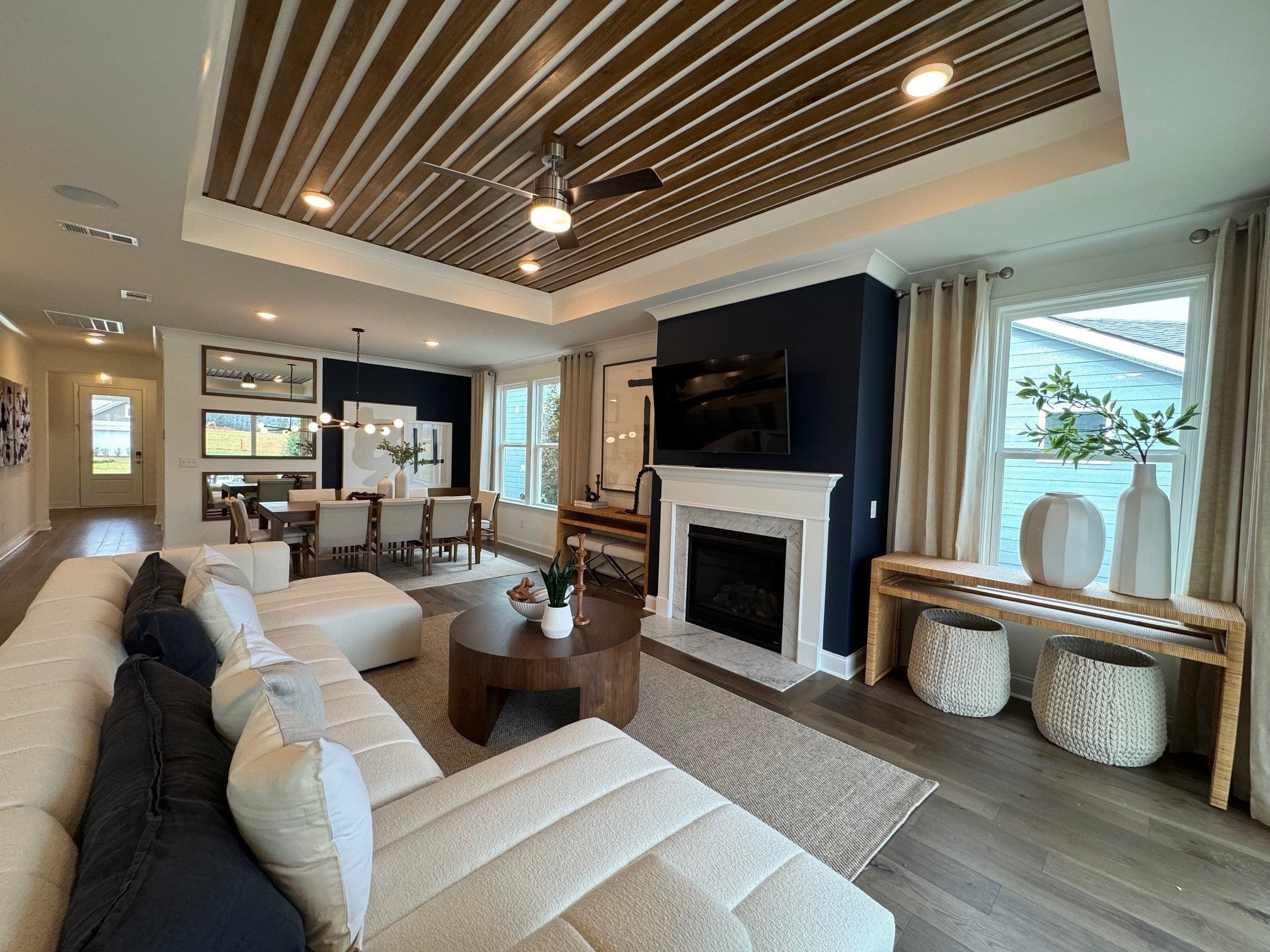 A Home Designed for Growing, Gathering, and Generations to Come. Welcome to the Mystique, a thoughtfully designed ranch home that offers the flexibility today’s home buyers value most. Set on a private, oversized homesite, this layout provides both togetherness and personal space, with 3 bedrooms and 2 baths on the main level and a separate upstairs retreat featuring a private bedroom, full bath, and expansive loft. The open‑concept main living area creates a natural hub for family connection. A beautifully appointed kitchen with quartz countertops, 42" maple-colored cabinets, and matte black hardware opens into the gathering room and café dining area—ideal for shared meals, homework at the table, holidays, and everyday moments that matter most. Large windows bring in abundant natural light, creating a warm, welcoming environment throughout the home. The owner’s suite on the main level offers comfort and convenience, complete with a luxury upgraded walk‑in shower and spacious walk‑in closet. Upstairs, the loft and private suite offer endless possibilities—perfect for extended family, overnight guests, older children, or a quiet space for work or relaxation. With thoughtful designer finishes and energy‑efficient features throughout, this home supports both modern living and long‑term comfort. Located near shopping, dining, and daily conveniences within a welcoming community, this is more than a floor plan—it’s a home built for connection. This home will be ready for a July move-in! Come experience a home and a community where memories are made!