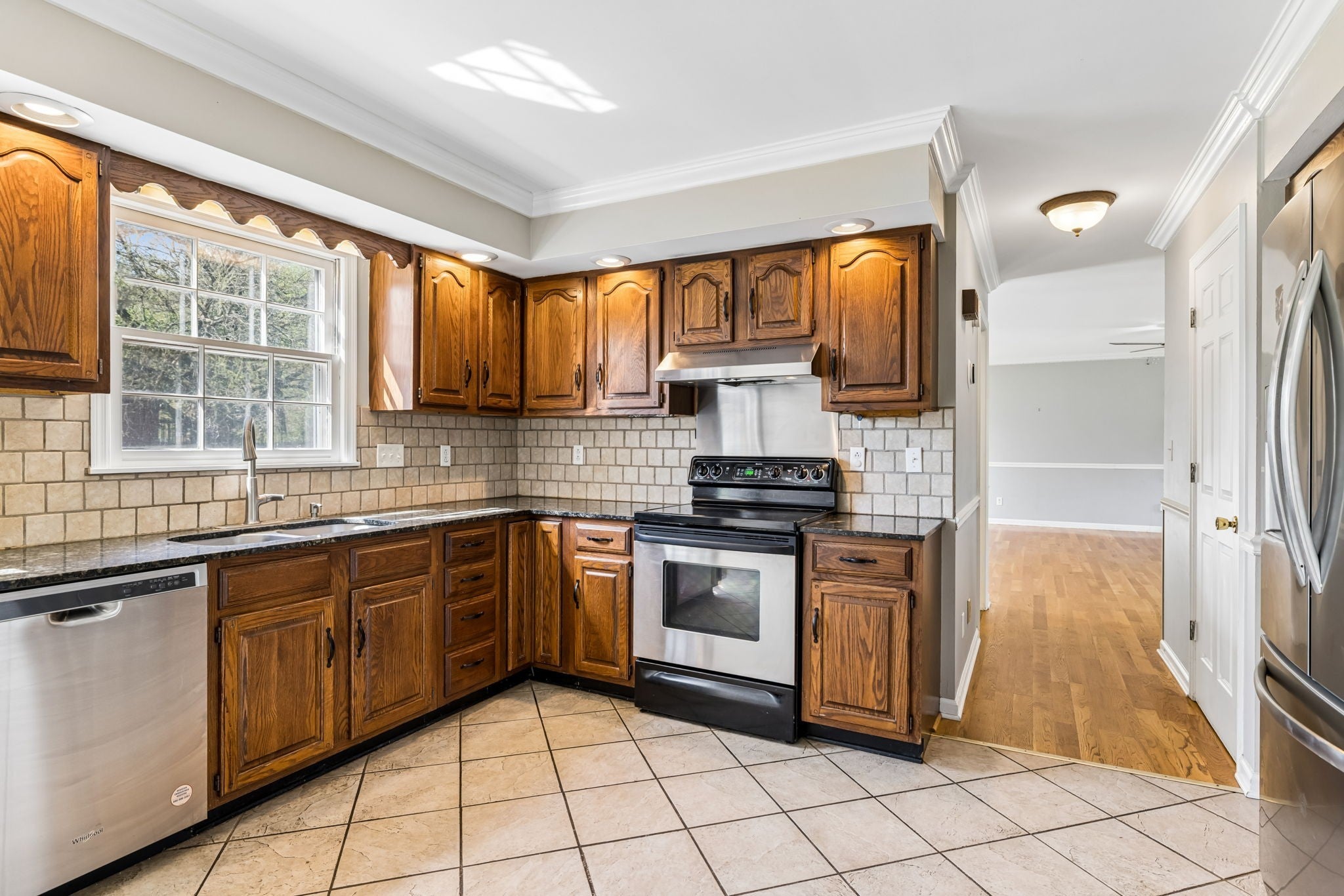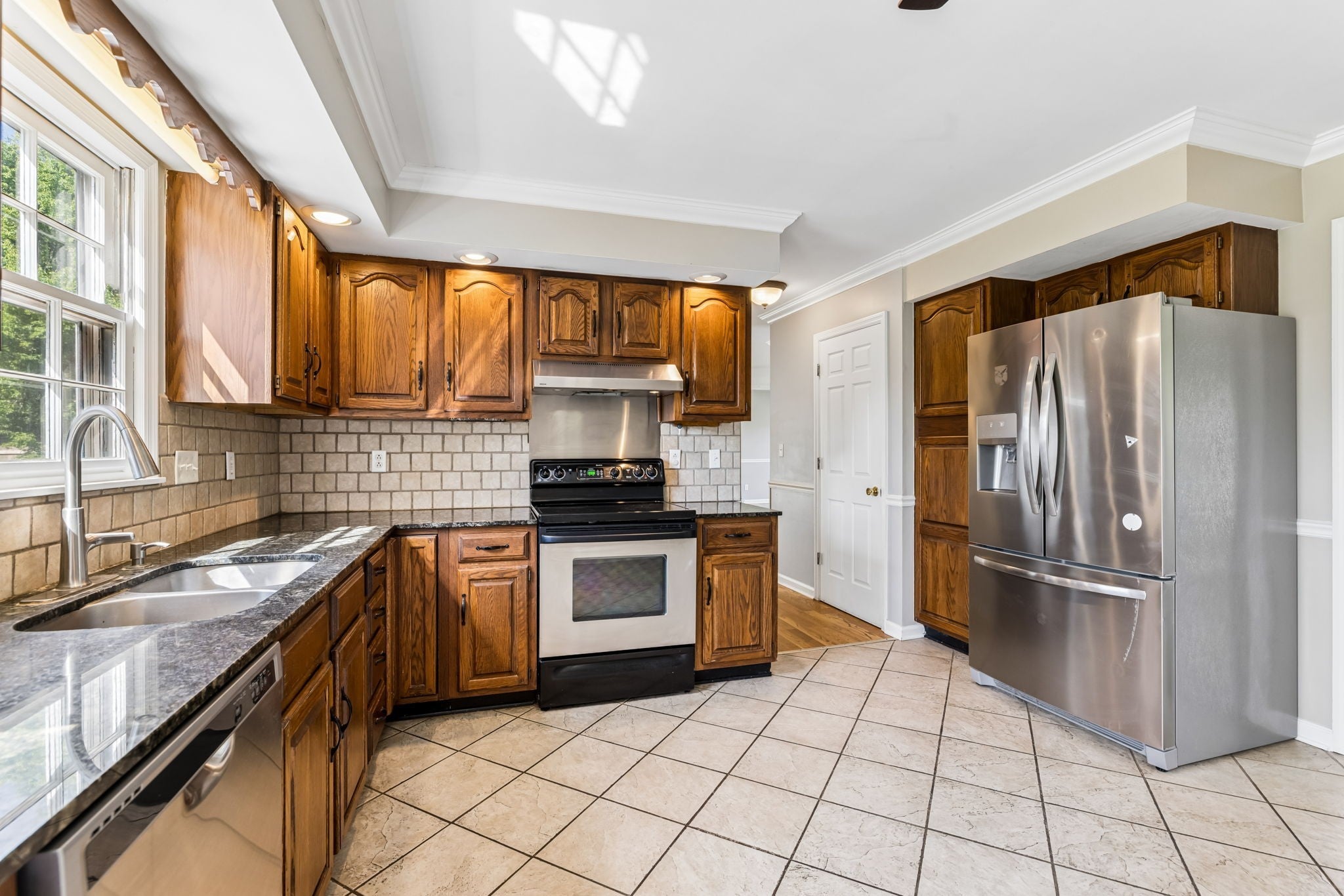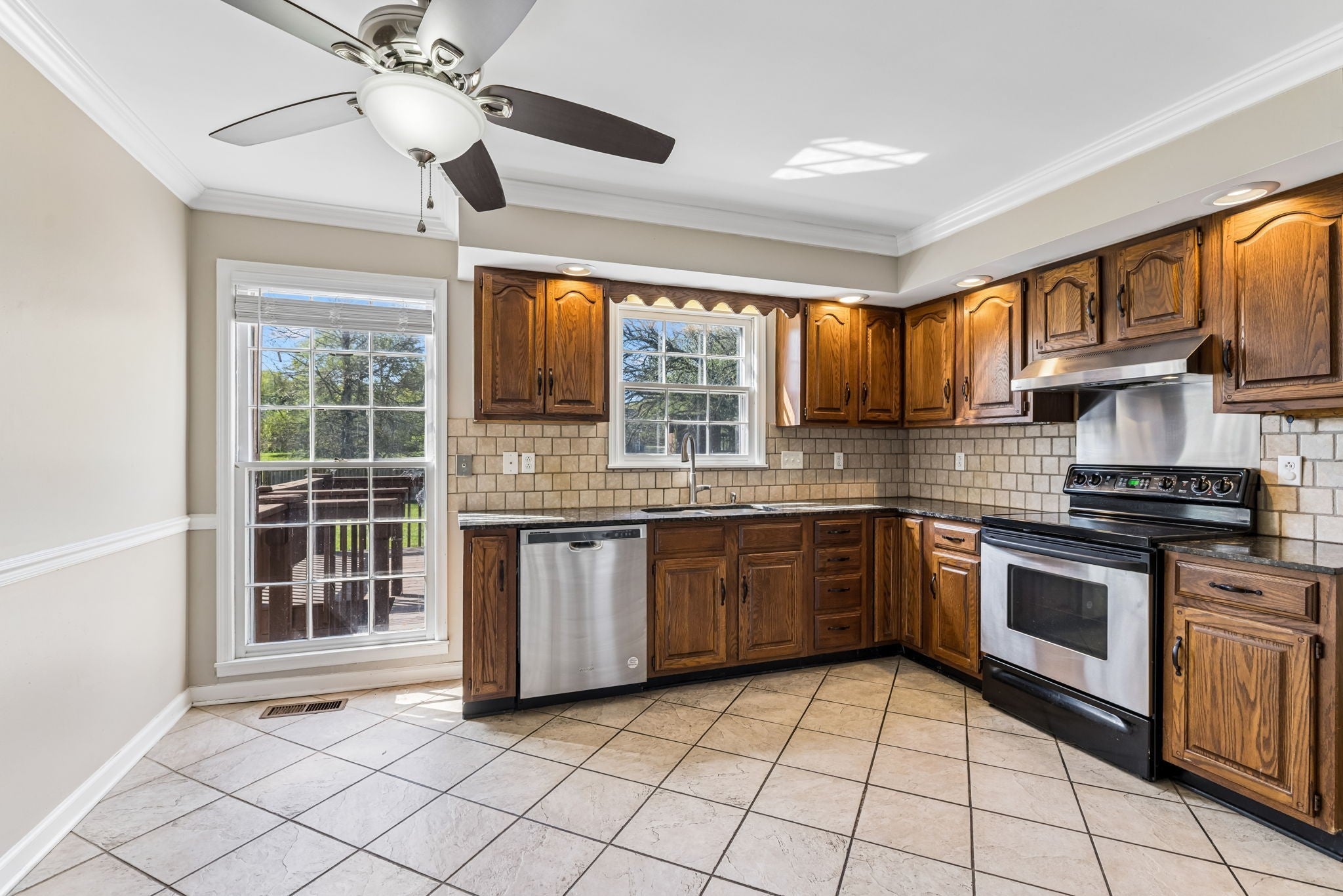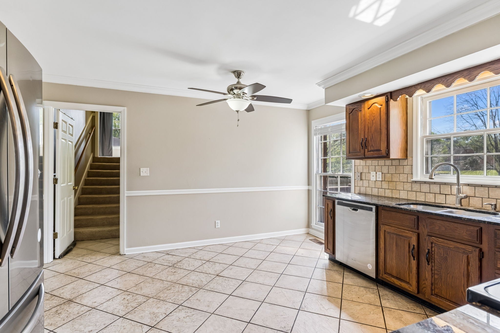 - Electric Oven, Electric Range, Dishwasher, Disposal, Dryer, Microwave, Refrigerator, Stainless Steel Appliance(s), Washer