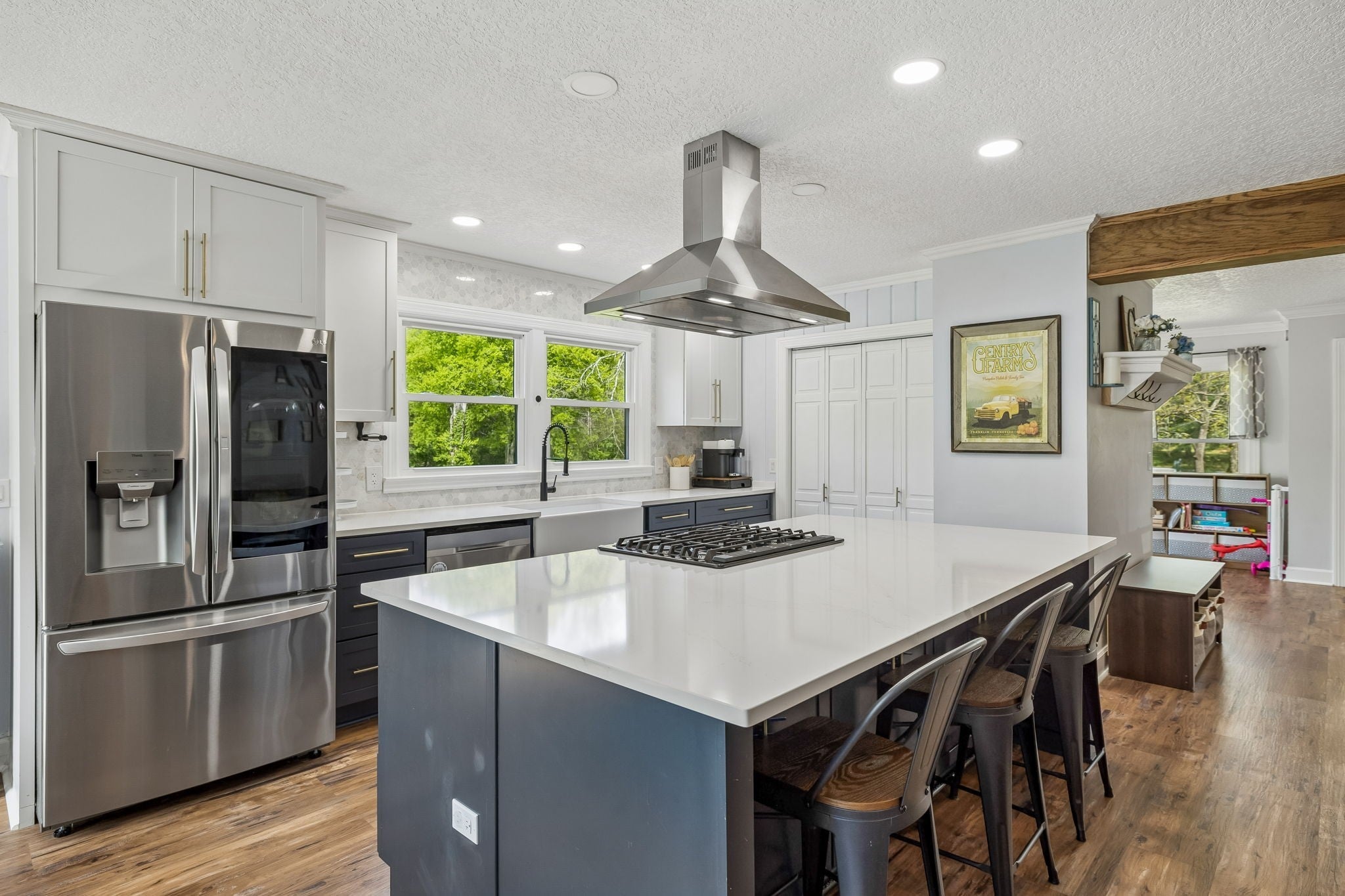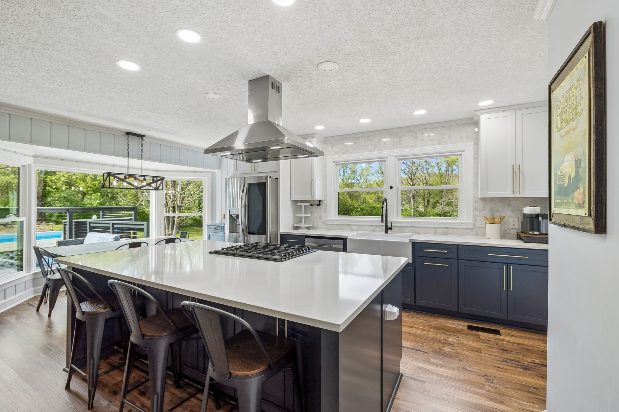 Completely renovated two-story modern farmhouse in the heart of Franklin, set on 2 pristine acres. The open-concept layout showcases a stunning kitchen with an oversized island that flows seamlessly into the family room and dedicated dining area—ideal for both everyday living and entertaining. A versatile flex space provides the perfect setting for a home office, playroom, or additional living area. The main level features a spacious primary suite with a spa-like bath, including a wet room with a soaking tub, along with a secondary bedroom and full bath for added convenience. Step outside to the screened porch overlooking your private retreat, complete with a pool and expansive Trex deck—perfect for relaxing or hosting guests. The finished walk-out basement offers exceptional additional living space with a bonus room, bedroom, and full bath, plus a separate driveway entrance—ideal for an in-law suite or guest quarters. The property also includes a 1.5-car garage and a separate workshop with electricity. A rare opportunity in a prime Franklin location—this one is not to be missed. HVAC 2025. Water Heater 2026. Septic tank pumped 2021. Most windows were replaced in 2023. NO HOA. **Professional photos will be completed by Wednesday, and showings will start Thursday, April 9.