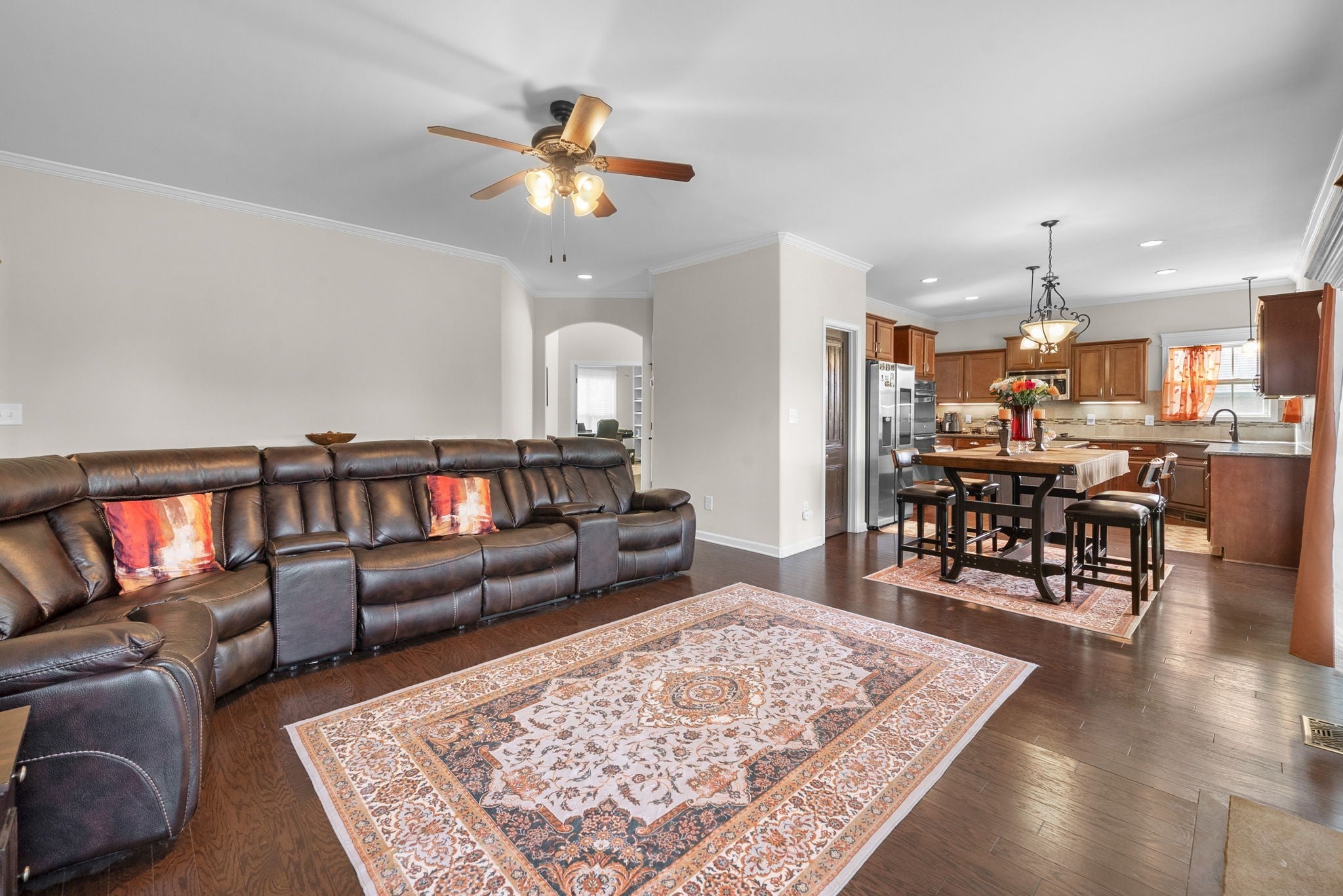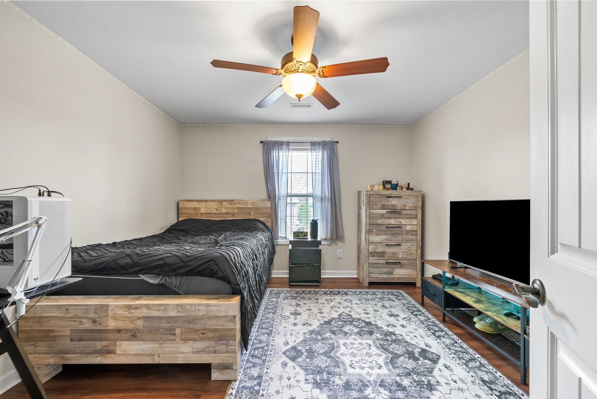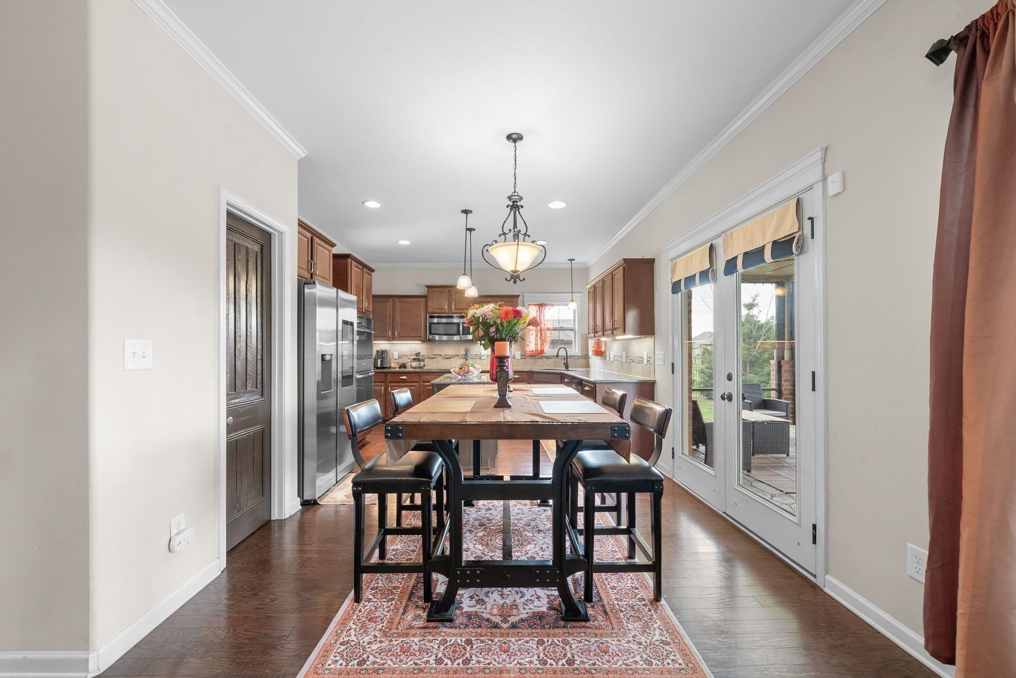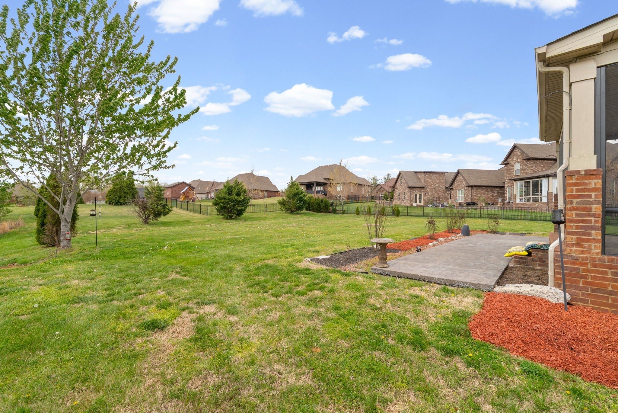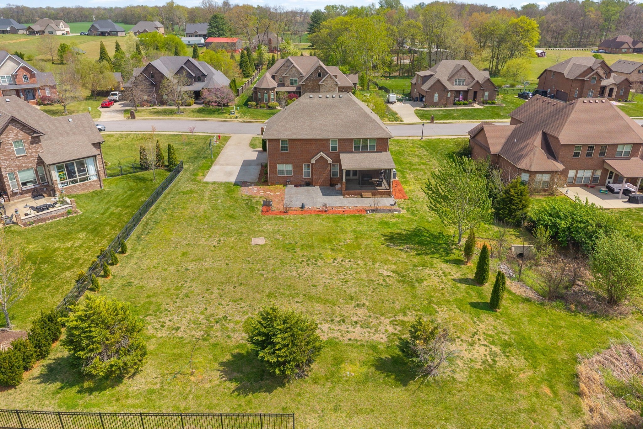 This stunning five-bedroom, three-bathroom home seamlessly blends comfort and style, offering a thoughtfully designed open-concept kitchen with a Samsung Smart Refrigerator and living area centered around a warm, inviting fireplace. The spacious primary suite, located on the second floor, features dual vanities and provides a private retreat for relaxation. On the main level, a well-appointed bedroom with an adjacent full bath offers the perfect accommodation for guests or extended family. In 2021, all carpeting was removed and replaced with beautiful LVP flooring, enhancing both the home’s elegance and durability. Step outside to unwind in the screened-in patio, complete with stamped concrete—an ideal setting for both quiet mornings and evening gatherings. Impeccably flooring. Enjoy relaxing outdoors in your screened in patio with stamped concrete. Vivint home security system valued at $4000 to convey. Smart system to include 2 thermostats, all windows in main floor have sensors, 2 cameras and a control panel. All of the smoke/carbon dioxide detectors through home are all connected to each other and the Vivint system.