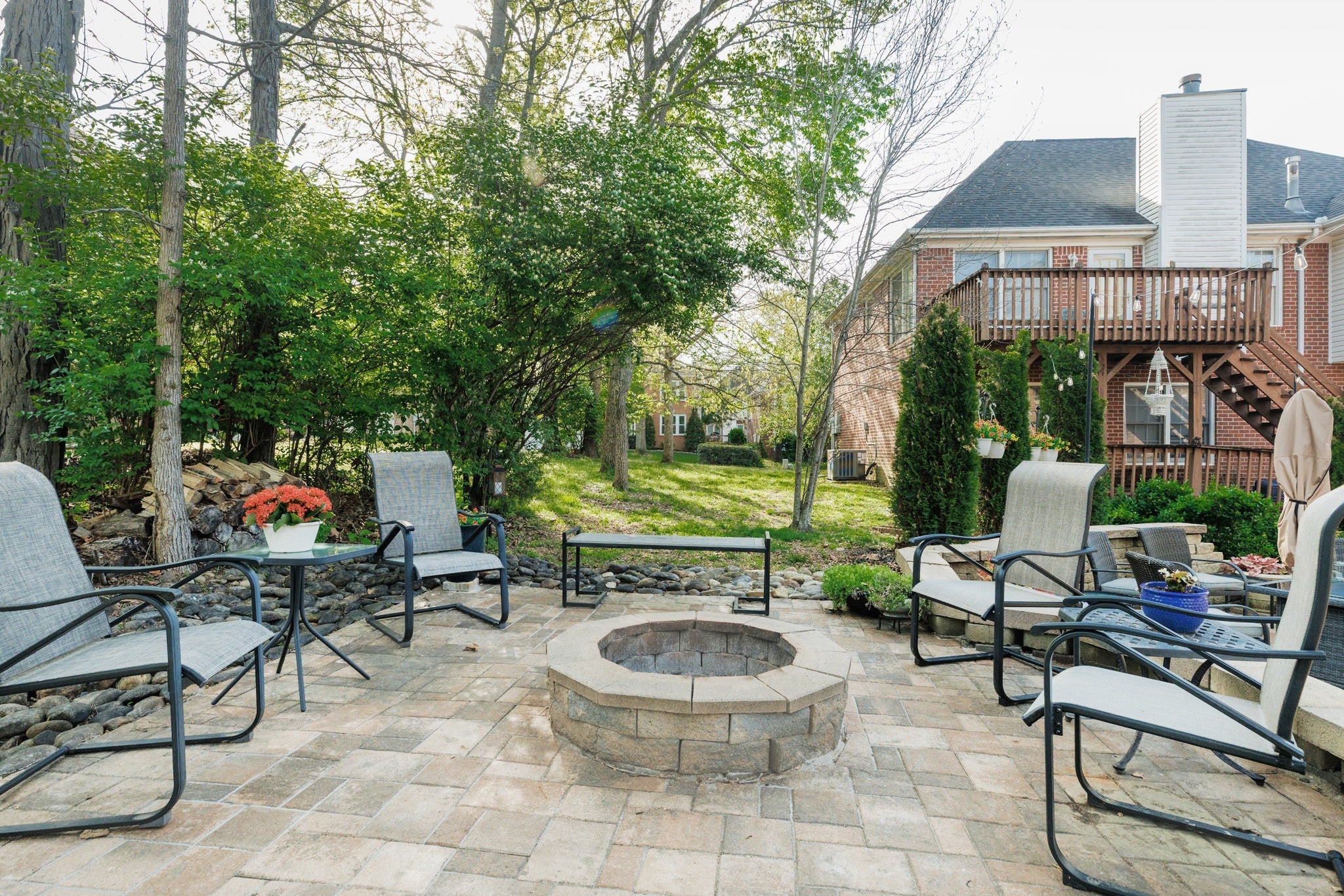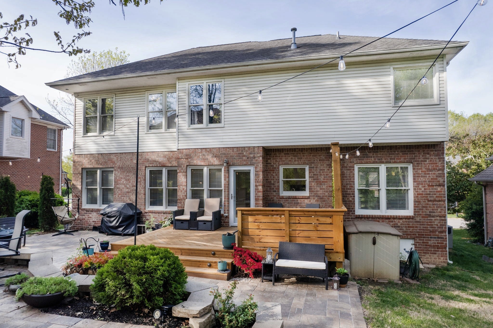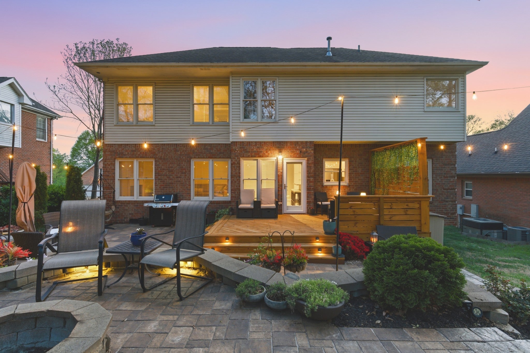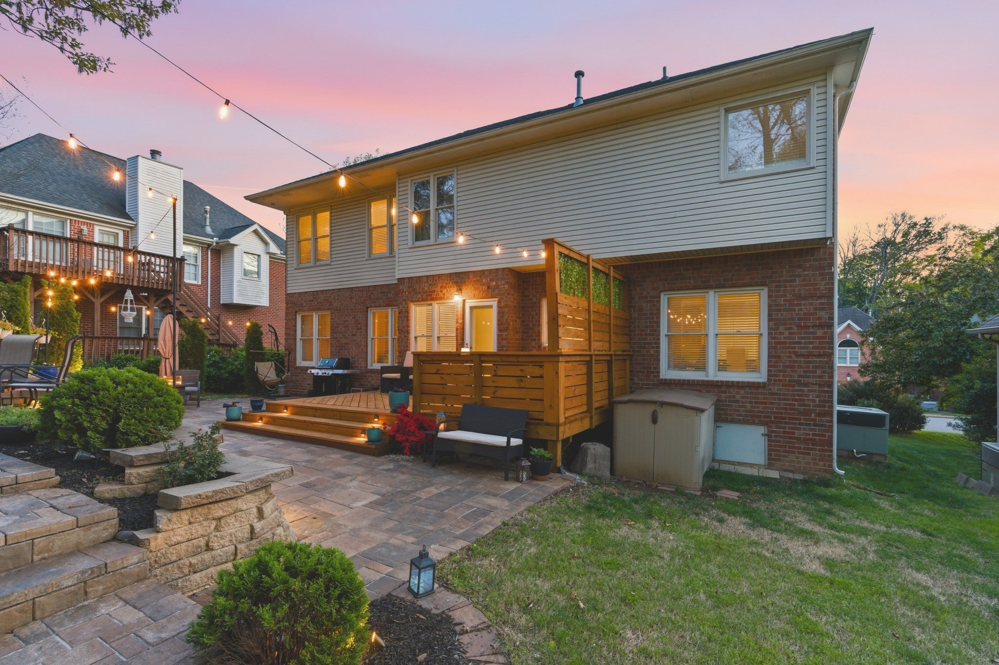 Near Percy Priest Lake! Brick home, ideally situated on a cul-de-sac street. Backyard is a private getaway designed for relaxing and entertaining, which includes a firepit, custom lighting, a new deck, an impressive two-tiered paver patio, and a privacy wall. NEW HVAC. 4 bedrooms plus a bonus room and dedicated office space. Oversized dining room comfortably fits a table for 8-10. Architectural details such as arched openings in the dining room, office, and kitchen add character. Granite countertops and stainless steel appliances in the kitchen. Kitchen is open to the eat-in areas and living room, making entertaining easy! Living room has a natural gas fireplace. Spacious primary suite includes a vaulted ceiling, double vanities, a tiled shower, and a soaking tub. Shed remains. A rare combination of location, layout, and outdoor upgrades.