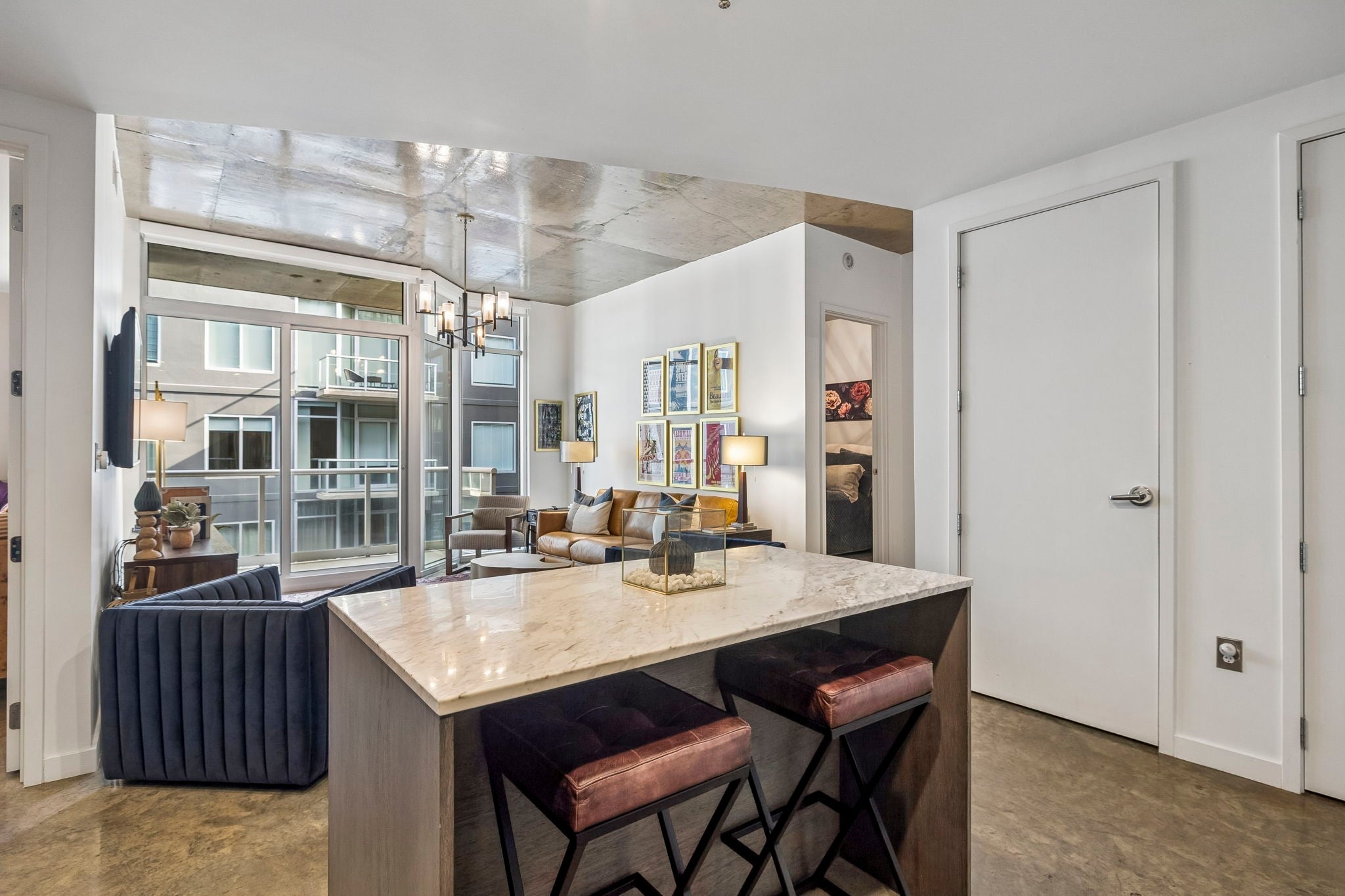 Welcome to The ICON in The Gulch, one of Nashville’s premier luxury communities, offering a highly walkable lifestyle in the center of it all. This 2-bedroom, 2-bathroom residence offers 1,143 square feet of well-designed living space on the 7th floor, overlooking the interior courtyard. Enjoy a quieter, more private setting while still being steps away from the energy of The Gulch. Inside, the unit is filled with natural light through floor-to-ceiling windows and features a clean, functional layout. A private balcony overlooks the courtyard, providing a comfortable outdoor space to relax. The condo is available furnished at $3,850/month, showcasing professionally designed interiors for a polished, move-in-ready experience, or unfurnished at $3,600/month for those bringing their own style. Additional features include a full-size, side-by-side washer and dryer, television, and two assigned, side-by-side parking spaces on the same level, located just steps from the unit entrance. Residents enjoy access to ICON’s amenities, including two pools, two fitness centers, a yoga studio, indoor and outdoor lounge spaces, grilling stations, and well-appointed common areas throughout the courtyard and skydeck. The building also offers high-speed elevators, controlled access, and free WiFi in common areas. A 24-hour concierge and security presence assists with guests, packages, and deliveries. Complimentary guest parking is available for showings. Water, trash, and recycling are included. Tenant is responsible for electric. Minimum 12-month lease required. Pets considered on a case-by-case basis with approval. Application Details: $60 per adult. All occupants 18+ must apply separately. Proof of income and photo ID required. Move-In Requirements: $750 nonrefundable move-in/move-out fee payable to ICON Master Association, $500 refundable elevator deposit, and $500 pet fee if applicable. This property is offered exclusively by Music City Realty – Your Track to Freedom.