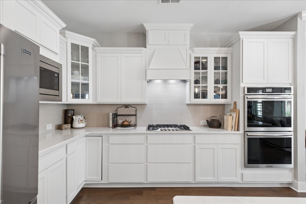 - Double Oven, Electric Oven, Built-In Gas Range, Dishwasher, Disposal, Microwave, Stainless Steel Appliance(s)