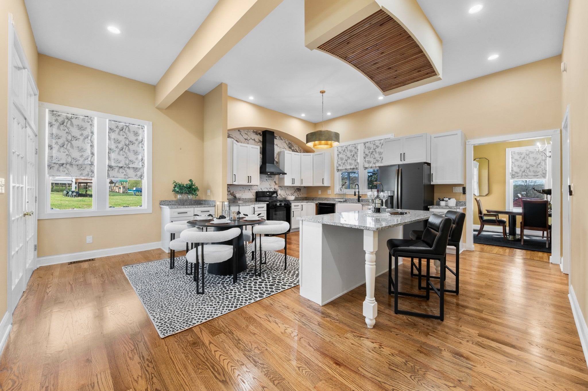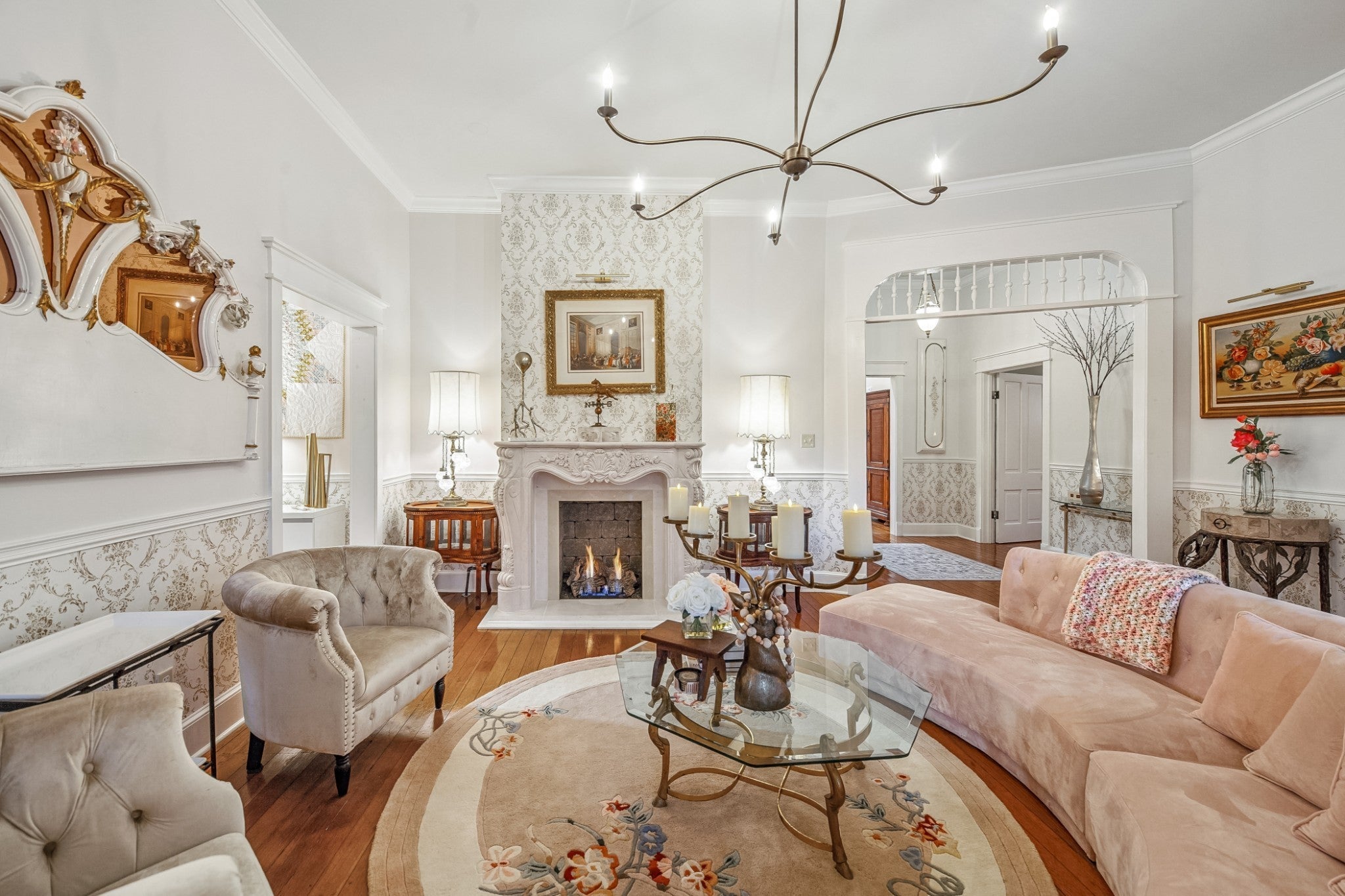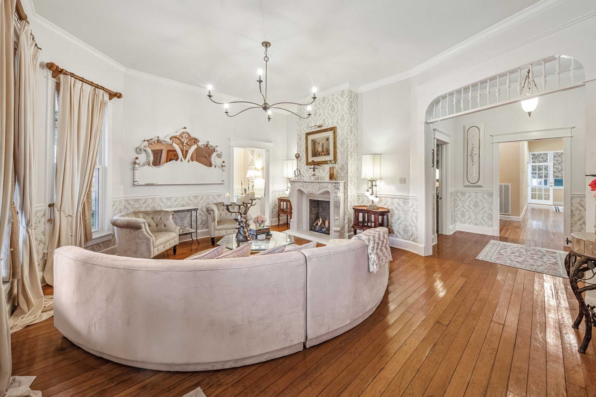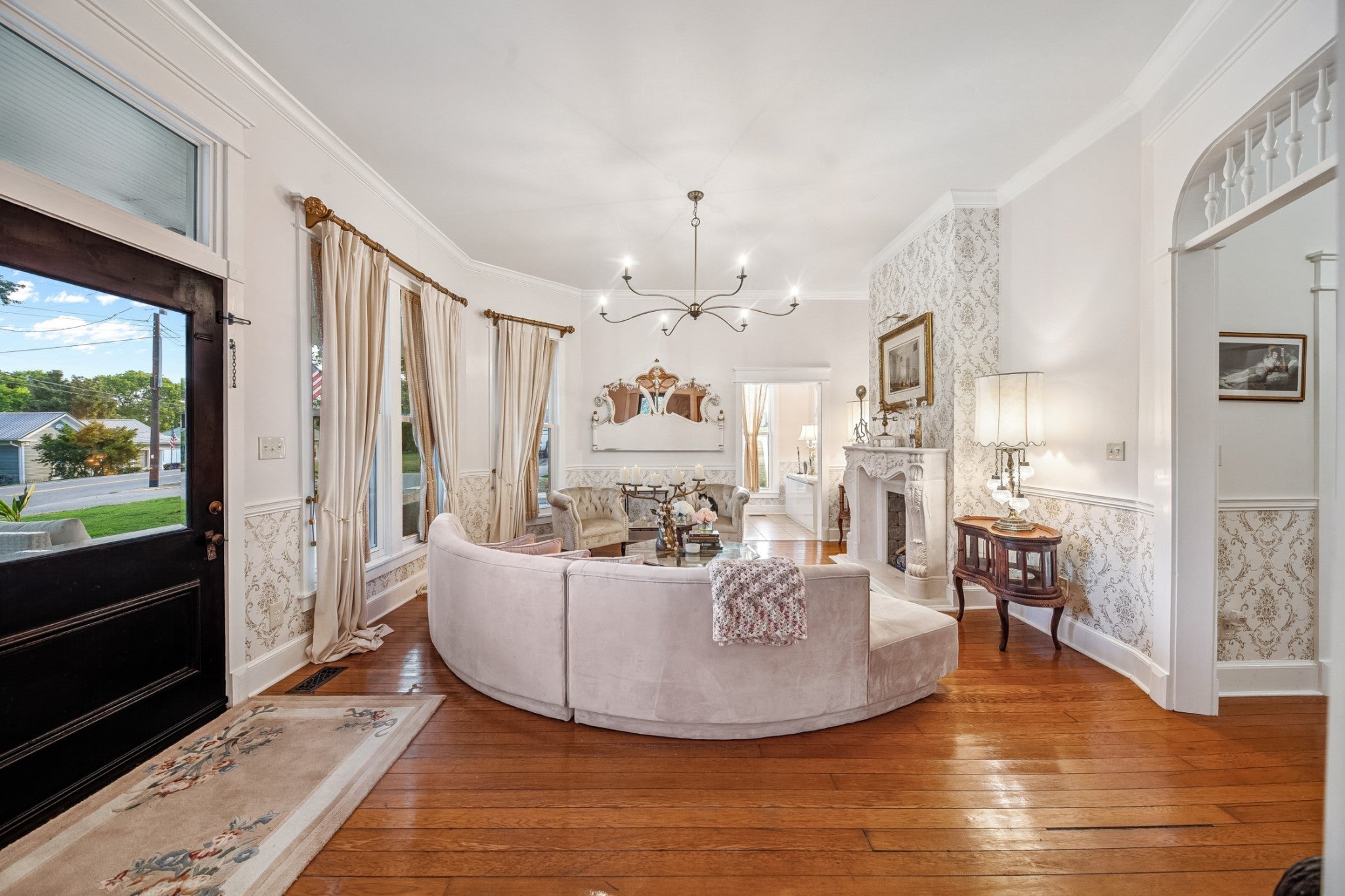 Folk Victorian home built in 1900 and luxuriously updated in the heart of Lynnville on 0.5 acre lot. You have to see this home to take in all its beauty, with too many upgrade features to list them all. Main level boasts 2 bedrooms, 2 full baths, large kitchen, dining room, office and 2 living rooms with fireplace in each.Primary bedroom offers an electric fireplace as well as en-suite bath with soaking tub, marble floors and shower, and walk in closet space. Butlers pantry with laundry just off the large open kitchen, which has been updated and furnished with new appliances. Bathrooms downstairs have been updated with gold accents and backlit mirrors. Spacious front porch, as well as two sitting porches on the side of the home, and a sitting porch on the back. Upstairs offers 2 bedrooms, full bath, kitchenette and living area. New carpet upstairs as well. This could be used as an apartment or short term rental as well. Exquisite home in charming downtown Lynnville that you have to see for yourself!