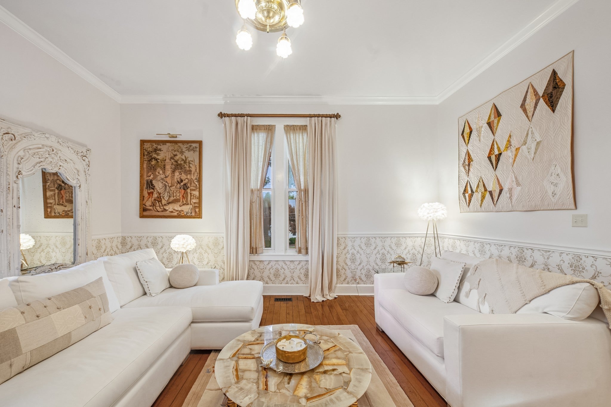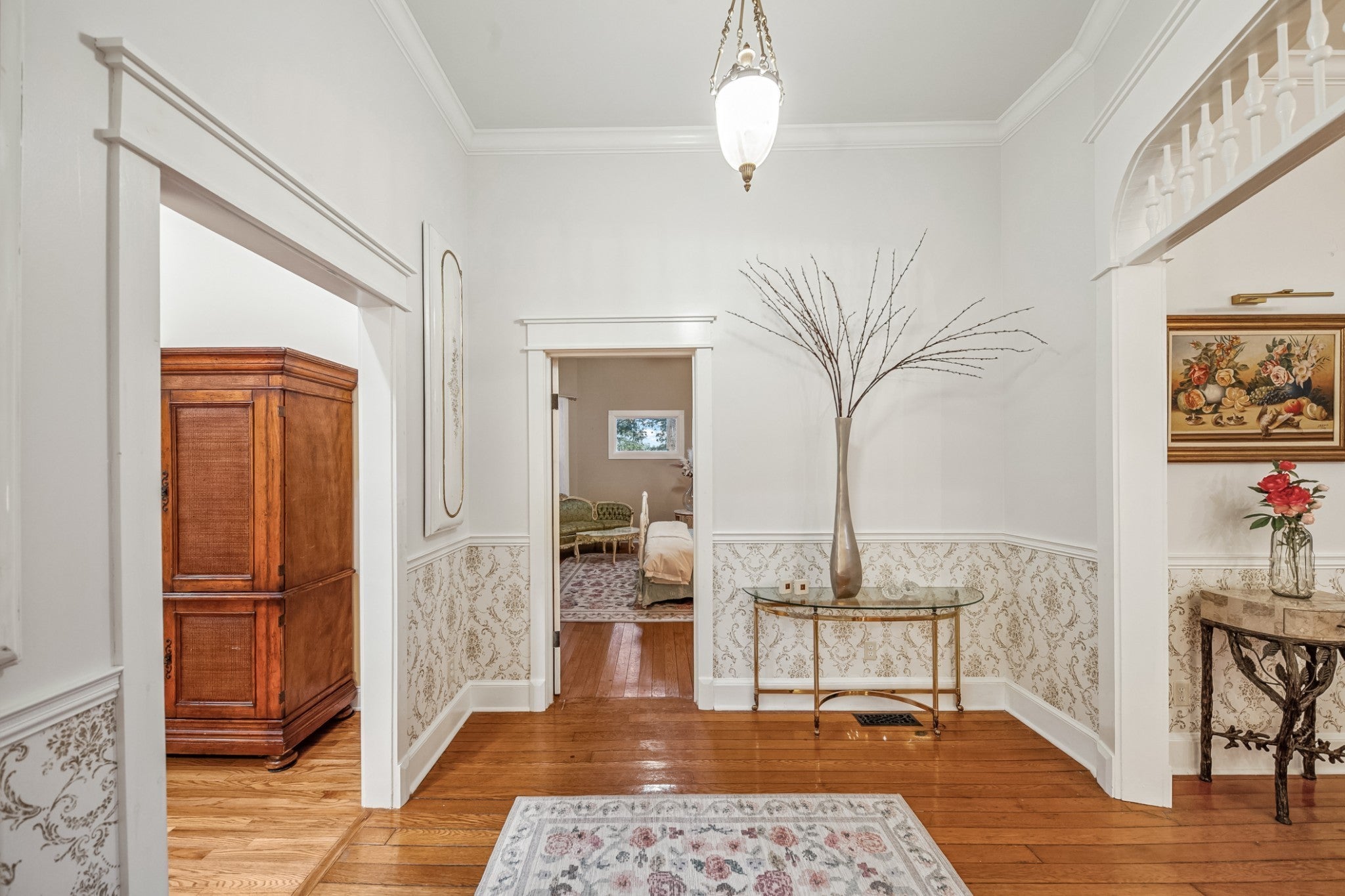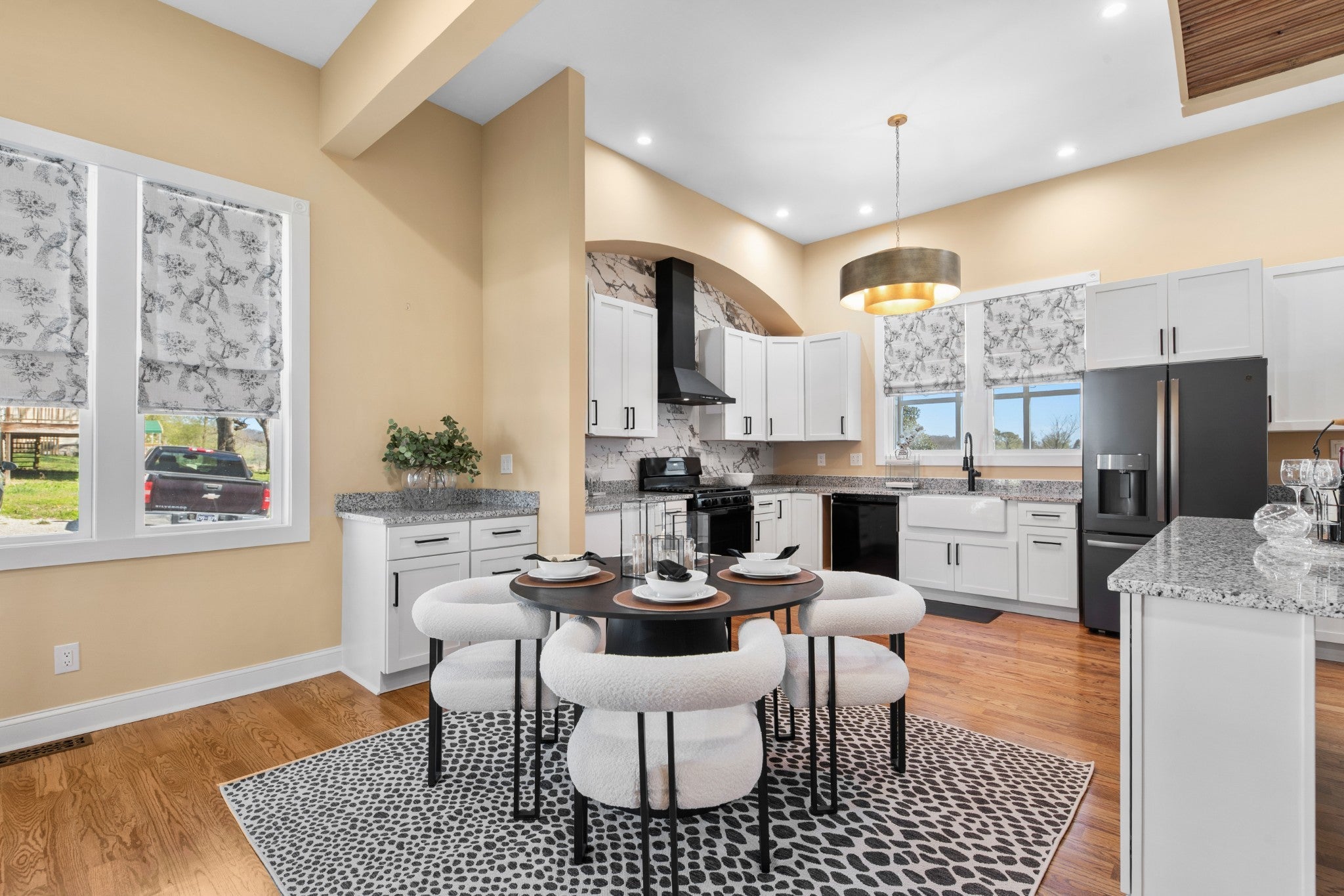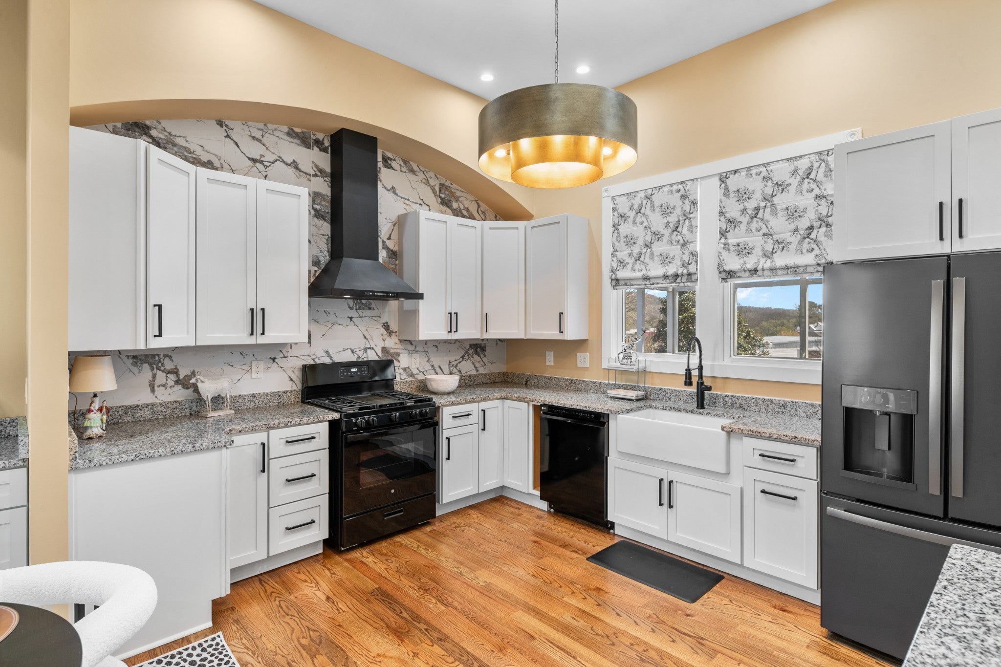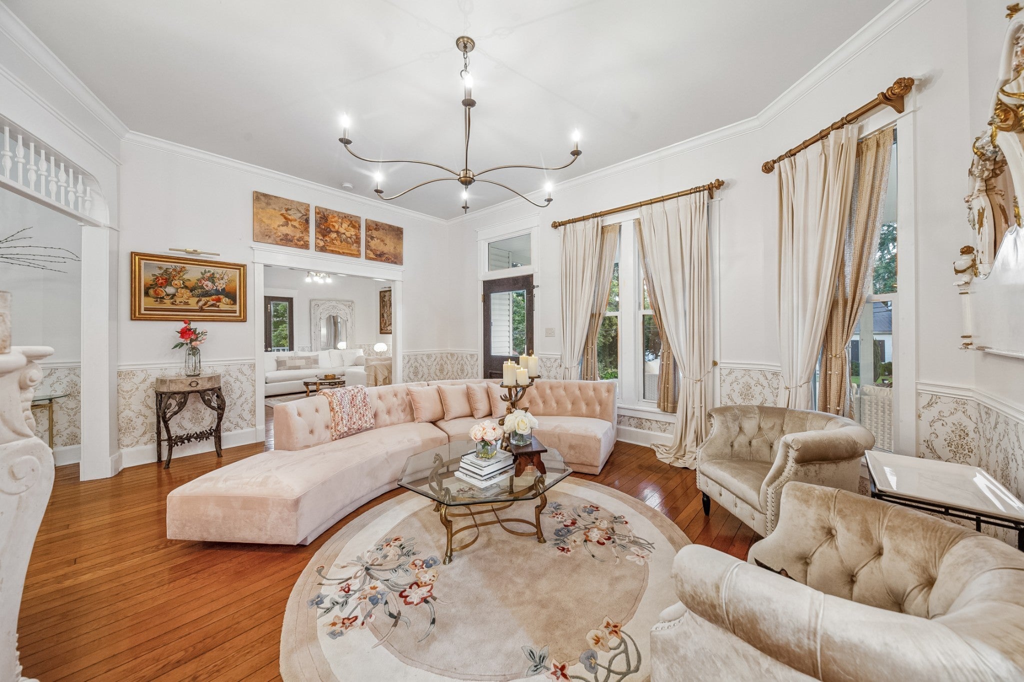 Folk Victorian home built in 1900 and luxuriously updated in the heart of Lynnville on 0.5 acre lot. You have to see this home to take in all its beauty, with too many upgrade features to list them all. Main level boasts 2 bedrooms, 2 full baths, large kitchen, dining room, office and 2 living rooms with fireplace in each.Primary bedroom offers an electric fireplace as well as en-suite bath with soaking tub, marble floors and shower, and walk in closet space. Butlers pantry with laundry just off the large open kitchen, which has been updated and furnished with new appliances. Bathrooms downstairs have been updated with gold accents and backlit mirrors. Spacious front porch, as well as two sitting porches on the side of the home, and a sitting porch on the back. Upstairs offers 2 bedrooms, full bath, kitchenette and living area. New carpet upstairs as well. This could be used as an apartment or short term rental as well. Exquisite home in charming downtown Lynnville that you have to see for yourself!