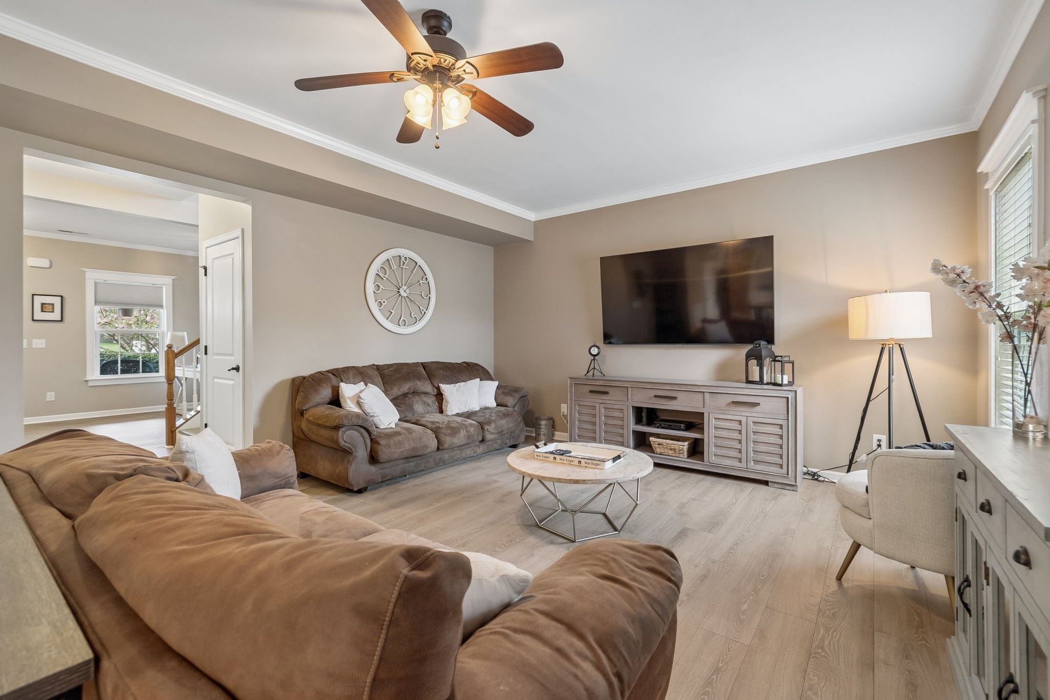 Tucked into one of Mt. Juliet’s most desired communities, Cobblestone Landing, 603 Stonebridge Lane offers the perfect blend of space, style & scenery. This well-maintained 4-bedroom, 2.5-bath home sits on a premium lot w/ serene tree-lined views & the bonus of being adjacent to the neighborhood walking trail, your own extended backyard without the upkeep. The main level welcomes you w/ an open-concept design, ideal for entertaining or everyday living, highlighted by upgraded wood laminate flooring, detailed window trim, and crown molding. Step outside to the large screened-in porch & take in the peaceful surroundings, perfect for relaxing or hosting. Upstairs, you’ll find all 4 bedrooms, including a generously sized primary suite designed for comfort. The oversized walk-in closet, with its own window, brings in beautiful natural light while offering exceptional storage. Speaking of storage, there are a ton of closets thoughtfully placed throughout the home, you’ll never run out of space. Life in Cobblestone Landing means evening strolls on the sidewalks, easy access to scenic walking trails & summers spent by the community pool. It’s not just a home, it’s the kind of lifestyle that makes you look forward to coming home every day.