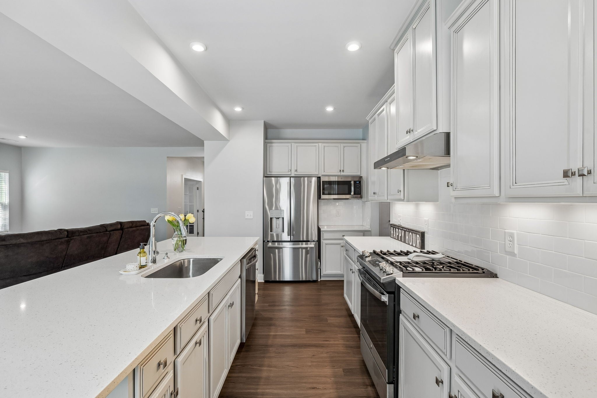 - Gas Oven, Gas Range, Dishwasher, Disposal, Microwave, Refrigerator, Stainless Steel Appliance(s)