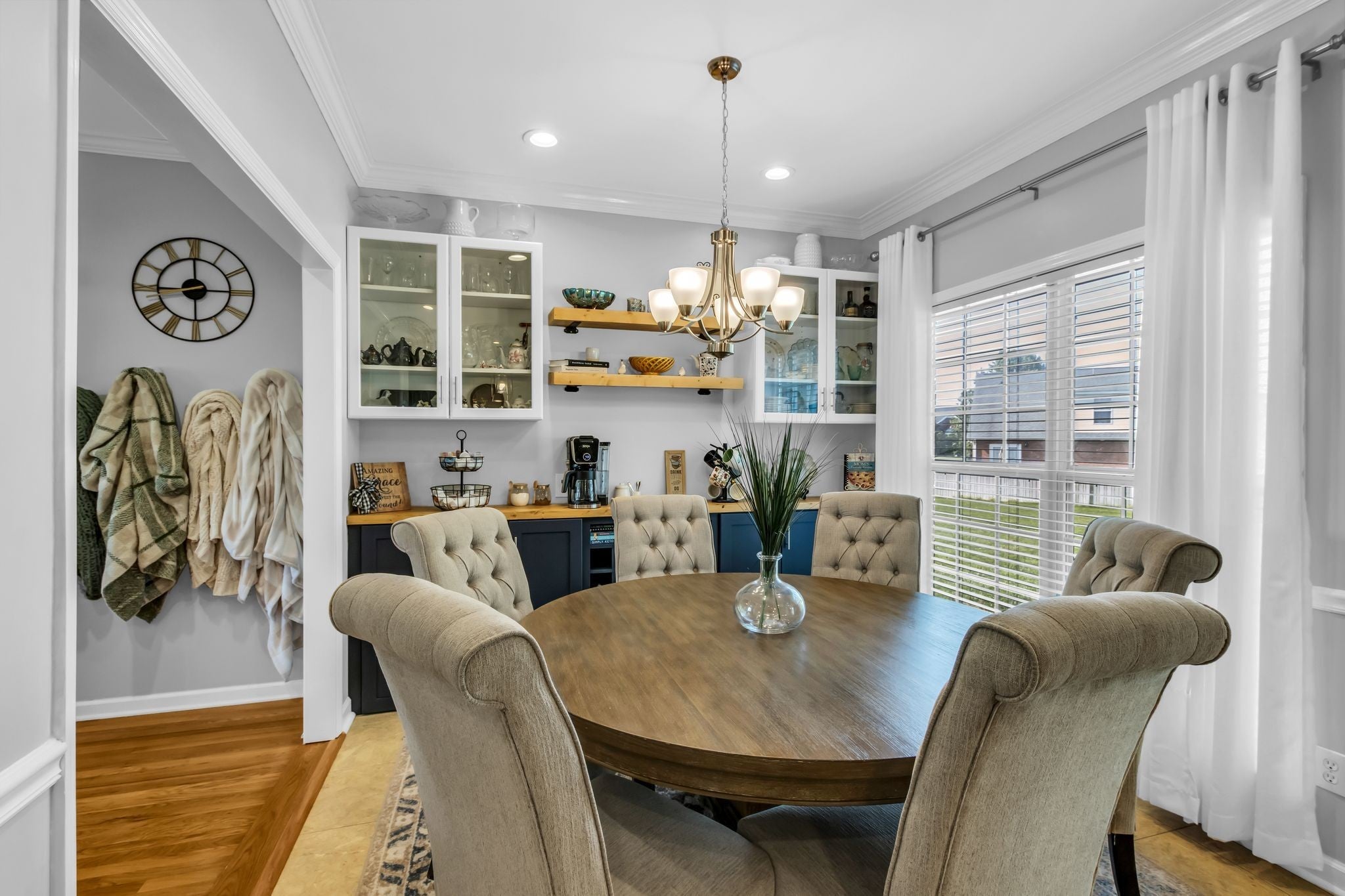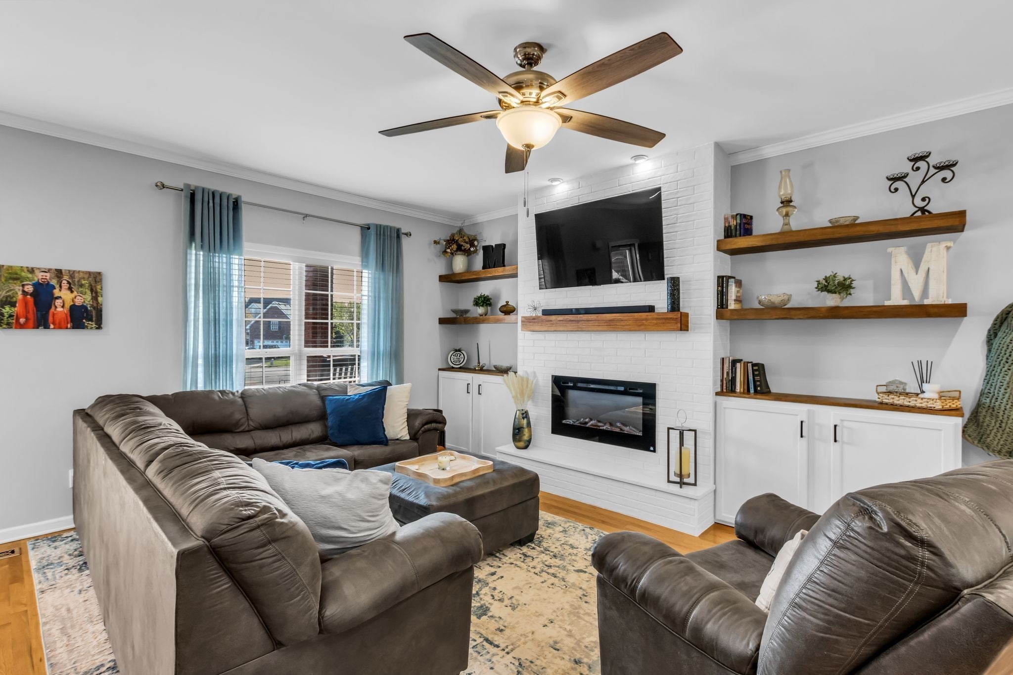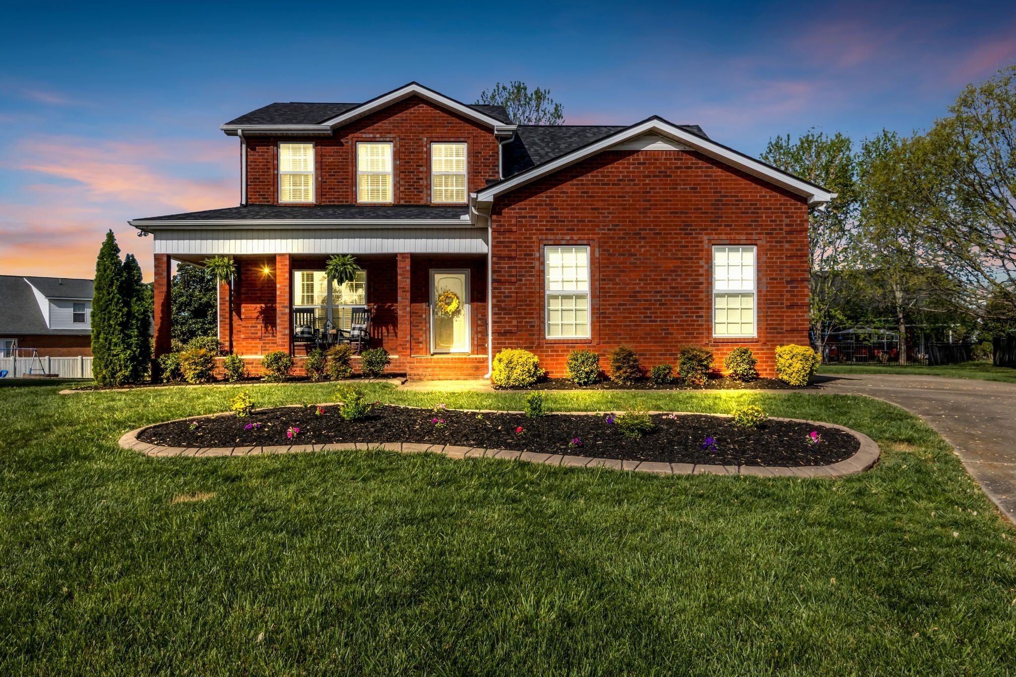 Gorgeous lot located in a cul-de-sac in Liberty Station Zoned Triple Siegel! This beautiful all brick home features a wrap around front porch, main floor master, living room with real hardwood, built-ins on either side of the fireplace, white cabinets in the kitchen with new white quartz counters, newer stainless appliances and tile backsplash. Extra cabinetry and glass wall cabinets added in the dining room to serve as a coffee bar or spacious buffet area. Covered back porch with a view of the spacious back yard with concrete edging around all the professional landscaping and lush green grass. Upstairs features 3 more bedrooms with a super cute guest bath and large bonus room for movie nights, kids playroom and more. Powder bath and laundry room off the kitchen and garage spaces. New roof (2025), 2 Nest thermostats, Ring security system with cameras stay, new modern garage door opener with camera on the app, new garage door springs, Water Heater (2022), Downstairs HVAC (2016), Upstairs HVAC (2013), both units have been services annually. Liberty Station offers a community pool, holiday planned activities and easy access grocery stores,I-24 & 840. Come take a look!