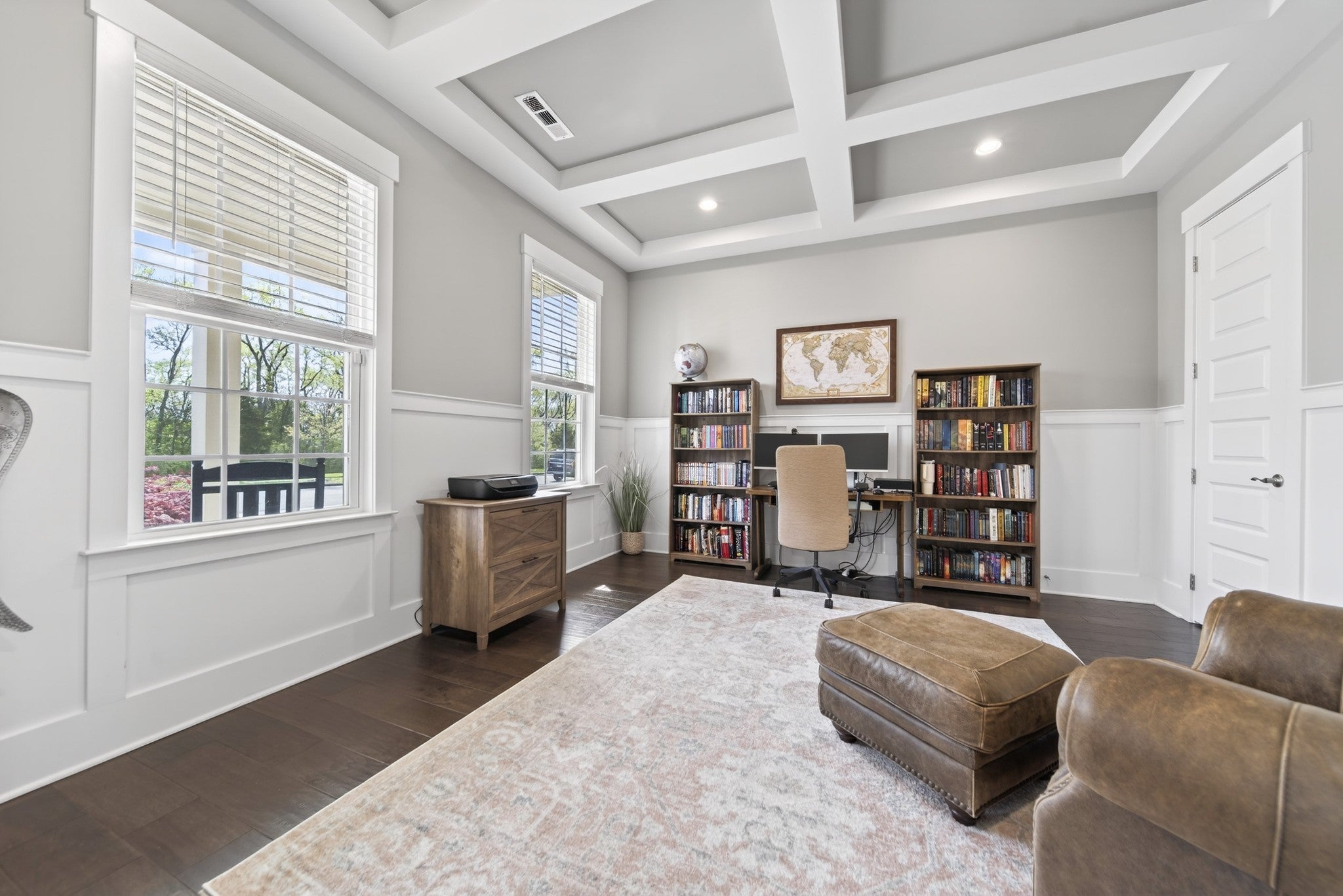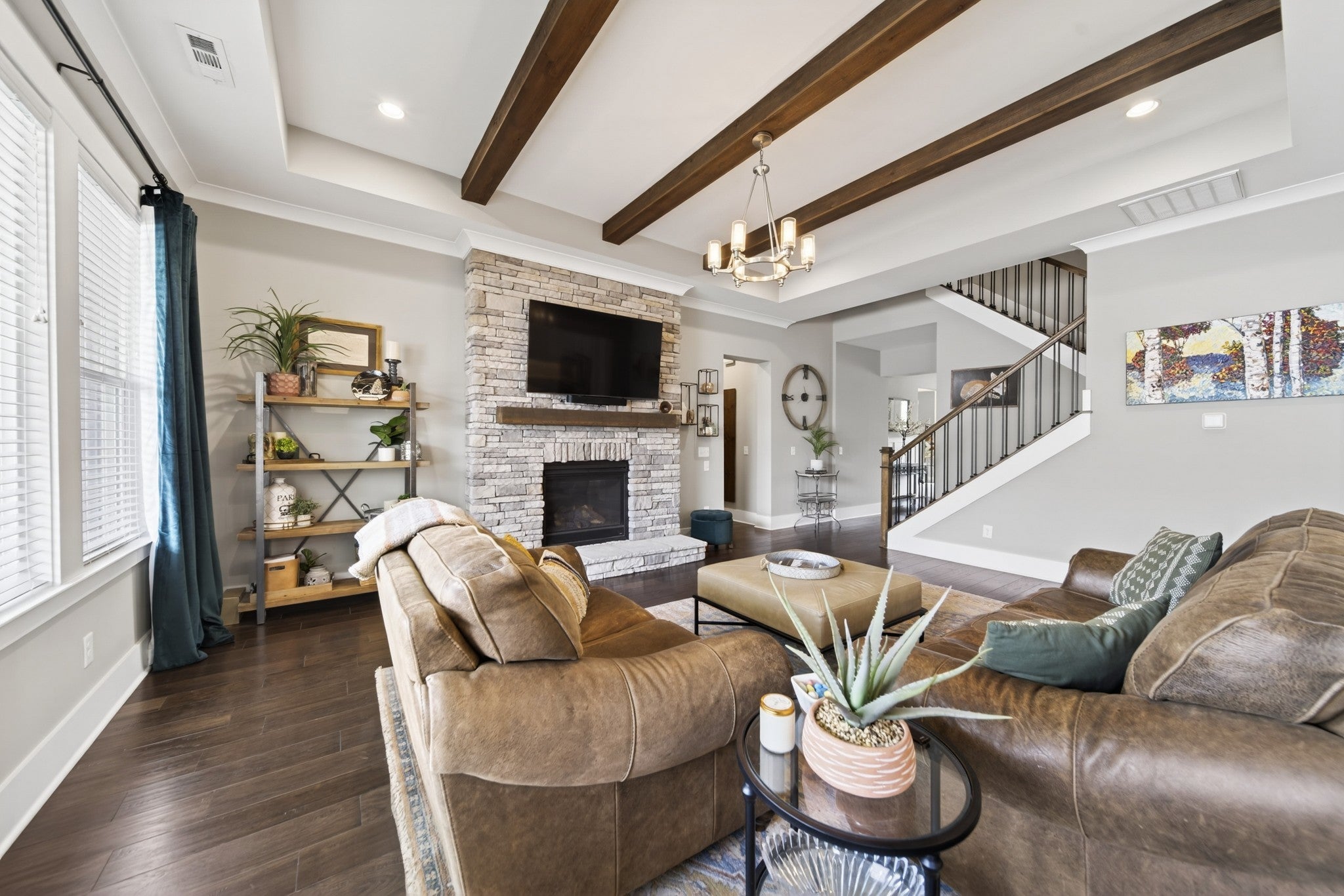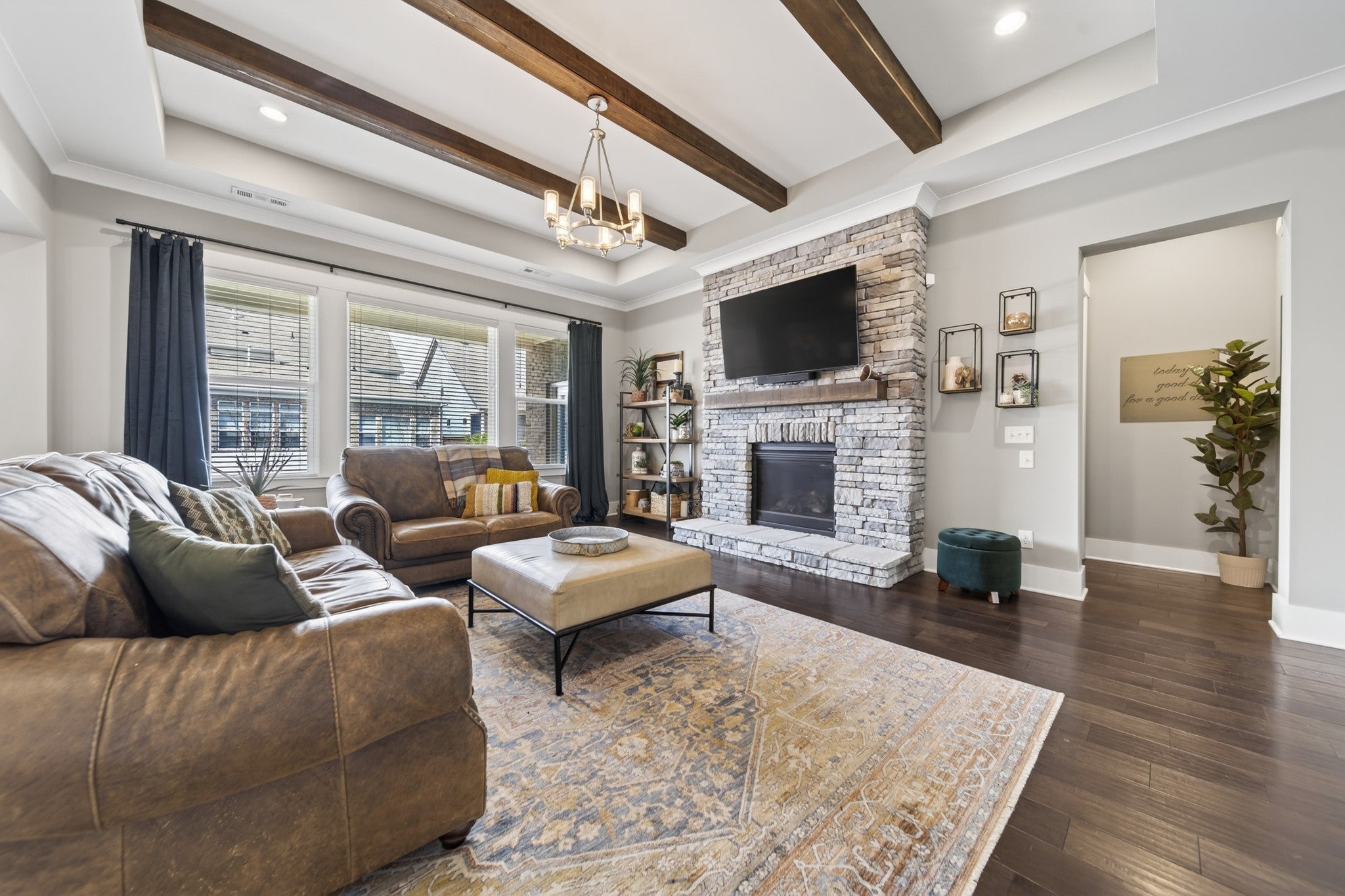 Impeccably maintained, all-brick home, gracefully positioned on one of the larger lots/homesites in Hendersonville's premier luxury enclave, Durham Farms. Thoughtfully designed with refined finishes and timeless style, this residence offers an exceptional open concept layout with expansive living and entertaining spaces throughout. The gourmet chef's kitchen is both stunning and functional, appointed with premium stainless steel appliances, double ovens, an oversized island, and walk-in pantry. An additional "second kitchen" utility room with full size refrigerator, tons of cabinets and work island is adjoined thru a sliding barn door...all seamlessly flowing into the dining area and the grand living room, which features coffered ceilings, custom floating shelves and a showplace 10 ft. floor to ceiling stone gas fireplace. There is a an additional office on the main level and a large bonus room upstairs on the 2nd level with walk-in storage. The home offers four generously sized bedrooms, each with its own private en-suite bath and large walk-in closet, ensuring both comfort and privacy. The main level hosts two bedrooms, including the sizable primary retreat with patio walk-out door, a custom designed closet, spa-like bath, designer tile shower, and dual vanities. Outdoor living includes beautifully landscaped grounds, inground irrigation system, a fully fenced private backyard, two covered porches and a an inviting patio, perfect for relaxing or grilling out. Residents of Durham Farms enjoy resort - style amenities including an elegant clubhouse, pool, state of the art fitness center, scenic walking trails, green spaces, and dog parks-all just a short drive to downtown Nashville. This home blends luxury, space and convenience in one exceptional package.