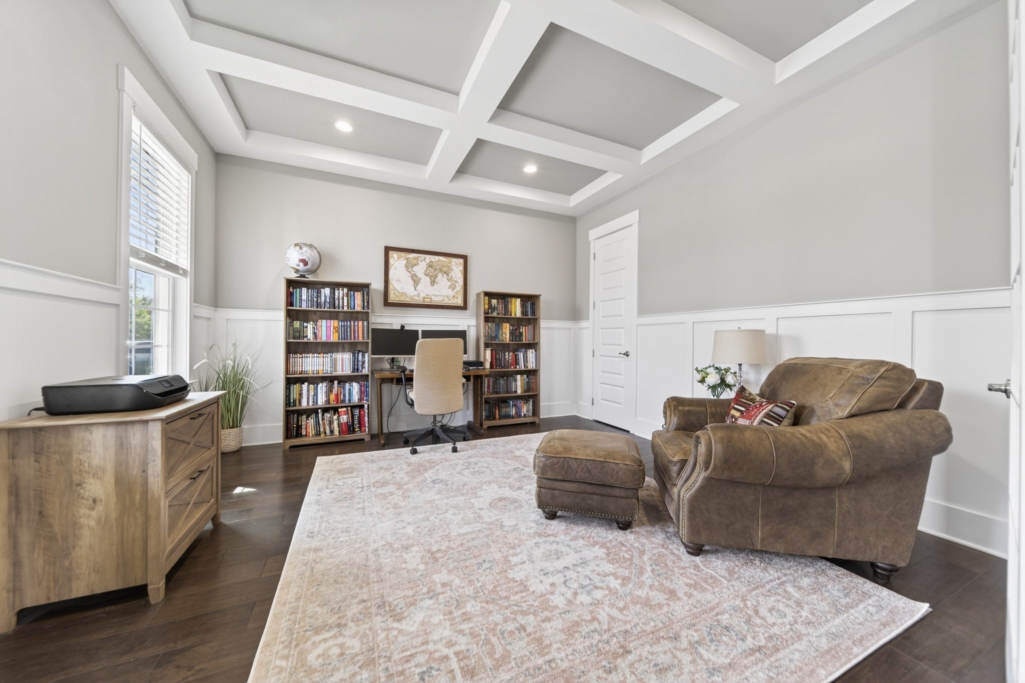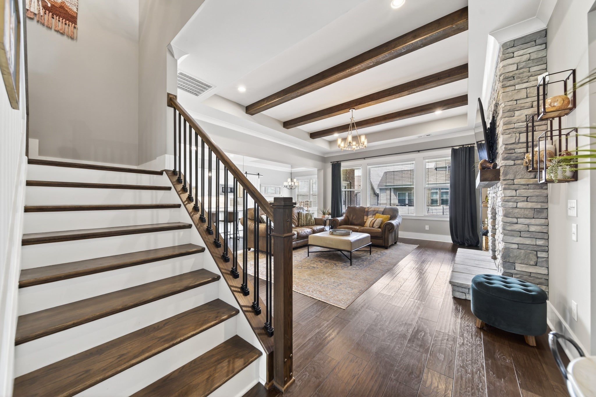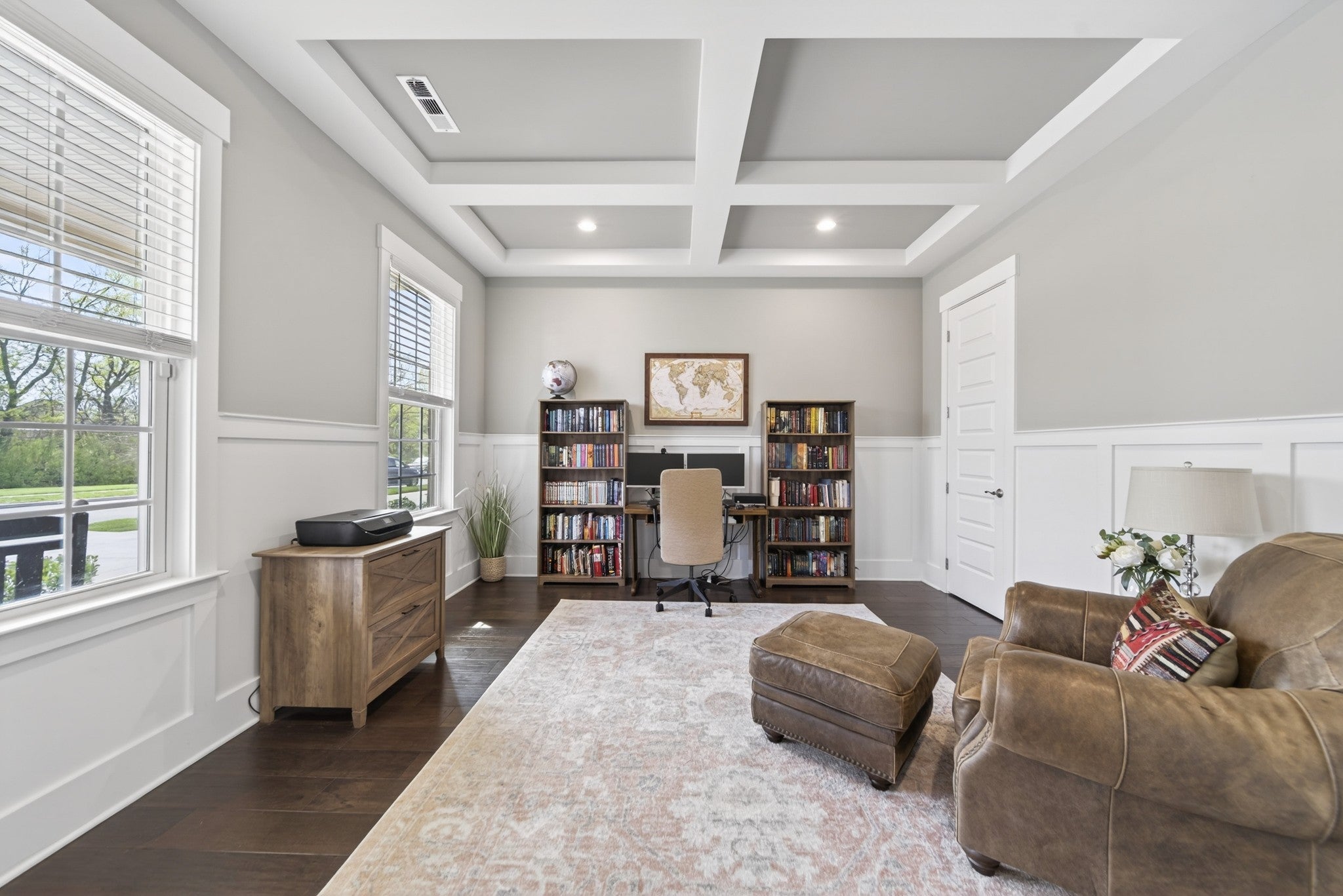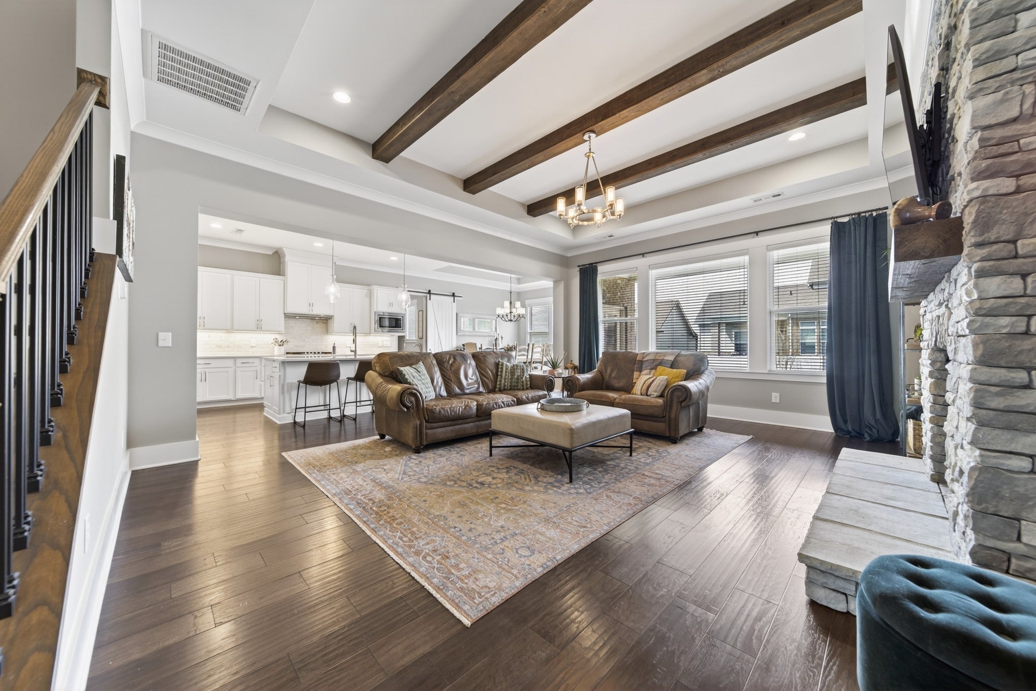 Impeccably maintained, all-brick home, gracefully positioned on one of the larger lots/homesites in Hendersonville's premier luxury enclave, Durham Farms. Thoughtfully designed with refined finishes and timeless style, this residence offers an exceptional open concept layout with expansive living and entertaining spaces throughout. The gourmet chef's kitchen is both stunning and functional, appointed with premium stainless steel appliances, double ovens, an oversized island, and walk-in pantry. An additional "second kitchen" utility room with full size refrigerator, tons of cabinets and work island is adjoined thru a sliding barn door...all seamlessly flowing into the dining area and the grand living room, which features coffered ceilings, custom floating shelves and a showplace 10 ft. floor to ceiling stone gas fireplace. There is a an additional office on the main level and a large bonus room upstairs on the 2nd level with walk-in storage. The home offers four generously sized bedrooms, each with its own private en-suite bath and large walk-in closet, ensuring both comfort and privacy. The main level hosts two bedrooms, including the sizable primary retreat with patio walk-out door, a custom designed closet, spa-like bath, designer tile shower, and dual vanities. Outdoor living includes beautifully landscaped grounds, inground irrigation system, a fully fenced private backyard, two covered porches and a an inviting patio, perfect for relaxing or grilling out. Residents of Durham Farms enjoy resort - style amenities including an elegant clubhouse, pool, state of the art fitness center, scenic walking trails, green spaces, and dog parks-all just a short drive to downtown Nashville. This home blends luxury, space and convenience in one exceptional package.