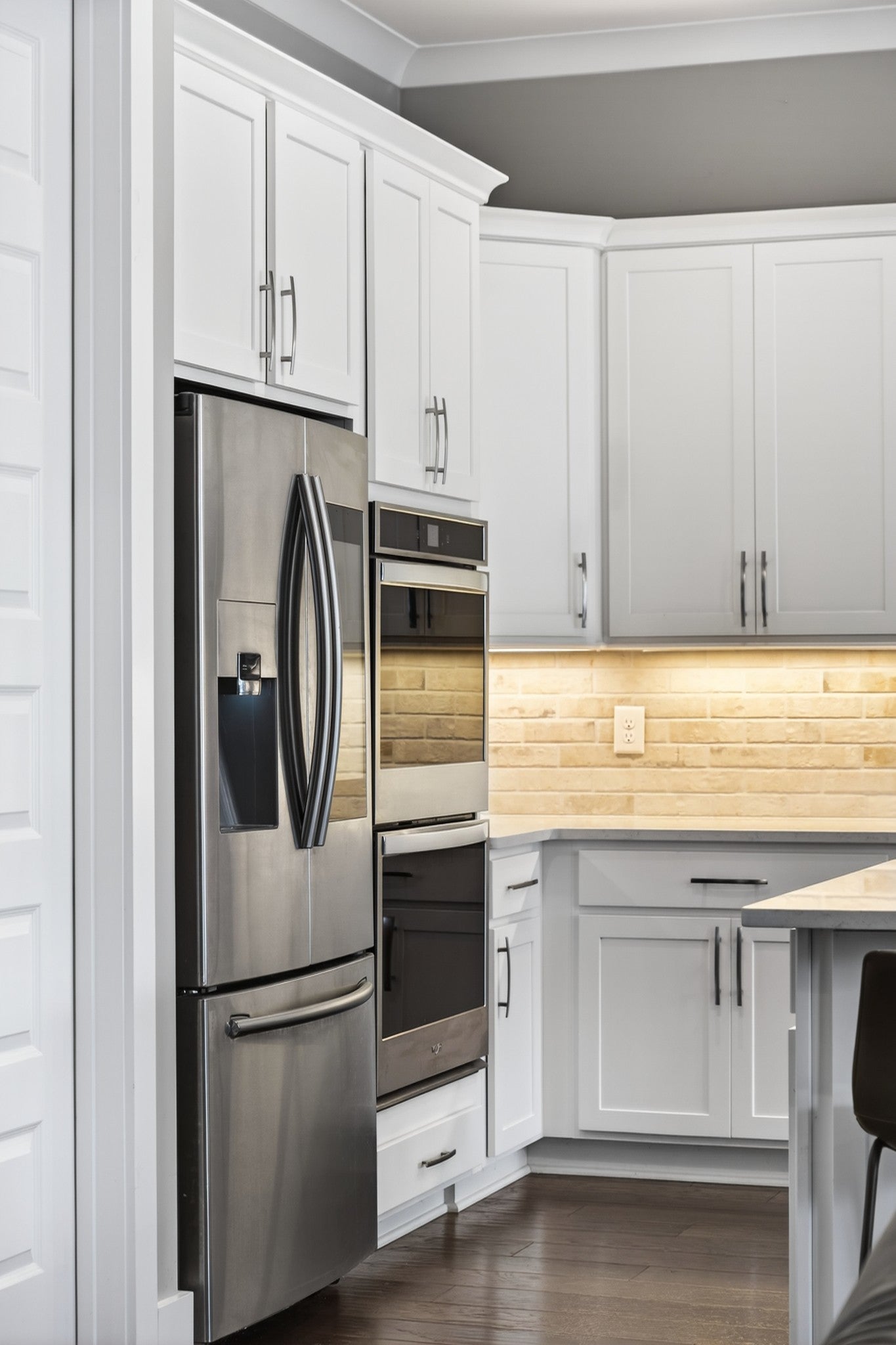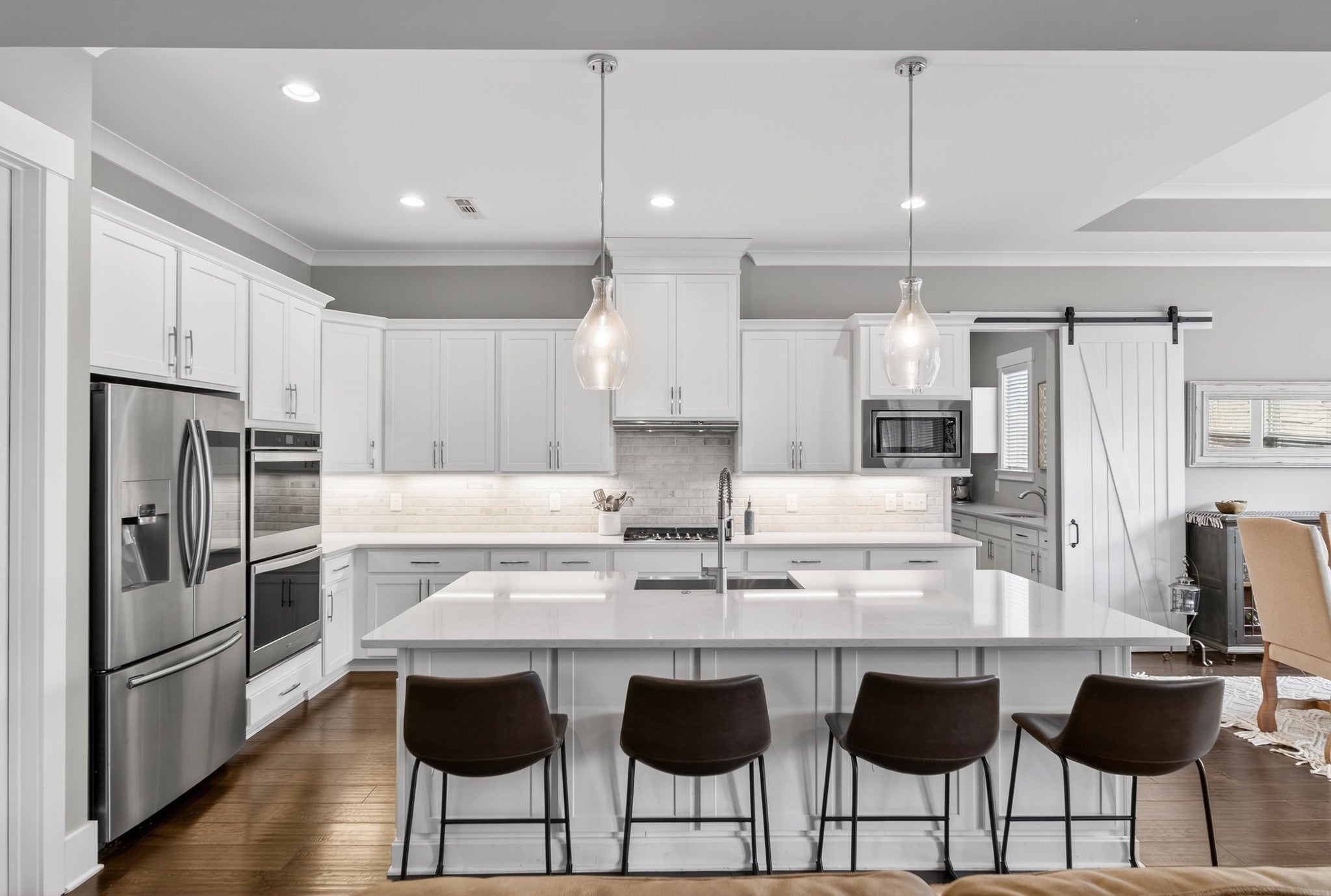 - Double Oven, Electric Oven, Cooktop, Dishwasher, Disposal, Microwave, Refrigerator, Stainless Steel Appliance(s), Smart Appliance(s)