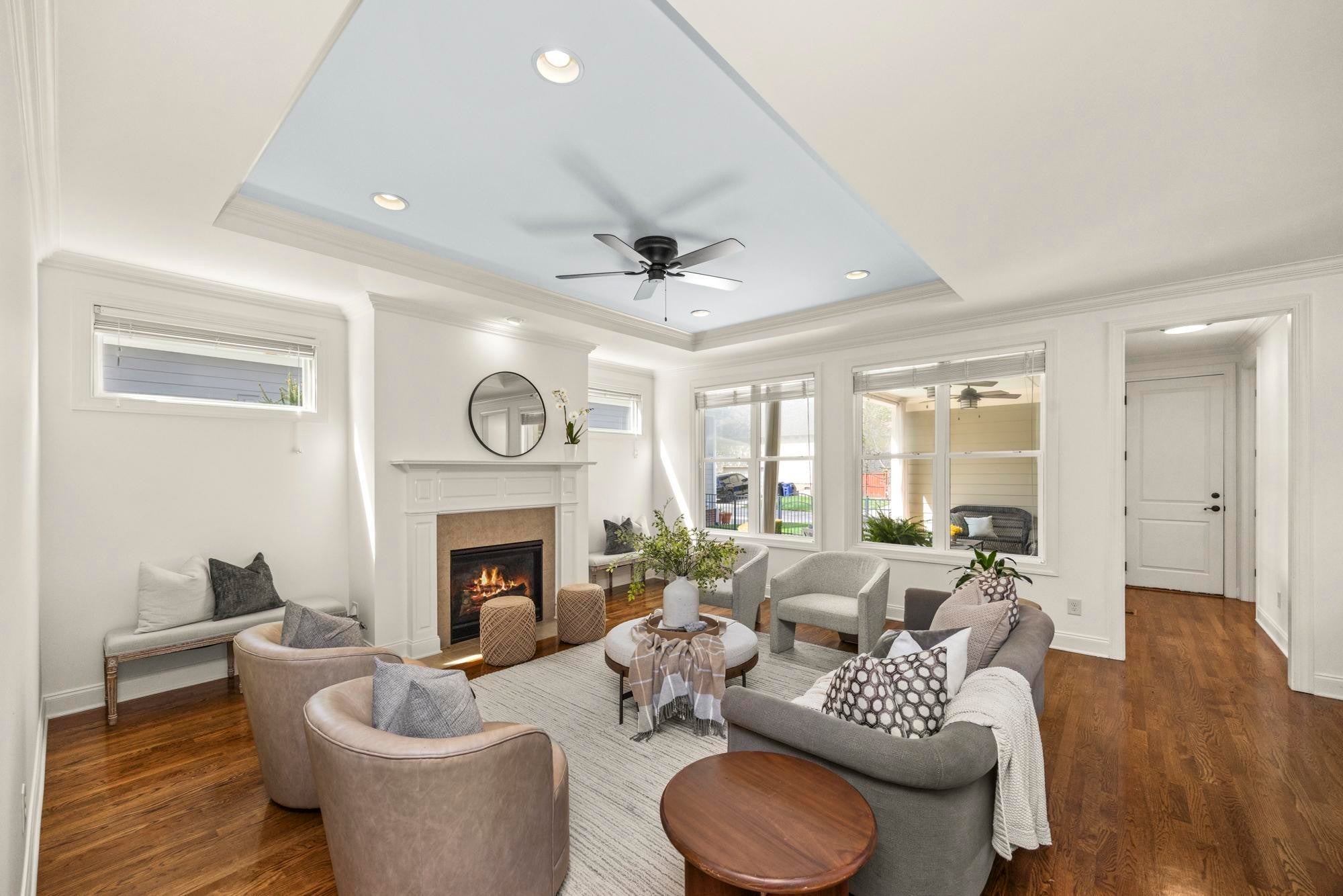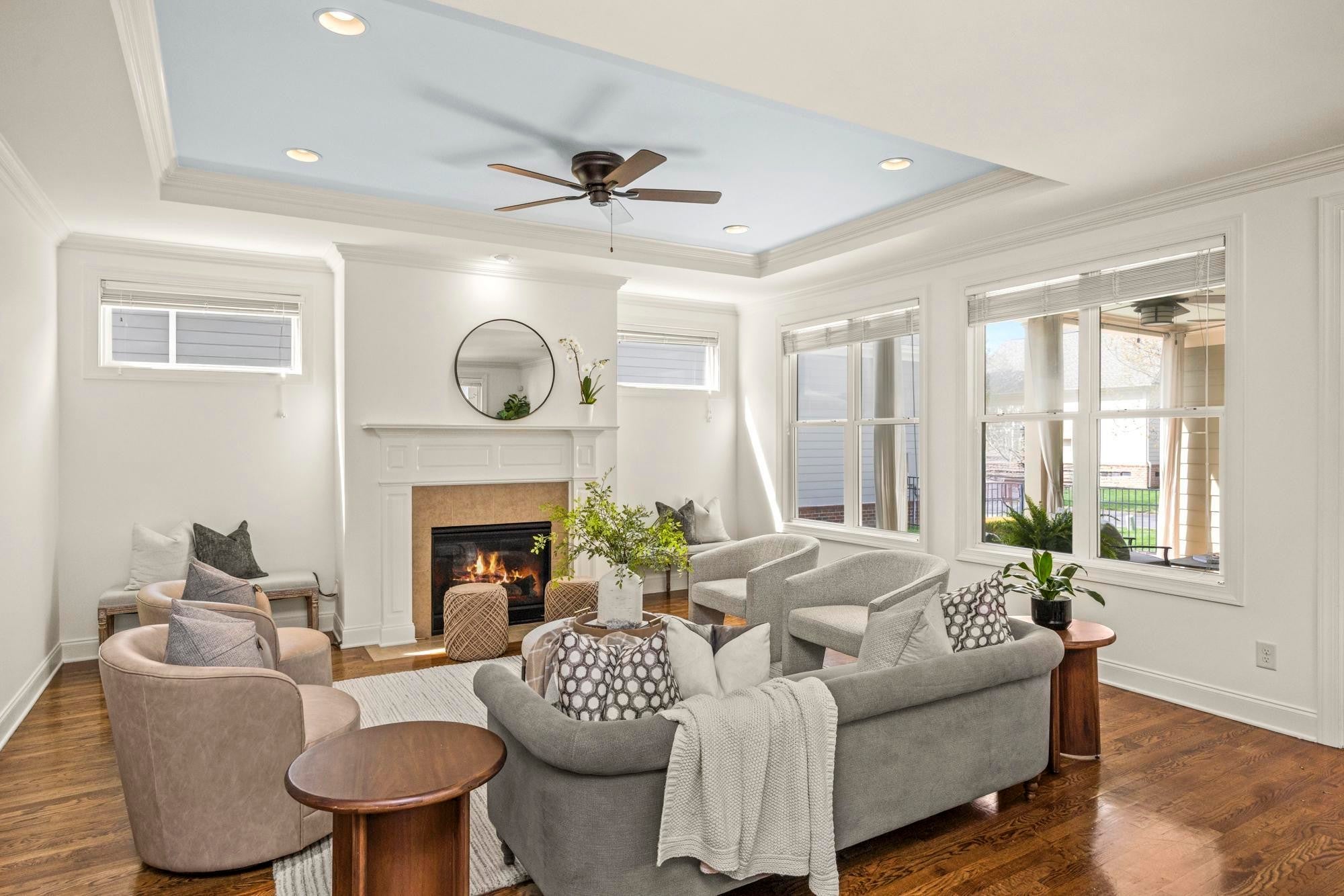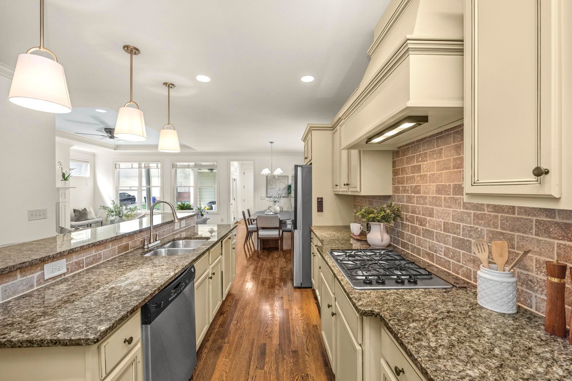 Welcome to this storybook Westhaven jewel, wonderfully located on an idyllic tree-lined street, just a stroll away from the vibrant Town Center. A well maintained gracious home awaits you! The entry foyer, showcasing a beautiful staircase, gives you a glimpse of true hardwood floors, tall ceilings, and fine craftsmanship. Freshly painted throughout, this home provides a delightful floor plan with a main level primary suite and an open spacious den/dining/kitchen design. Gather your family around the den fireplace for tv watching, lively conversation and game nights. The cook in the family will enjoy a well designed kitchen which offers a gas cooktop, an abundance of cabinetry, a farm sink, and an expansive granite raised bar, perfect for serving morning breakfast or overseeing homework. The seller has upgraded the primary bath with a stylish oversized tiled walk-in shower in the bath. Upstairs features three additional nicely sized bedrooms, two baths, and the ultimate spot for a playroom. Mom can keep an eye and ear on everybody, but the toys stay out of sight! 122 Fitzgerald Street boosts three inviting porches: a covered front porch for neighbor visits, a private covered patio for morning coffee, and a new trek rooftop deck overlooking the pretty streetscape. Your furry friends will enjoy is a lushly manicured fenced side yard. Westhaven, one of the most thoughtfully developed communities in Tennessee, offers unparalleled amenities: several pools, clubhouse, sidewalks, tennis courts, lake activities, walking trails, and neighborhood events. The Town Center has literally everything you need: groceries, restaurants, medical offices, post office, shopping, spas, cleaners and more! Schedule a showing and see why you will want to live here! OPEN SUNDAY, April 12th, 2-4. New roof 2024, New H2O tank 2023, New Washer, Dryer and Refrigerator to remain.