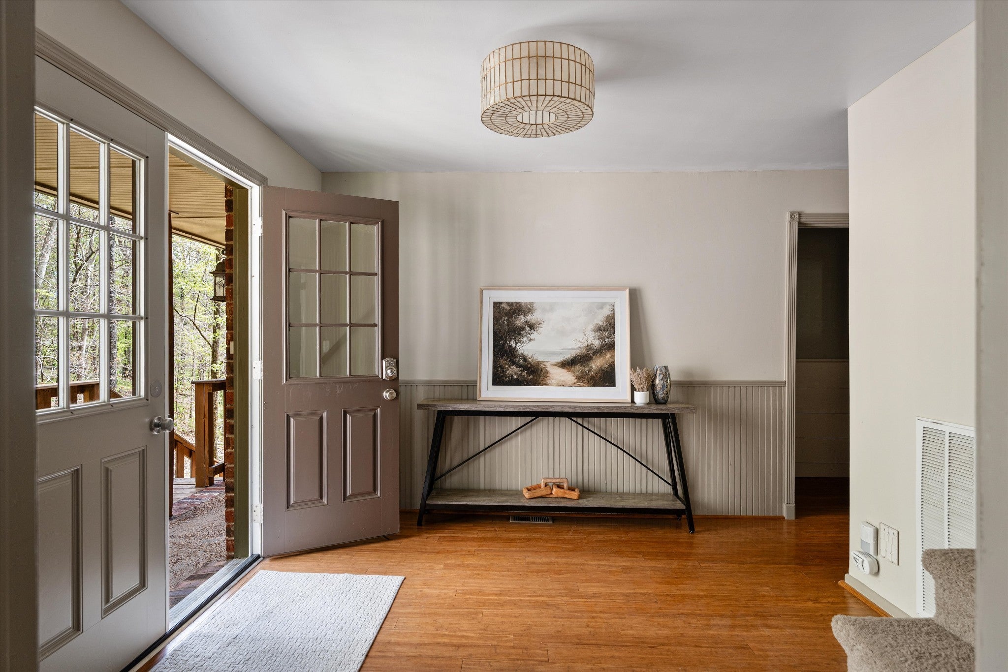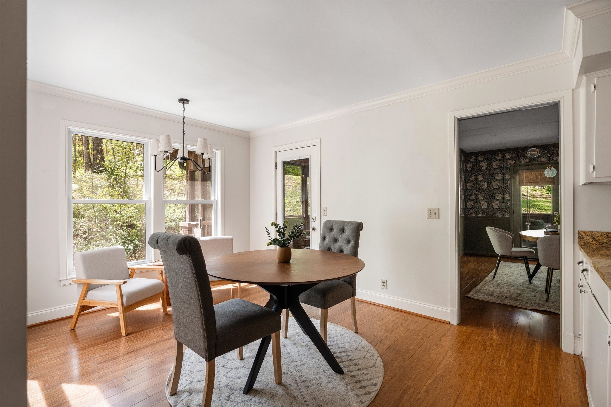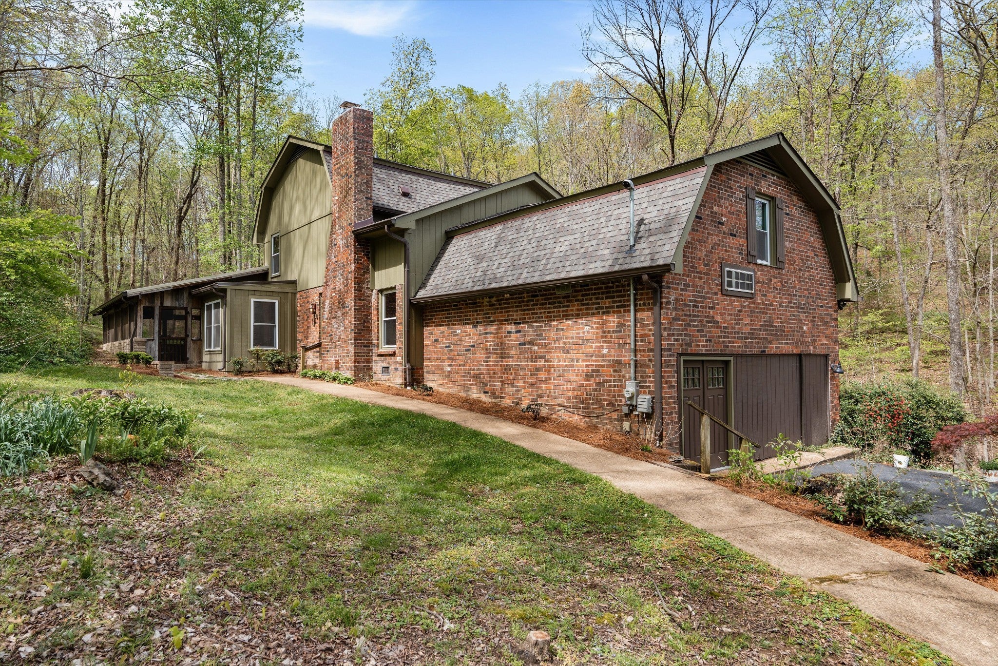 Imagine waking up to the sounds of nature, surrounded by two acres of beautiful wooded views—tucked away on a quiet cul-de-sac in Franklin! This is the kind of home where life slows down and outdoor living truly takes center stage. The wrap-around screened-in porch is the heart of it all—complete with a cozy porch bed swing, dining space for al fresco dinners, and plenty of room to relax or entertain while taking in the peaceful surroundings. Just beyond, a fire pit area invites evenings under the stars. Inside, the home is full of charm and character. The main level features a warm and inviting den with a wood-burning fireplace, a stunning dining room, and a beautifully styled living space with designer wallpaper that creates a rich, moody vibe. The primary suite is conveniently located on the main level, while upstairs you’ll find generously sized bedrooms and a beautiful oversized bathroom. Two spacious bonus rooms offer endless flexibility—perfect for work, play, or additional living space—and a private office over the garage provides the ideal work-from-home setup. The basement adds even more versatility with space for a game room, fitness area, or both. Recent updates include a new roof and newer HVAC, offering added peace of mind. A rare blend of privacy, character, and lifestyle—this is Franklin living at its best.