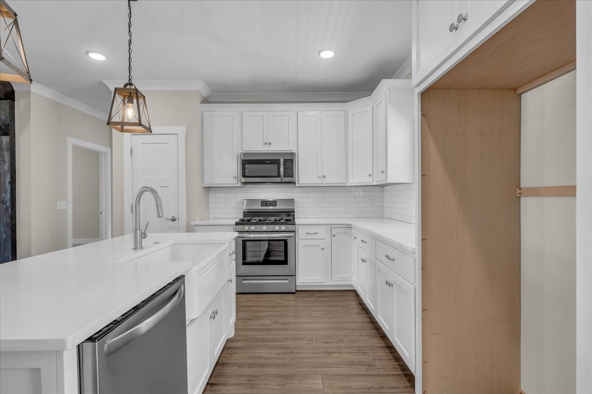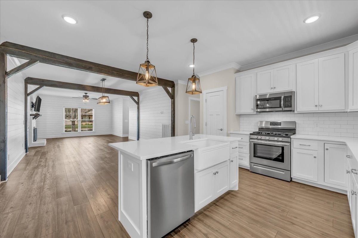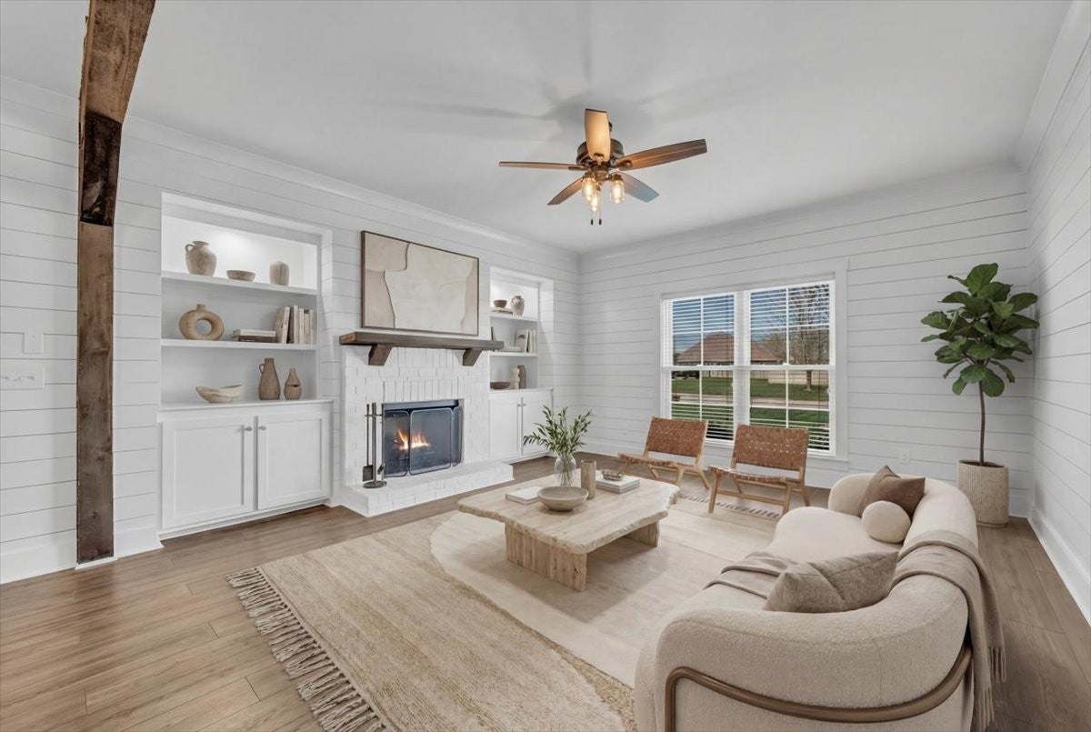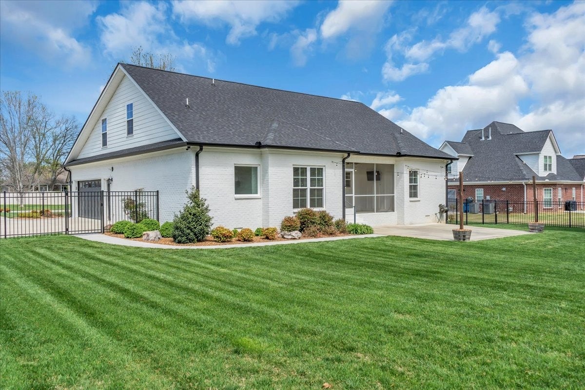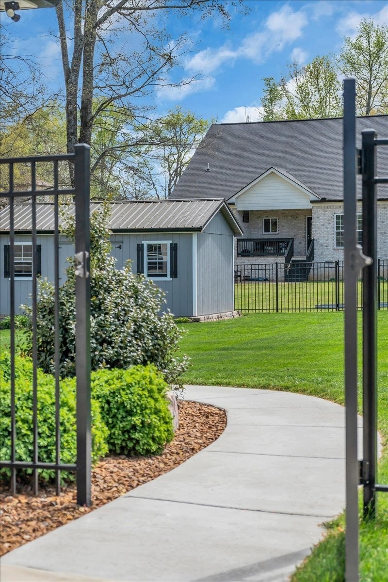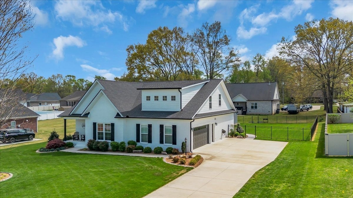 This beautiful home in Lexington Subdivision is in pristine condition, and ready for you to call it home! This full-brick 4 bedroom, 3 bath home has an open floorplan, making entertaining and casual living easy. The living room has large windows, shiplap detailing, and a gas fireplace flanked by built in cabinetry. The dining room is set off from the living room and kitchen by shiplap detailing and rustic beams, with space enough for a large table and chairs, plus a buffet or hutch. The kitchen has stainless appliances, including a gas range and oven, quartz counters, a large island with a farmhouse sink and counter for seating, pantry, and tile backsplash. The primary bedroom is on the main level, with large windows, and has a spa-like master bath with double vanities, separate bath and shower, and a huge walk-in closet. Two additional bedrooms, large laundry room, and a full bathroom round out the first floor. Flooring on the main level is LVP in the public areas and primary bedroom, tile in the master bath, and carpet in the bedrooms. Flooring upstairs is carpet, with LVP in the bath. Upstairs is a fourth bedroom, full bath with shower, a flex room that would be great for an office or hobby room, and a large bonus room. The large walkout attic is easily accessible, and has flooring to provide abundant storage, or the possibility of future living space. A screened back porch, extended patio, and shaded back yard make outdoor living a breeze. Professional landscaping, custom curbing, gutter guards, fenced back yard, and a storage shed for your outdoor equipment have all been provided, making outdoor maintenance easy. The two-car garage has extra storage nooks, garage door opener, and holds the tankless hot water heater. A Ring doorbell and Simplisafe alarm equipment provide security. The home has been freshly painted throughout, professionally cleaned, and carpets cleaned. All information herein deemed reliable, but subject to buyer/agent verification.