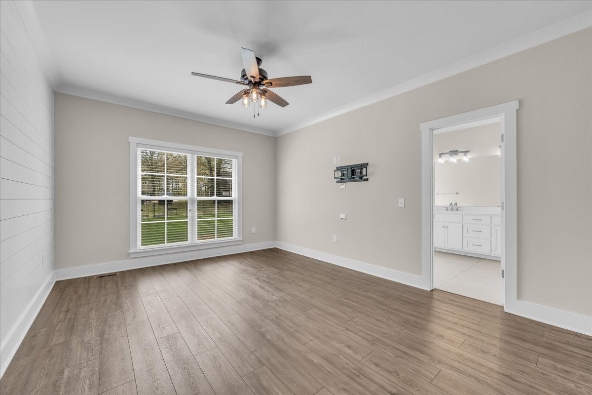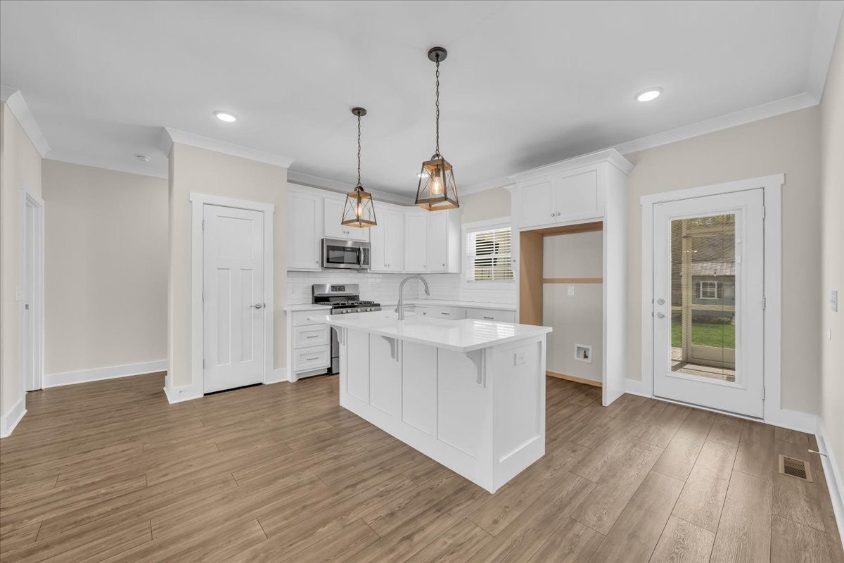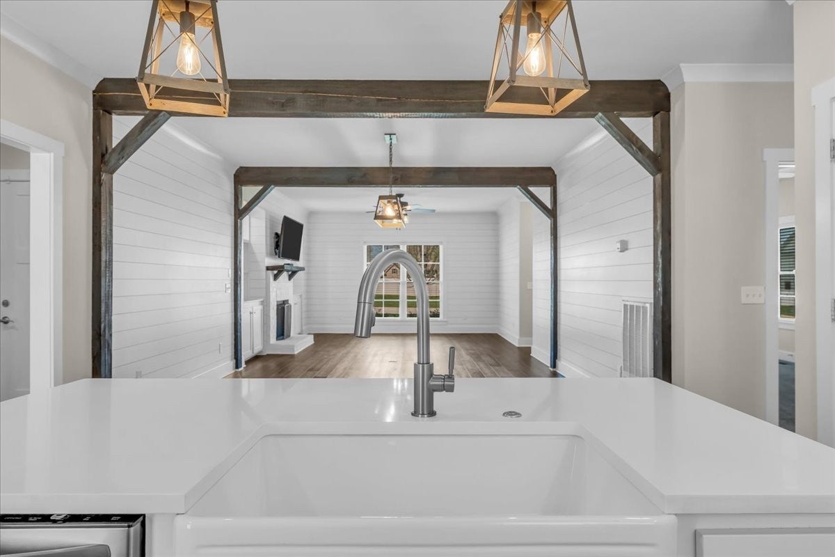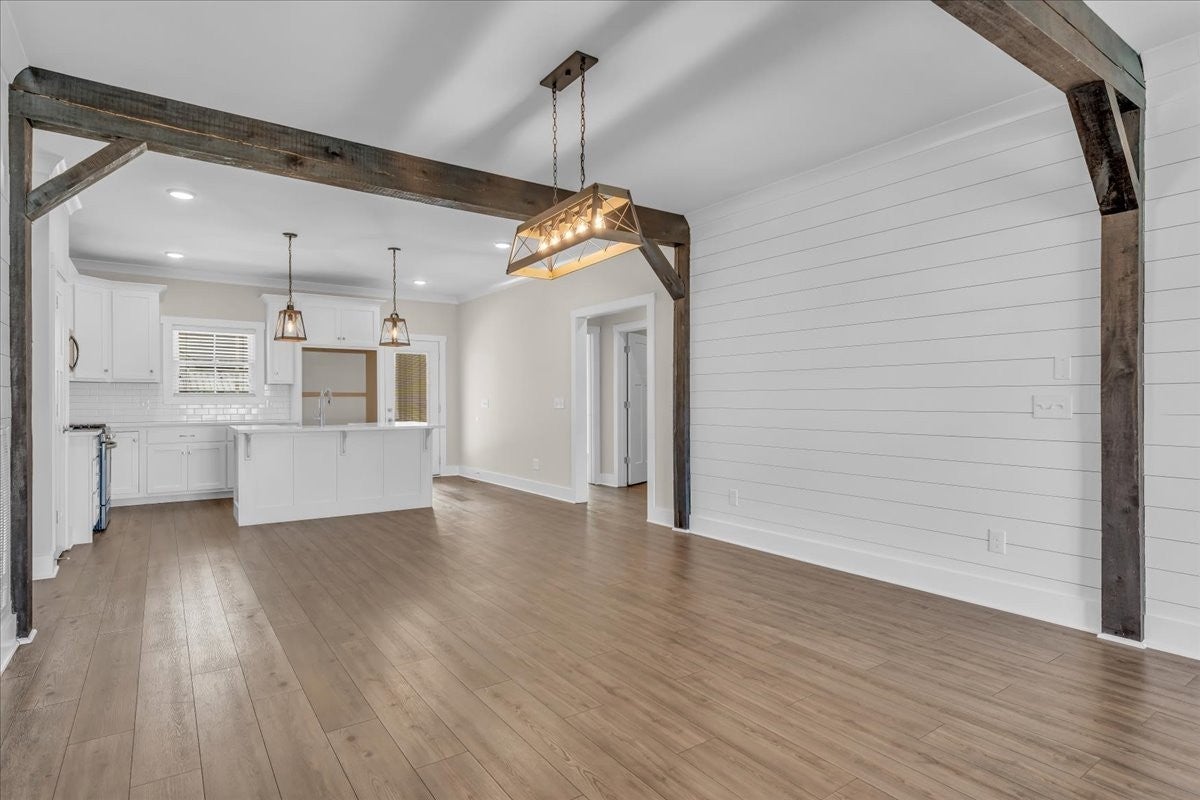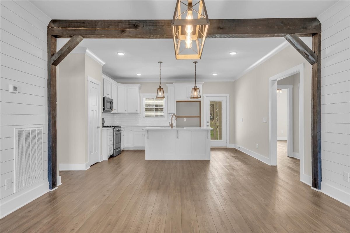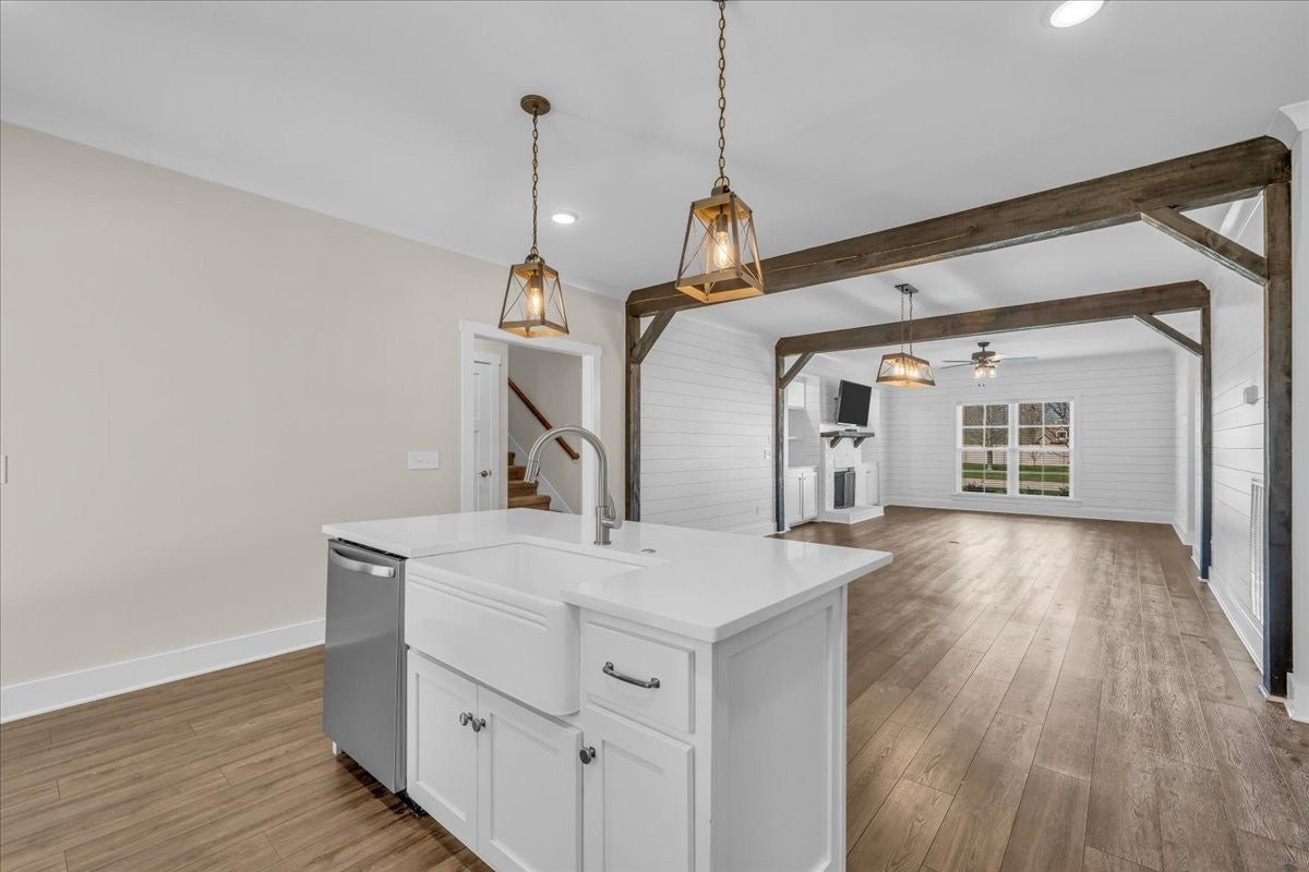 This beautiful home in Lexington Subdivision is in pristine condition, and ready for you to call it home! This full-brick 4 bedroom, 3 bath home has an open floorplan, making entertaining and casual living easy. The living room has large windows, shiplap detailing, and a gas fireplace flanked by built in cabinetry. The dining room is set off from the living room and kitchen by shiplap detailing and rustic beams, with space enough for a large table and chairs, plus a buffet or hutch. The kitchen has stainless appliances, including a gas range and oven, quartz counters, a large island with a farmhouse sink and counter for seating, pantry, and tile backsplash. The primary bedroom is on the main level, with large windows, and has a spa-like master bath with double vanities, separate bath and shower, and a huge walk-in closet. Two additional bedrooms, large laundry room, and a full bathroom round out the first floor. Flooring on the main level is LVP in the public areas and primary bedroom, tile in the master bath, and carpet in the bedrooms. Flooring upstairs is carpet, with LVP in the bath. Upstairs is a fourth bedroom, full bath with shower, a flex room that would be great for an office or hobby room, and a large bonus room. The large walkout attic is easily accessible, and has flooring to provide abundant storage, or the possibility of future living space. A screened back porch, extended patio, and shaded back yard make outdoor living a breeze. Professional landscaping, custom curbing, gutter guards, fenced back yard, and a storage shed for your outdoor equipment have all been provided, making outdoor maintenance easy. The two-car garage has extra storage nooks, garage door opener, and holds the tankless hot water heater. A Ring doorbell and Simplisafe alarm equipment provide security. The home has been freshly painted throughout, professionally cleaned, and carpets cleaned. All information herein deemed reliable, but subject to buyer/agent verification.