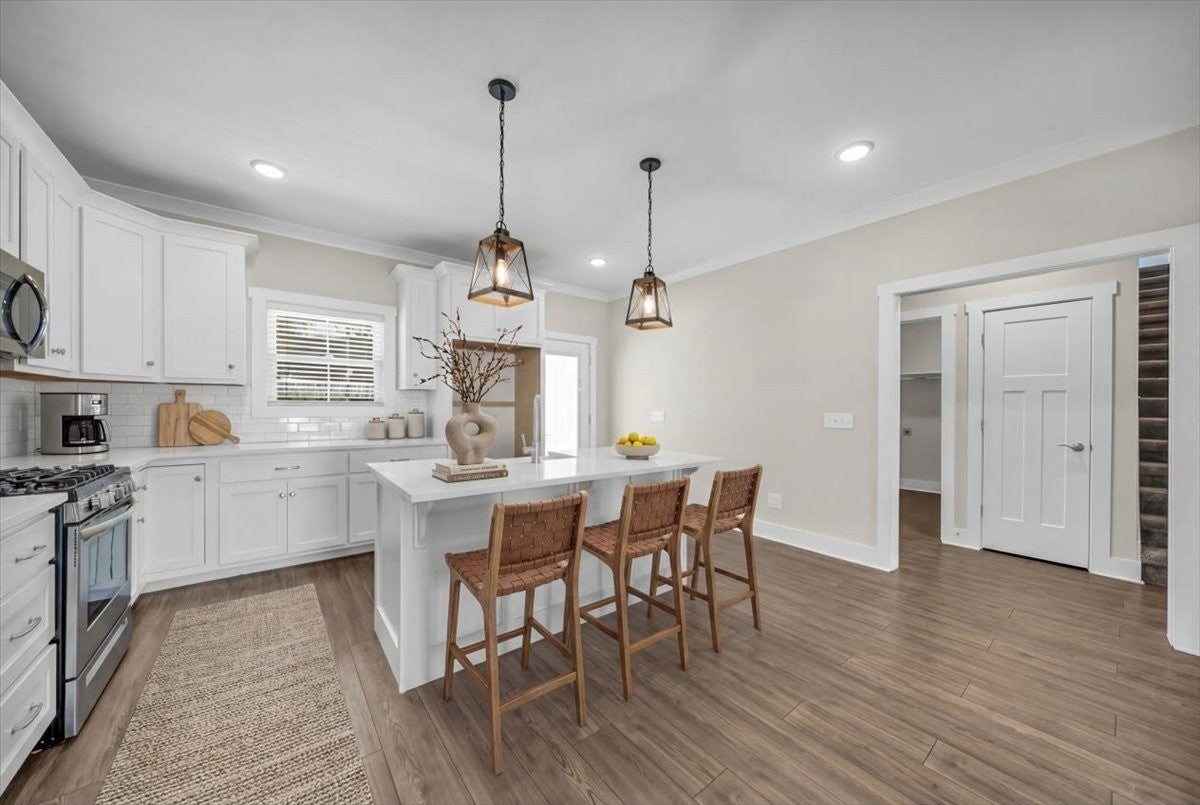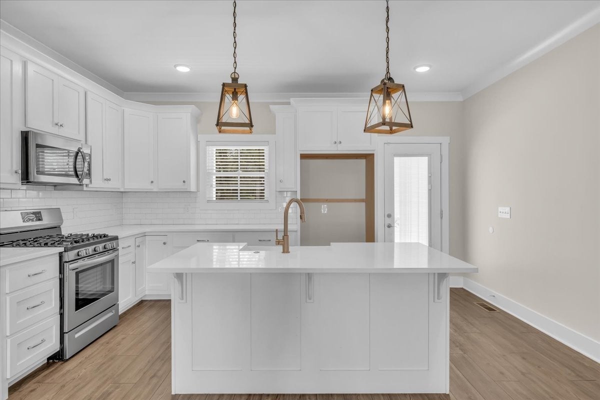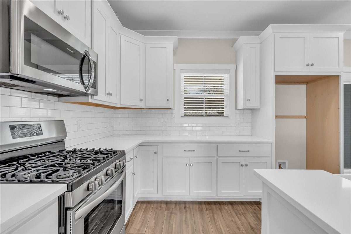 - Gas Oven, Gas Range, Dishwasher, Disposal, Microwave, Stainless Steel Appliance(s)