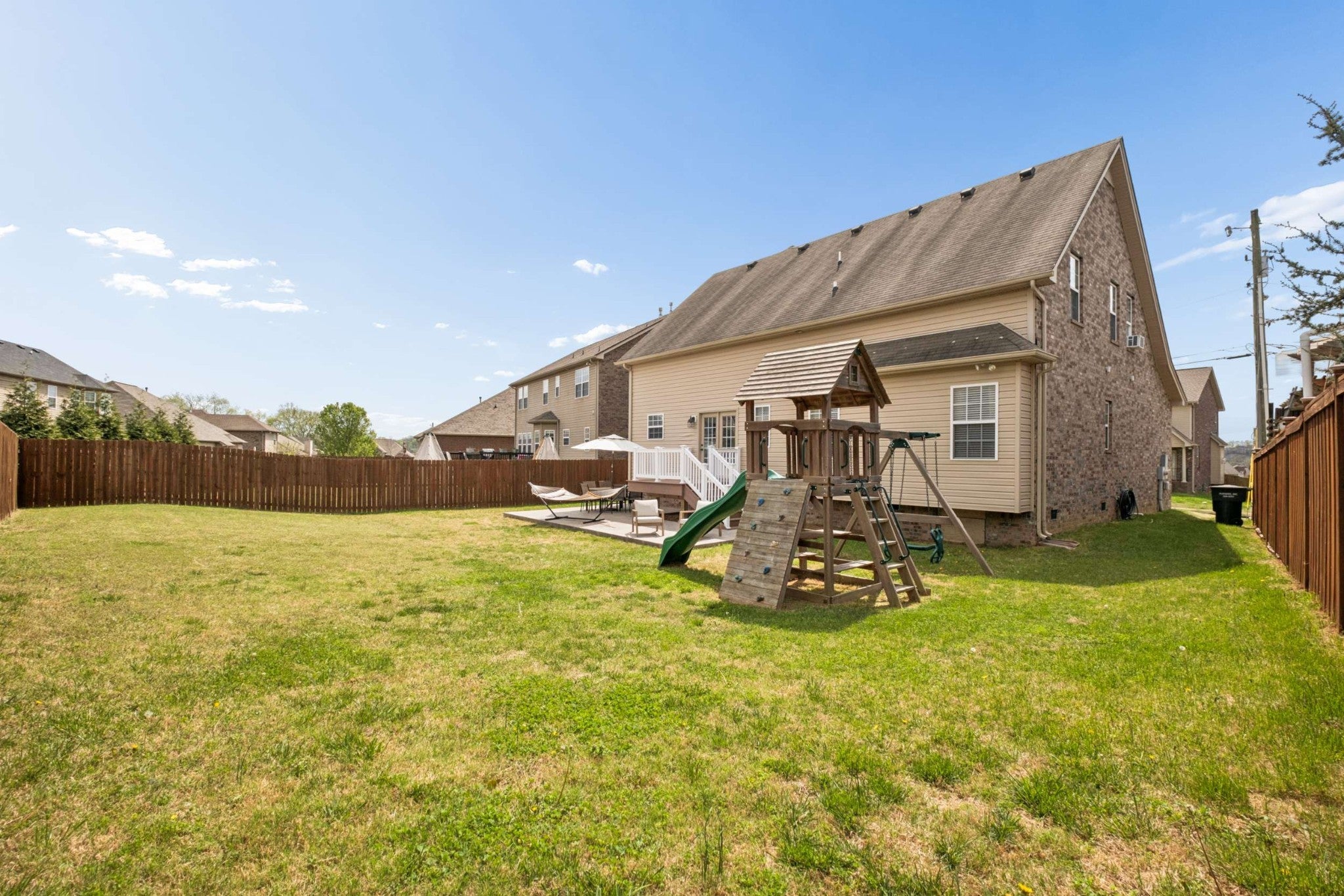 Welcome to 7720 Sunbar Lane, a thoughtfully designed home in Nashville that blends comfort and convenience. The open floor plan is ideal for everyday living and entertaining. The family room, filled with natural light, features a gas fireplace for cozy evenings. The updated kitchen includes stainless steel appliances, granite countertops, and plenty of storage. The dining area offers flexibility for both casual meals and formal gatherings. The main-level primary suite includes an en-suite bathroom with double vanities, a separate tub and shower, and a walk-in closet. A dedicated laundry room on the main floor adds practicality. Upstairs, there are two additional bedrooms with ample closet space, a bonus room, and a walk-out attic great for storage or ready for finishing. Outside, enjoy the large, level backyard with a new deck and concrete pad, perfect for outdoor activities or hosting. Updates include brand-new HVAC systems and water heater. Conveniently located near the Mill Creek Greenway and minutes from shopping and dining, this home offers an unbeatable location.