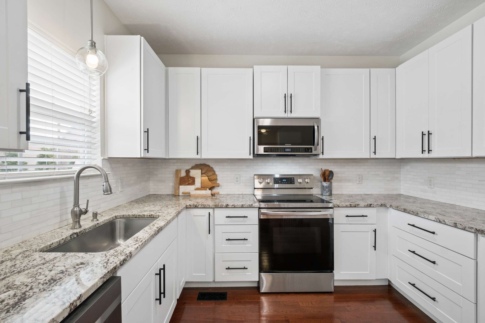 - Electric Oven, Electric Range, Dishwasher, Disposal, Dryer, Microwave, Refrigerator, Stainless Steel Appliance(s), Washer