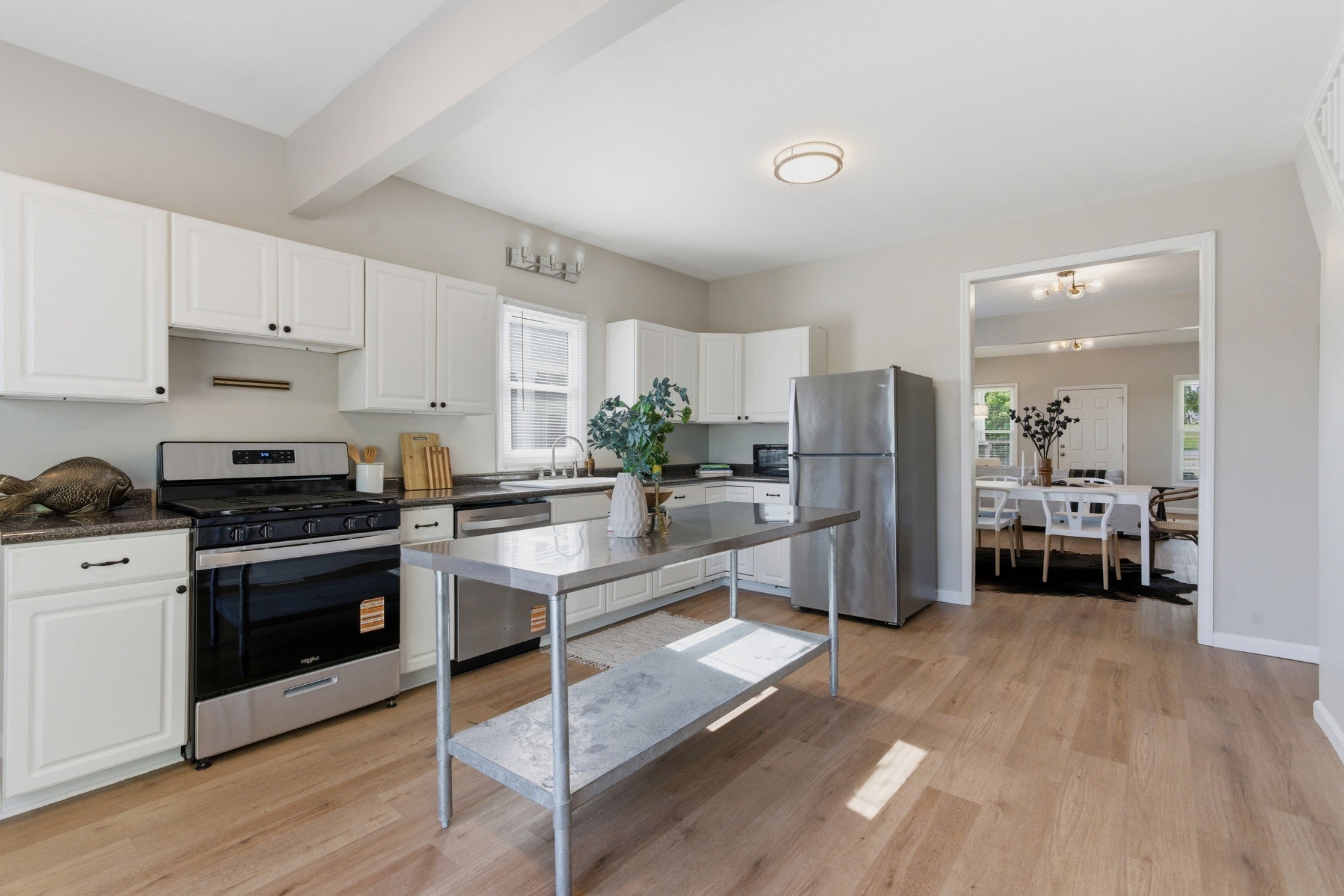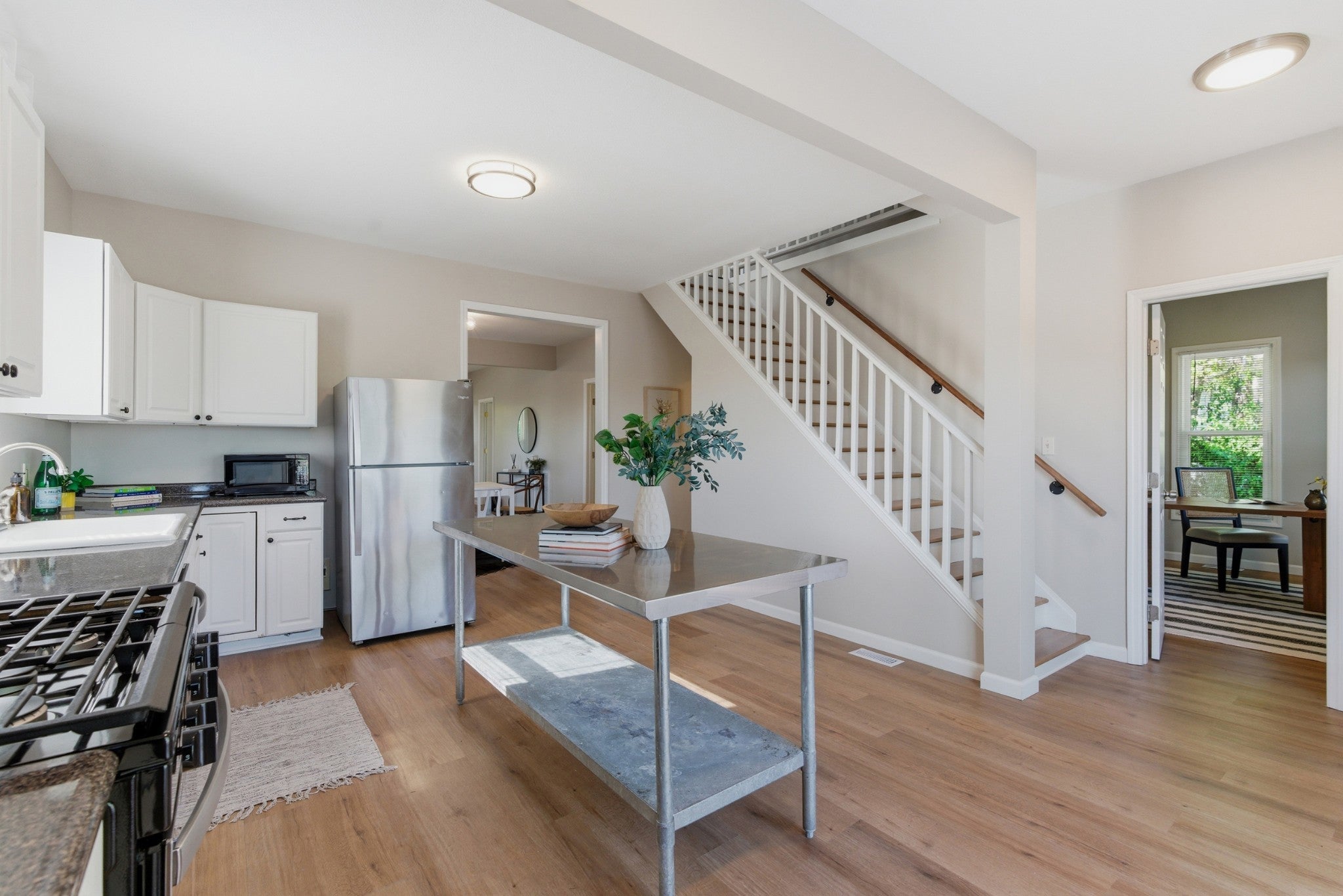 - Oven, Gas Range, Dishwasher, Disposal, Dryer, Freezer, Microwave, Refrigerator, Stainless Steel Appliance(s), Washer