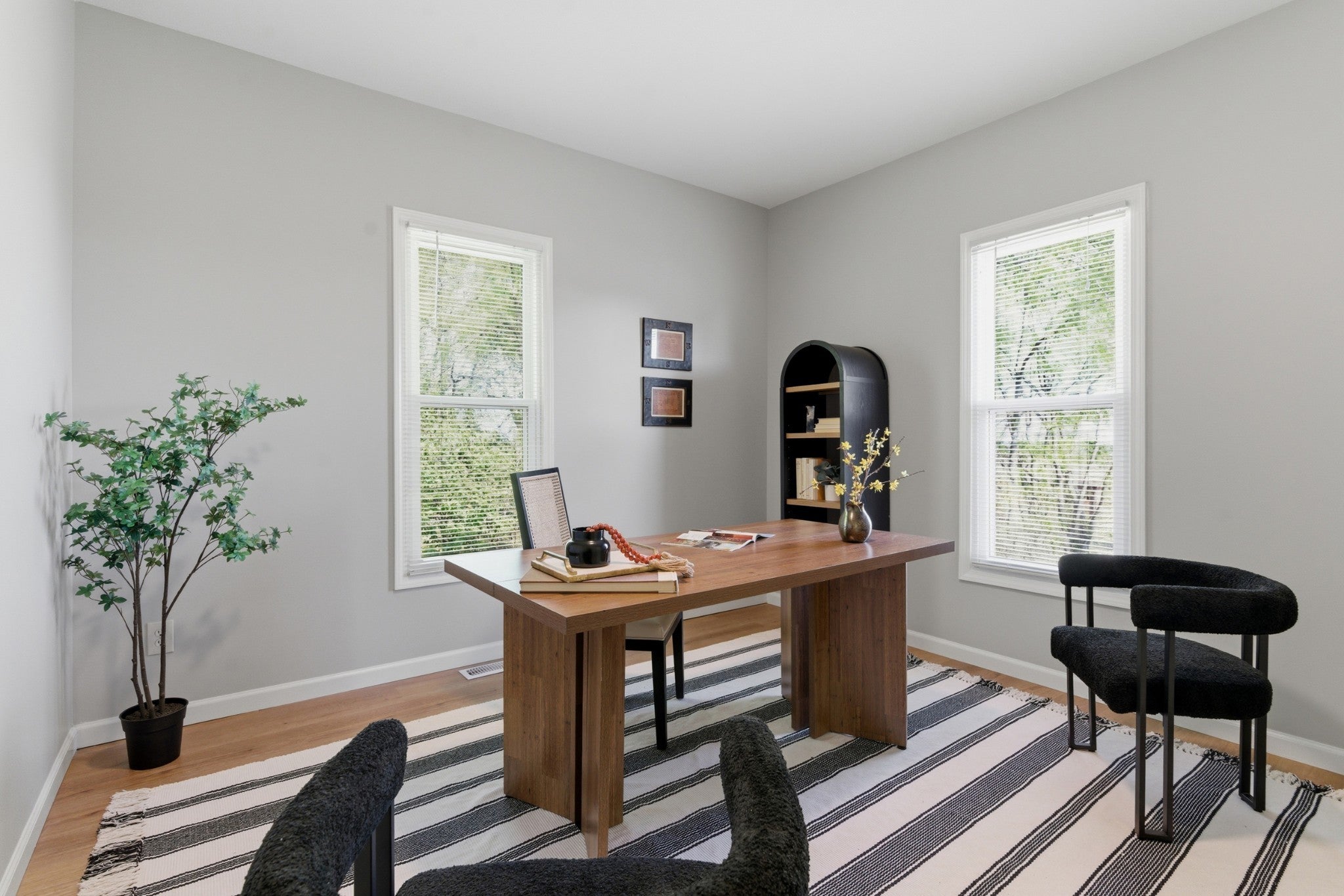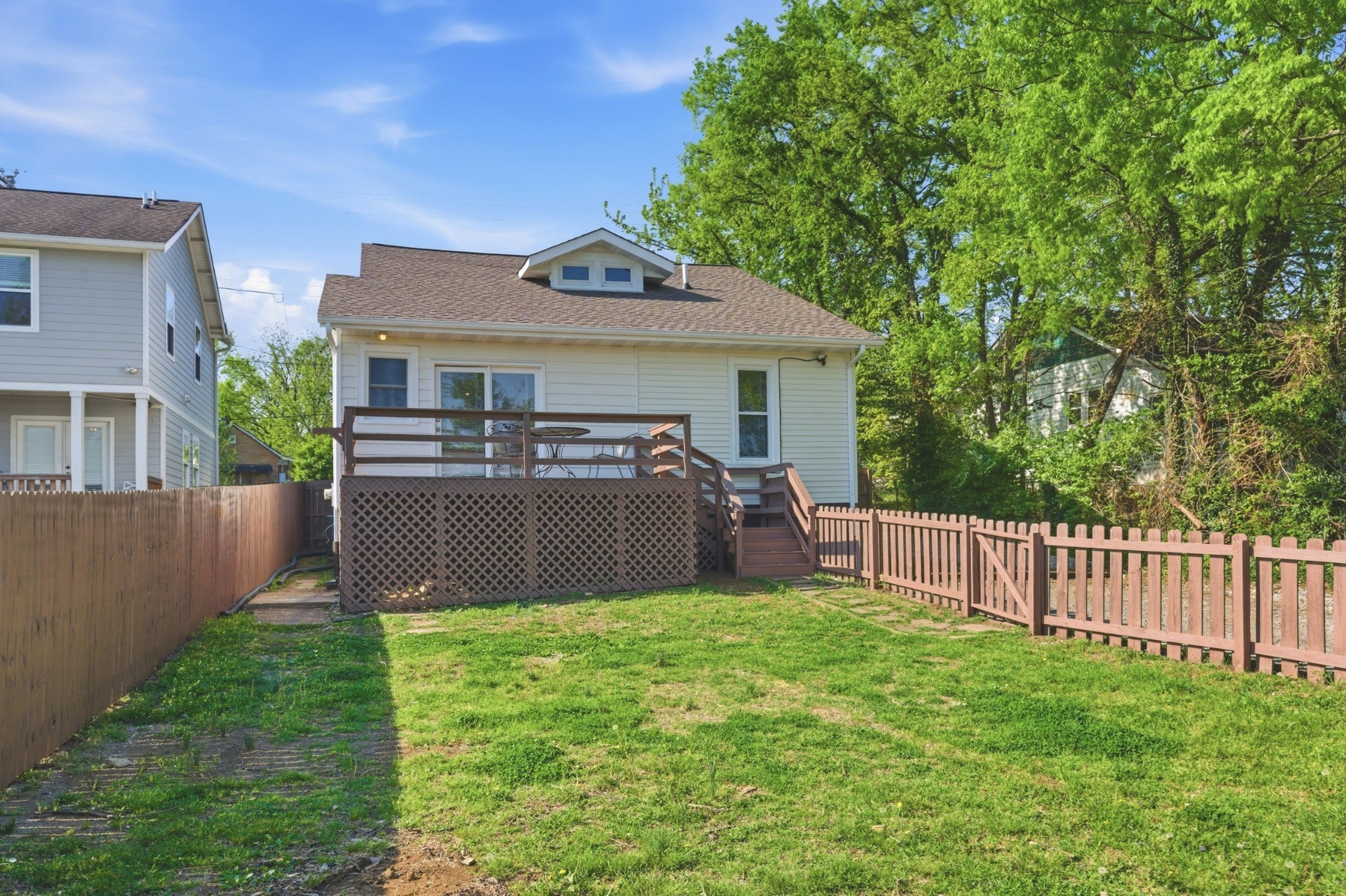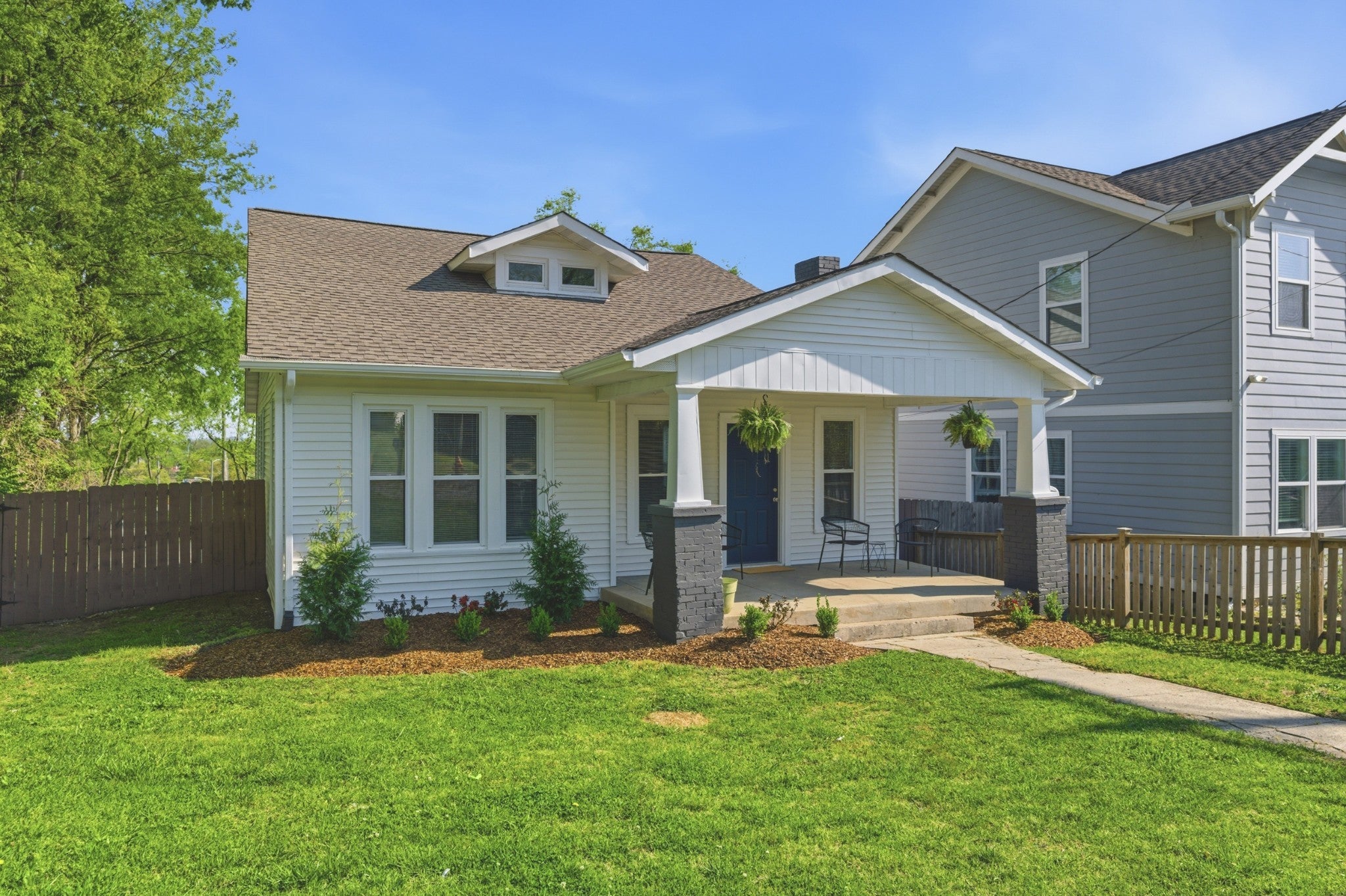 Welcome home to 402 McIver Street! This Craftsman Bungalow style home is located just south of Downtown - minutes Melrose and 12 South, the zoo, Glenciff + Woodbine neighborhoods. The covered front porch is ready to be enjoyed just in time for the spring season. Inside you are greeted by a fabulous white painted brick fireplace, gleaming new floors + a cozy Living Room which flows seamlessly into the Dining Room. Two bedrooms are located on the main floor with a shared bathroom + dedicated Office. The Kitchen is bright with an abundance of natural light pouring in from the wall of windows leading you to the back deck. Upstairs offers a massive and completely private primary suite! Room for an office, sitting area + prepped for a secondary laundry room or wet bar. Dine al fresco on the back deck or start your day there with morning coffee. Back yard is fully fenced for the pups to play + offers additional parking off the alley. Updates: new roof, floors, light fixtures, gas range, dishwasher, interior / exterior paint, blinds, stair treads, French drain, gutter guards + fence stain. This home is ready for its new chapter!