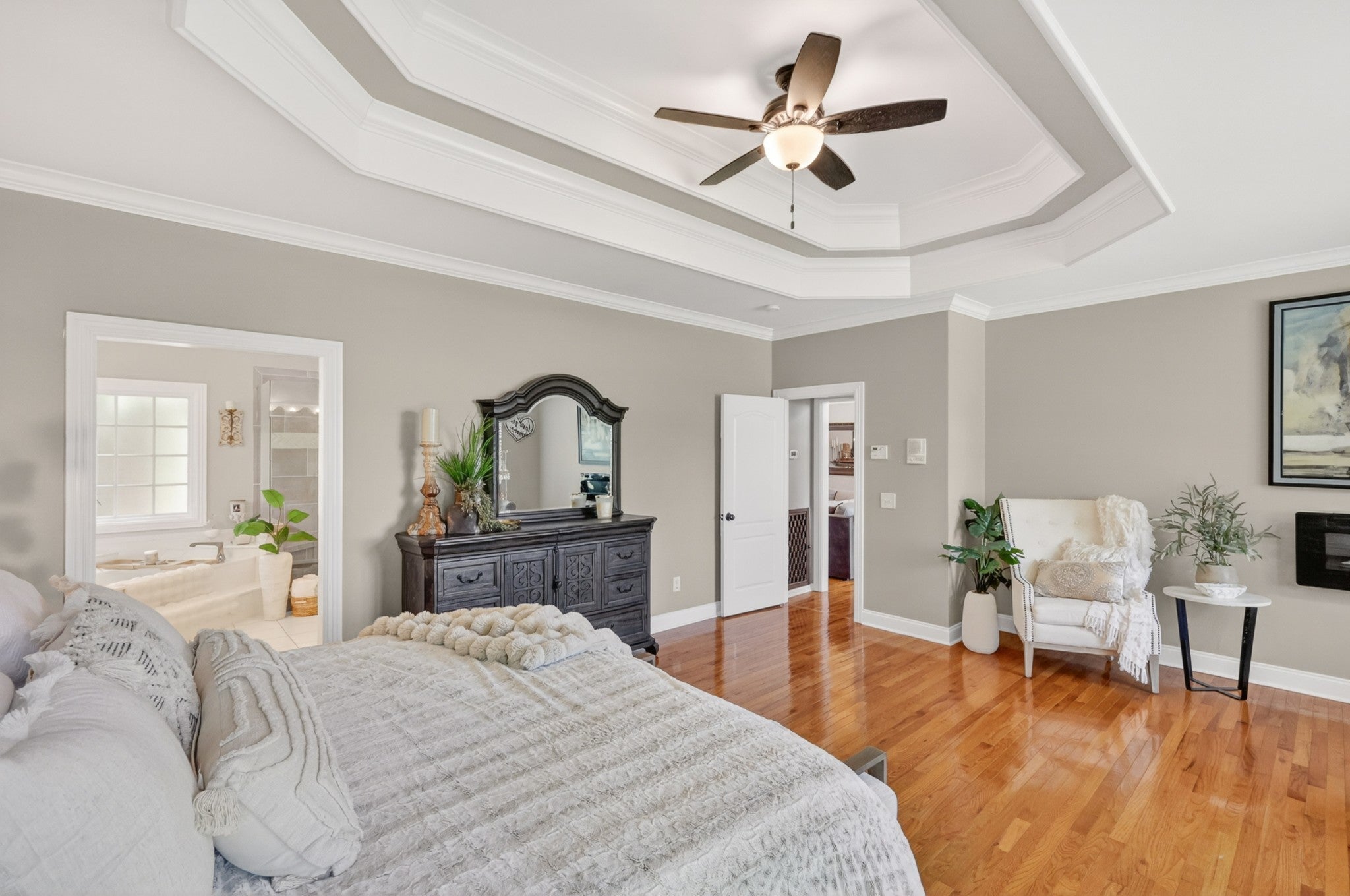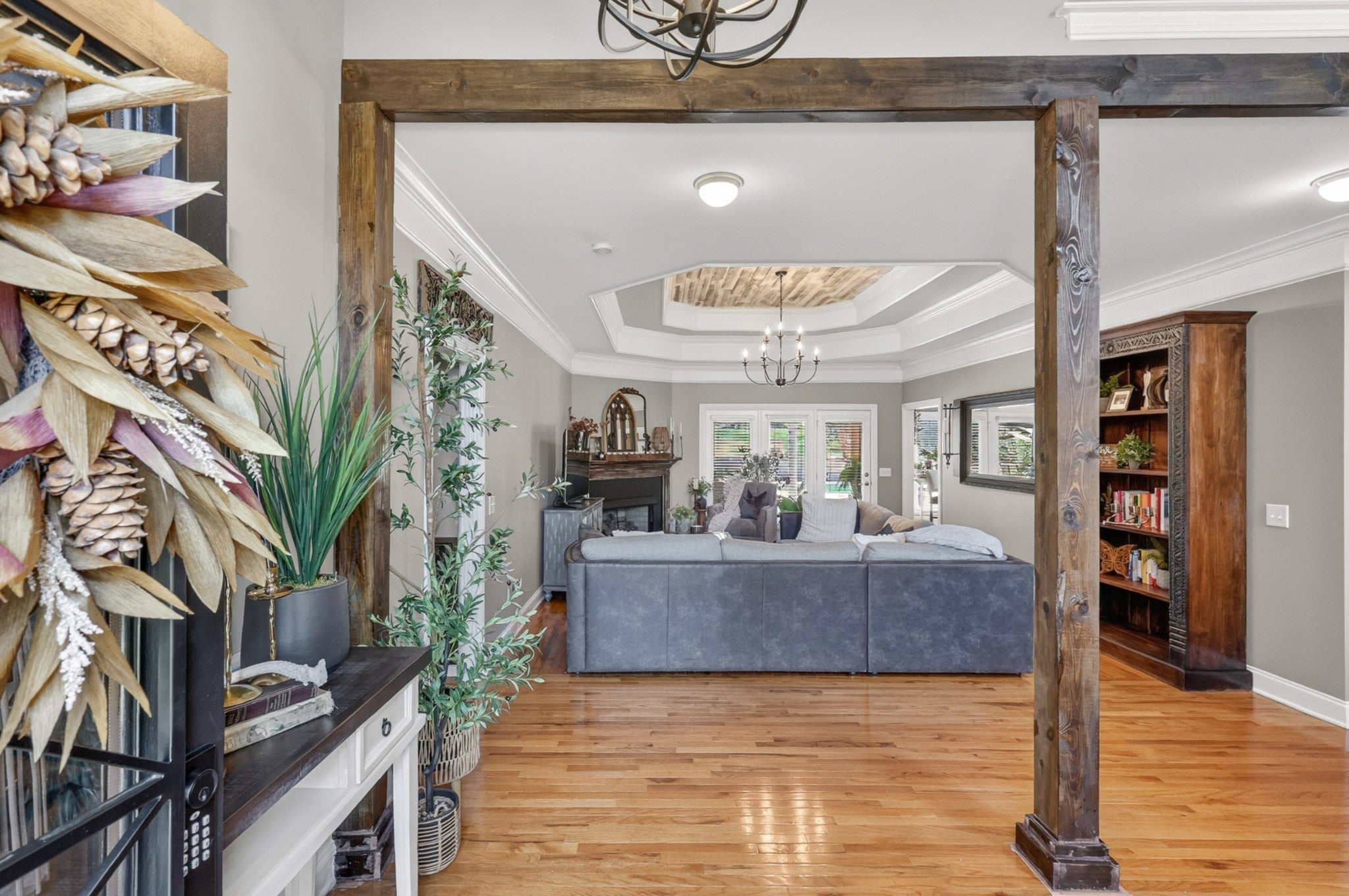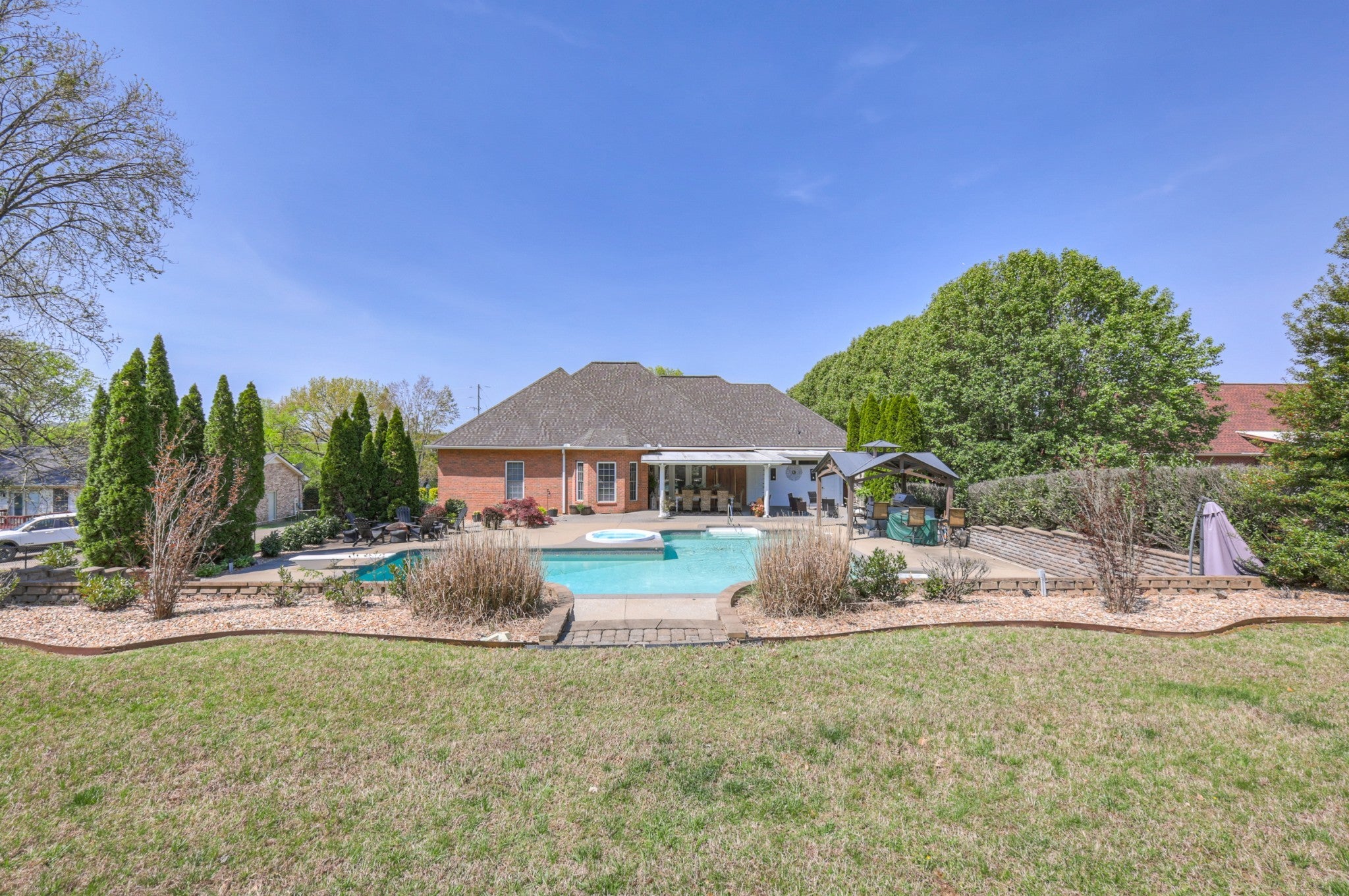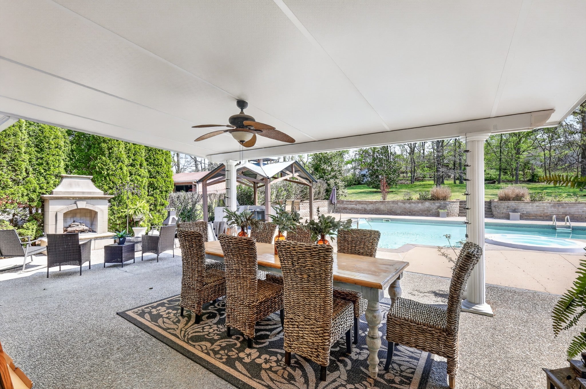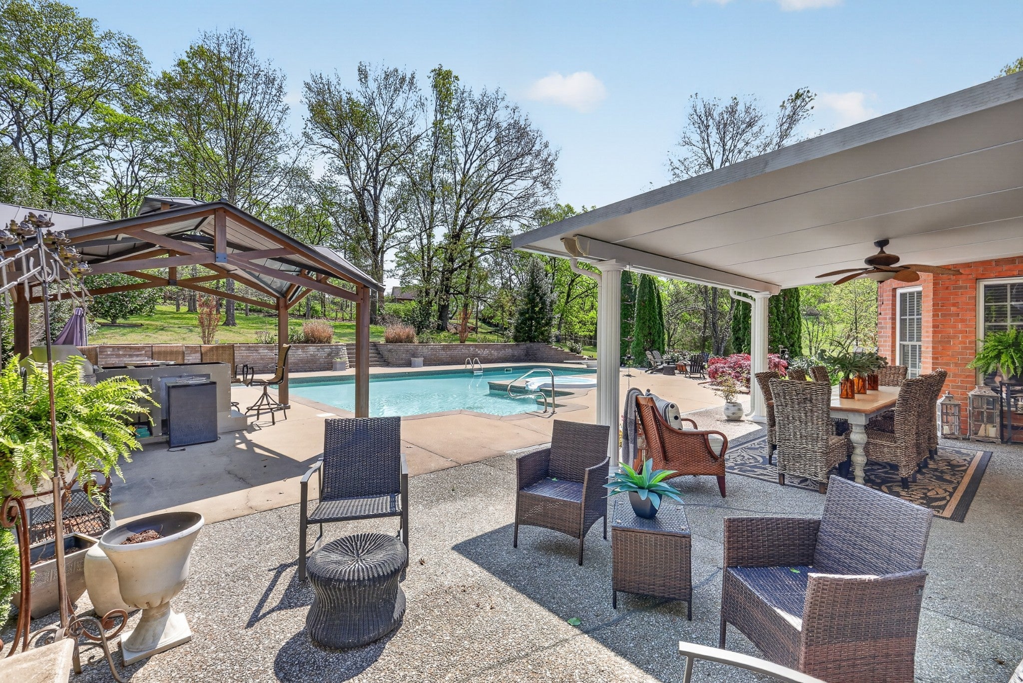 Welcome to a rare offering where space, privacy, and thoughtful design come together beautifully—all set on an expansive, over one-acre lot with no HOA. From the moment you arrive, stunning entry doors welcome you into a fully renovated home featuring an open, airy floor plan designed for both everyday living and effortless entertaining. The main level offers three spacious bedrooms, while a flexible fourth bedroom provides the perfect opportunity for a private office, fitness space, or homeschool room. Every kitchen and bathroom has been completely renovated with elevated finishes, creating a cohesive and timeless aesthetic throughout the home. The generous layout offers an abundance of space, with each room thoughtfully designed to feel both functional and inviting. The private primary suite is a true retreat, featuring a serene sitting area and a beautifully renovated spa-like bath complete with separate vanities, a soaking tub, walk-in shower, and a custom designer closet. Upstairs, the bonus room over the two-car garage is a standout space—featuring warm wood beams and statement fixtures, making it ideal for entertaining or relaxing. Step outside and experience a backyard that feels like a private resort. The expansive outdoor living spaces are centered around a stunning pool, creating the ultimate setting for hosting and unwinding. Enjoy a covered outdoor dining area, a cozy fireplace gathering space, and a brand-new outdoor kitchen designed for effortless entertaining. A convenient pool storage room and a fully fenced yard complete this exceptional outdoor retreat. This is more than a home—it’s a lifestyle you may never want to leave. 1% towards buyer closing costs and free appraisal with preferred lender, Kevin Kennerson, Lending Hand Mortgage.