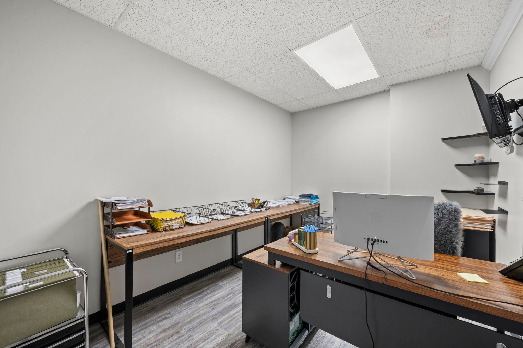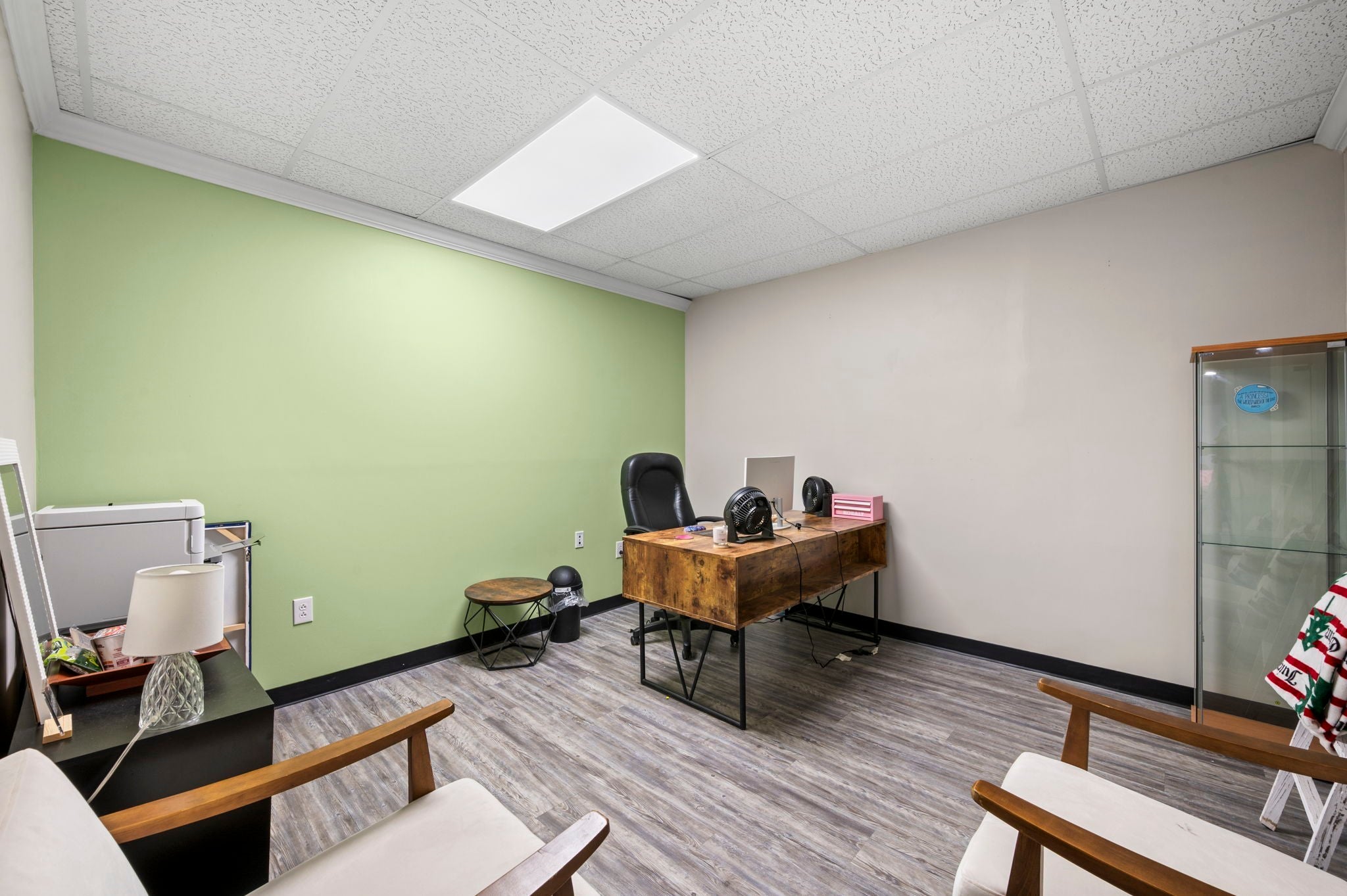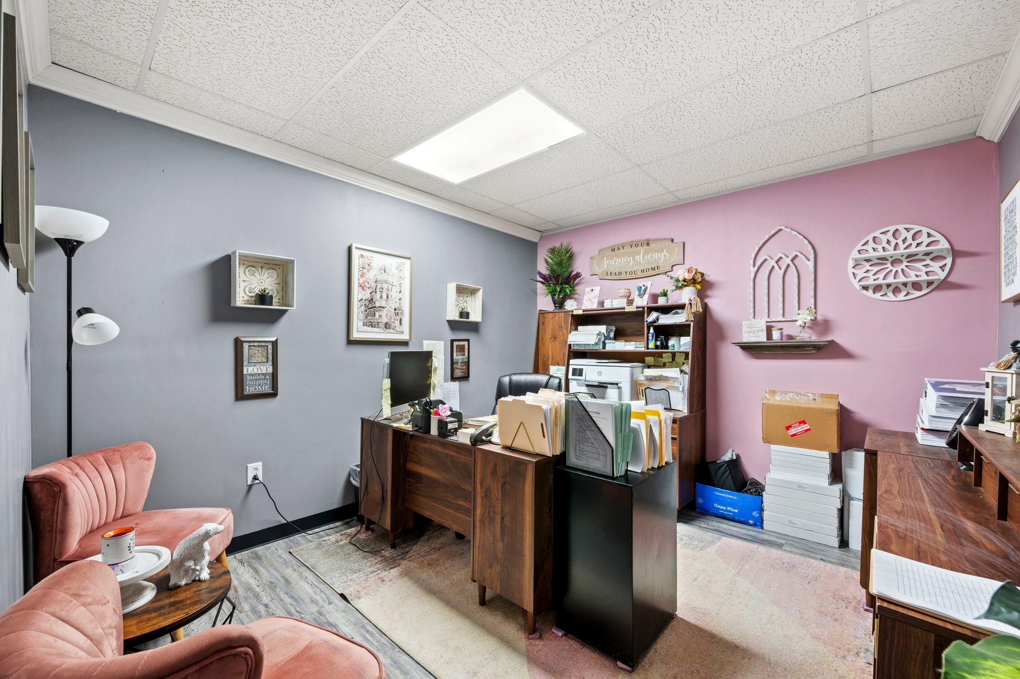 This spacious commercial office property offers a functional and versatile layout ideal for businesses seeking room to grow in a high-traffic location with excellent accessibility and visibility. The interior features 14 private offices, providing ample space for teams, private workspaces, or client meetings. A large conference room allows for collaborative meetings and presentations, while the welcoming front lobby and reception area create a professional first impression for clients and guests. The property also includes a full kitchen (stove/oven and dishwasher included) and breakroom, a two-stall restroom, and multiple storage solutions including attic storage, a back storage room, and additional storage space near the lobby, making it well-suited for day-to-day business operations. With its generous layout and variety of office and support spaces, this property is well suited for professional services, administrative offices, consulting firms, or growing businesses looking for a substantial and flexible office environment. *Photos of properties are for general representation and floor plan purposes only. Paint color, appliances, flooring and other interior fixtures may be different. A viewing of the actual residence can be scheduled upon approved application. *
