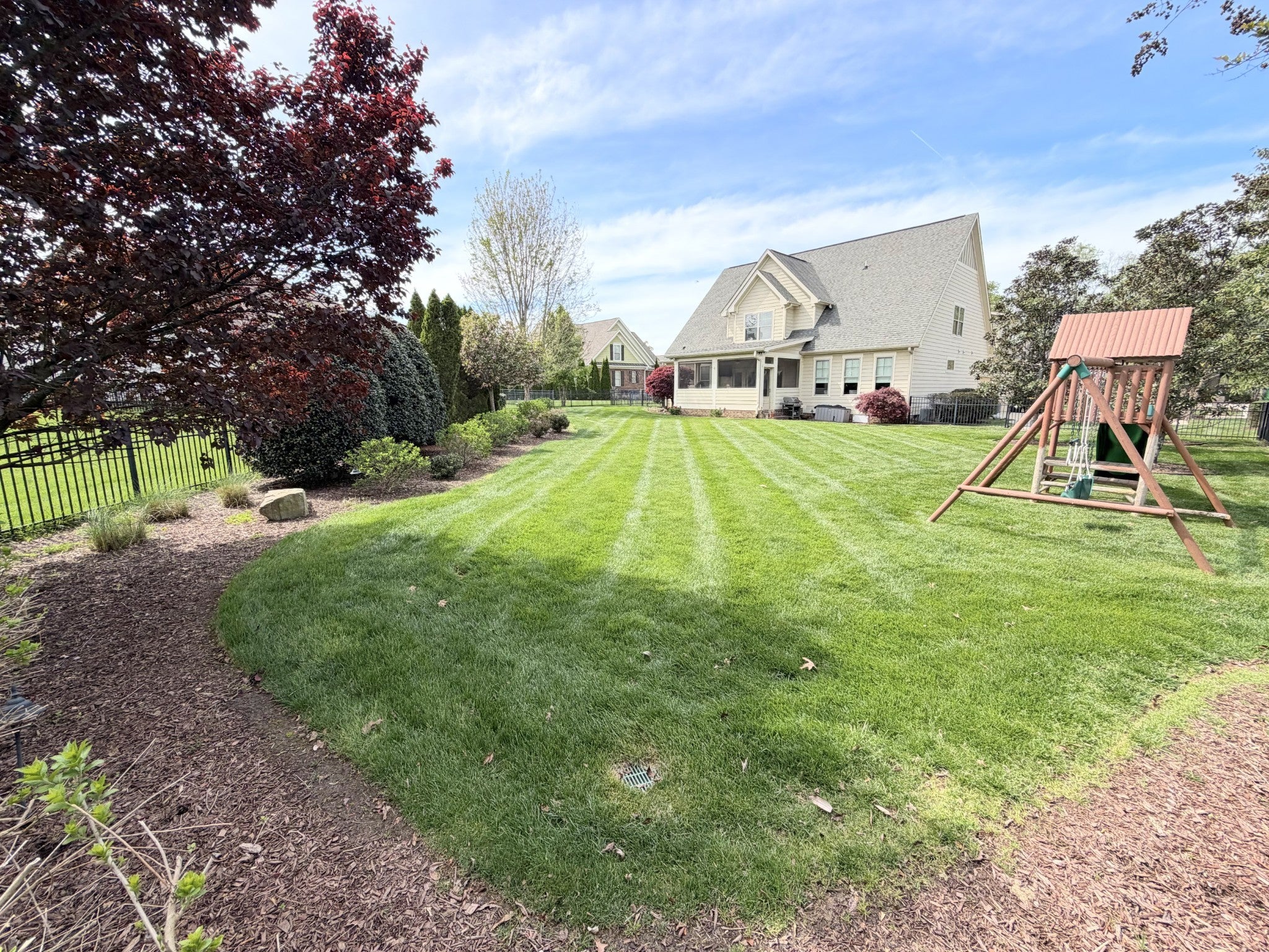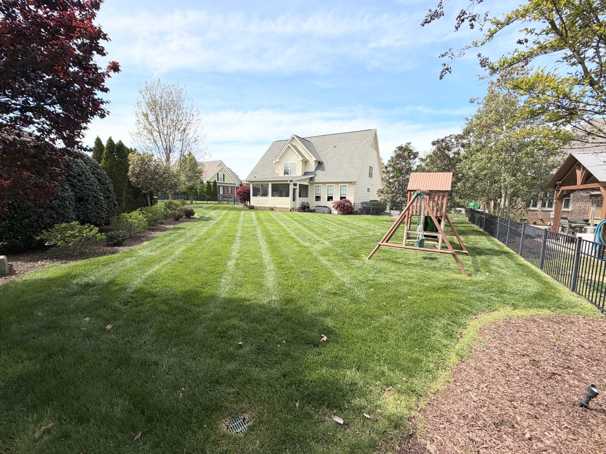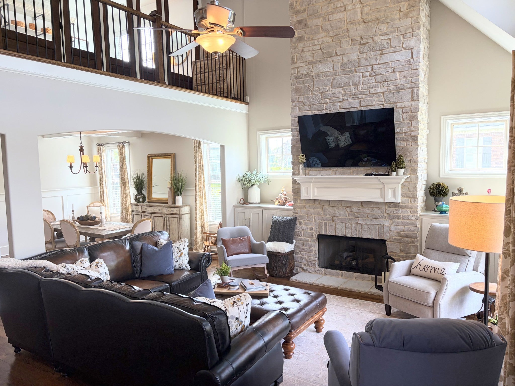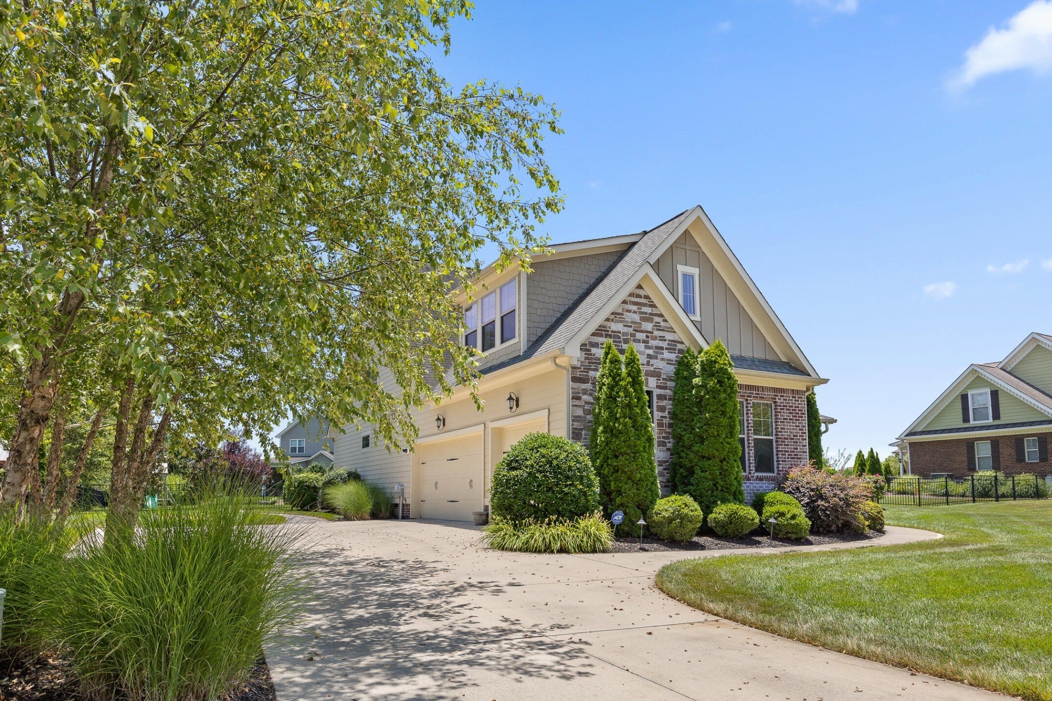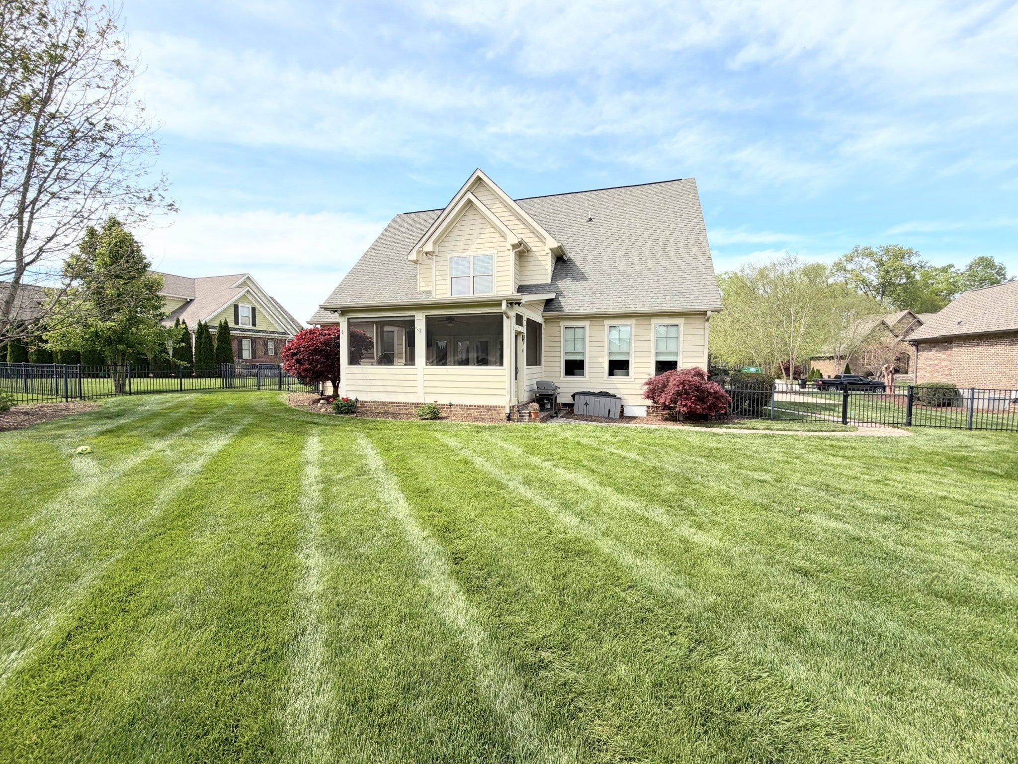 Luxury Lake Living in a Gated Community - Welcome to this exceptional Waters-Holland built 4BR, 3.5BA, 3 car garage home w/two deeded boat slips and access to Georgetown Bay. Step inside this amazing home where you are welcomed with soaring ceilings and a beautiful winding staircase. The two story living room w/stone fireplace opens into a large formal dining room. The luxurious eat-in kitchen is truly the heart of the home w/custom cabinetry, stainless appliances, granite countertops and 2 pantries. Recent upgrades include re-finished hardwoods, fresh paint, a whole-house Kinetico water filtration system, new gas cooktop & stainless refrigerator. There is a large screened in back-porch - this extension of the kitchen & dining area provides abundant living space for family and friends to gather. Right off the kitchen is a small nook that could be a small office, reading nook or homework area - currently it is home to the grandbabies play space. The spacious laundry room features plenty of cabinetry for storage. The main-level primary bedroom features a spa like bathroom w/large custom tiled shower, separate soaking tub, double vanity & a large walk in closet w/built in cabinetry - providing shelving, rods & drawers for storage. On the second level, you’ll find 3 generously sized bedrooms and 2 recently remodeled bathrooms. One of the upstairs bedrooms is being used as a playroom, w/playhouse & pool table. There is a dedicated upstairs office space w/lake views - this space could be easily converted into yet another bedroom. With upgrades around every corner and no detail overlooked, this home offers a rare combination of style, function, and convenience. The fenced in backyard is beautifully manicured w/professionally landscaped beds, irrigation and landscape lighting. The sale includes deeded boat slip #23 and a double jet ski slip. Home also features a tankless water heater, central vacuum system, a fully encapsulated crawlspace with dehumidifier and 2 sump pumps.