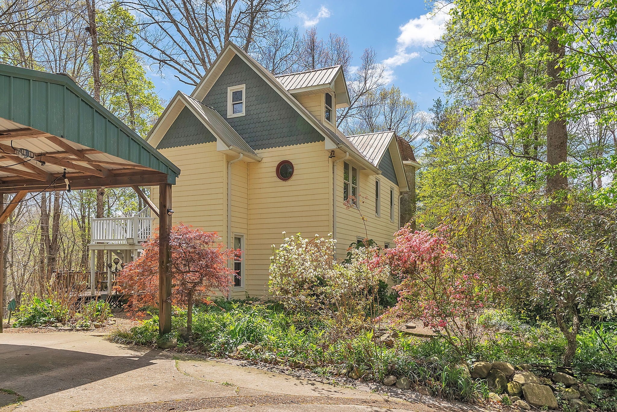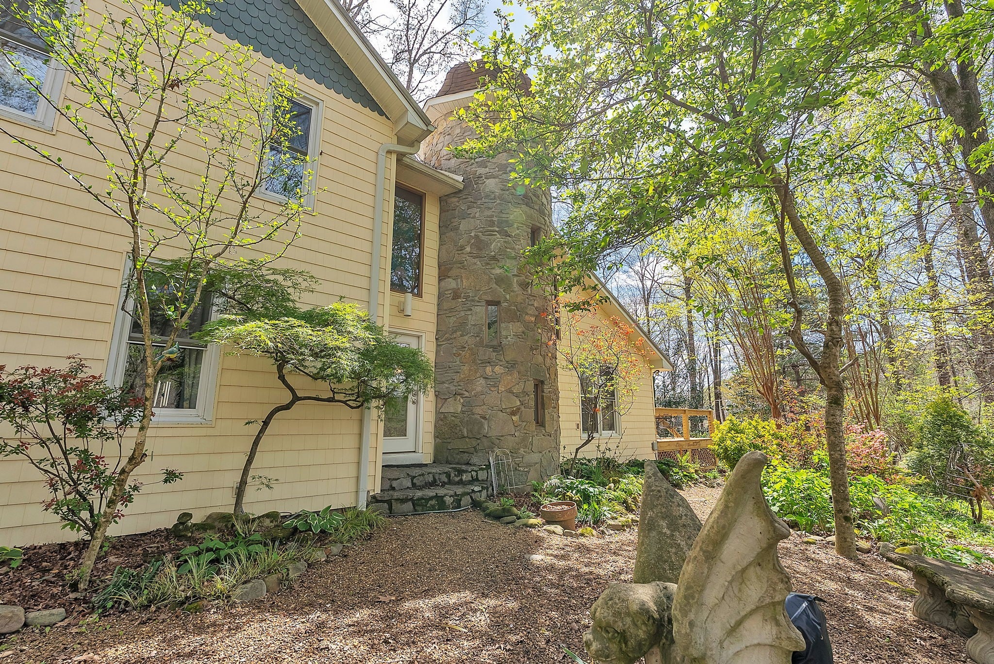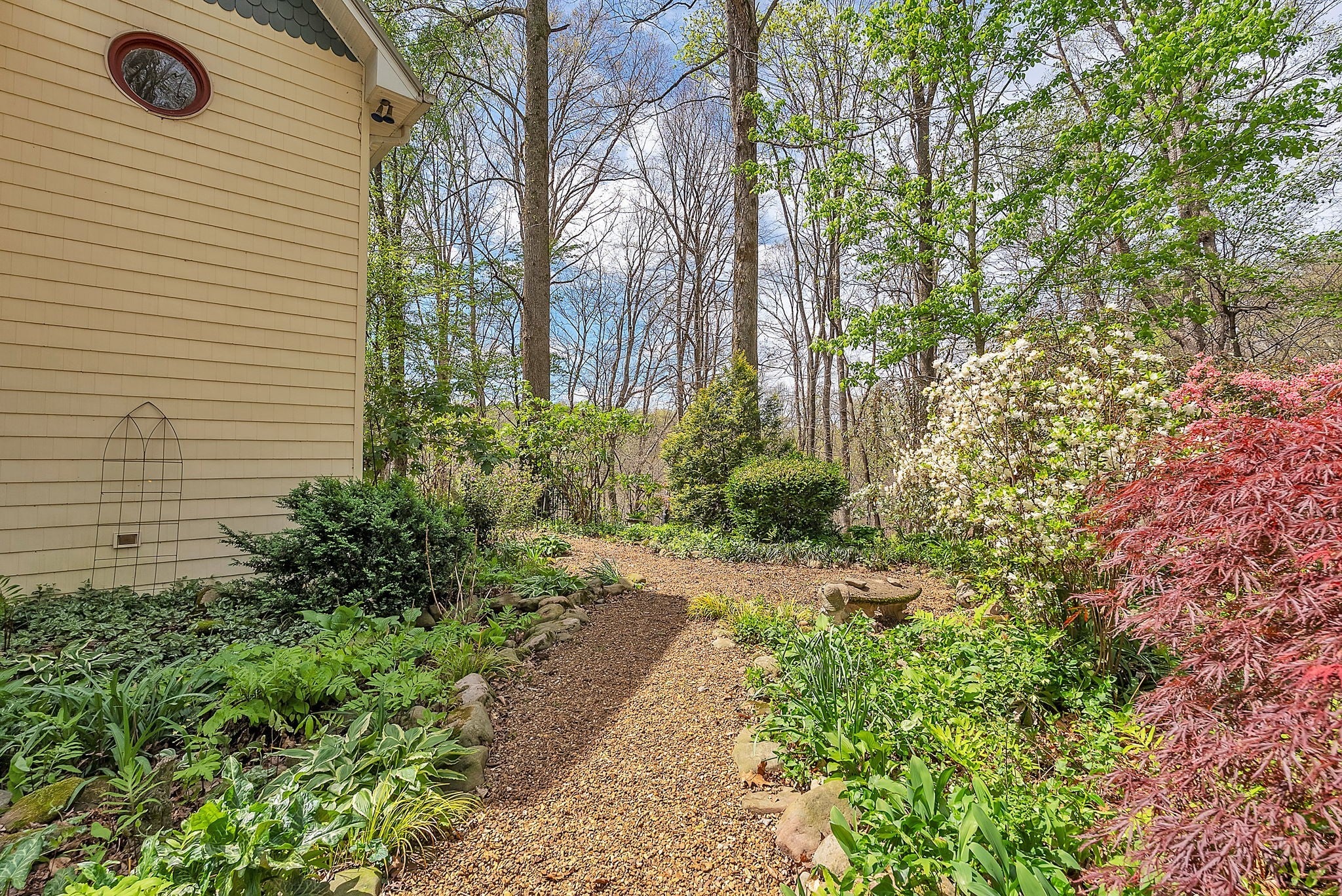 Tucked away on nearly 6 acres of wooded privacy, this Manchester retreat feels straight out of a storybook. Winding pea gravel pathways lead through lush low maintenance landscaping and hidden gardens perfect for quiet moments or entertaining. Inside, this 3-bedroom home offers over 3,000 sq ft of character and comfort, with multiple living areas with lots of storage, laundry capable on 1st & 2nd floors, a partial basement with an outside entrance for recreation or storage, and a bonus room/office on the third floor. The primary suite is a private escape, and every room is designed with warmth, style, and versatility. Don't miss the Murphy Bed on the second floor. Step outside to enjoy a rare balance of privacy and livability...morning coffee on the deck, evening strolls through the gardens, and weekends spent under the trees. This is more than a home; it’s a lifestyle.