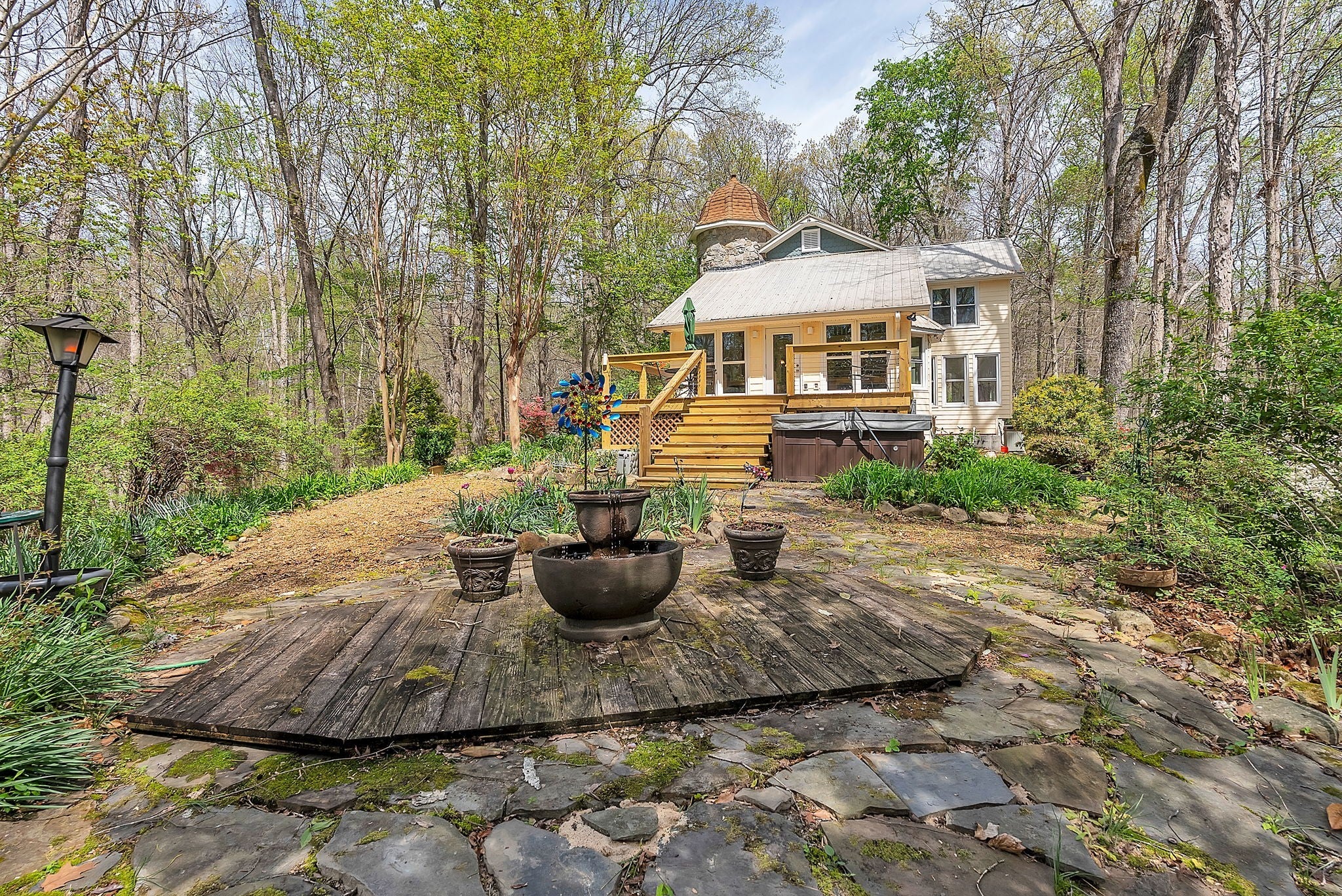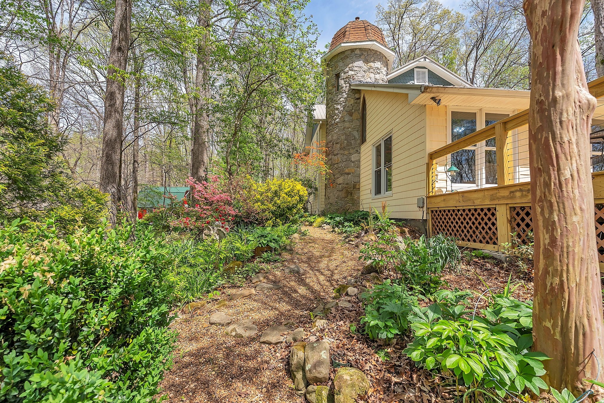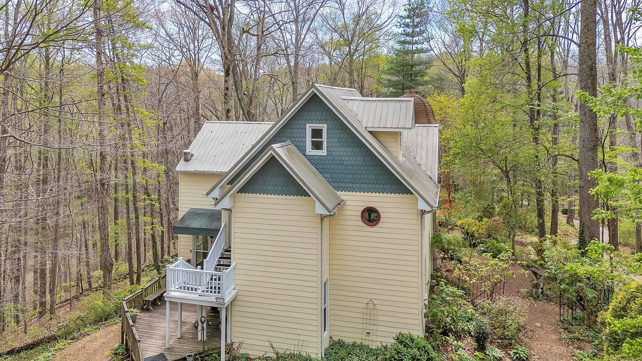 Tucked away on nearly 6 acres of wooded privacy, this Manchester retreat feels straight out of a storybook. Winding pea gravel pathways lead through lush low maintenance landscaping and hidden gardens perfect for quiet moments or entertaining. Inside, this 3-bedroom home offers over 3,000 sq ft of character and comfort, with multiple living areas with lots of storage, laundry capable on 1st & 2nd floors, a partial basement with an outside entrance for recreation or storage, and a bonus room/office on the third floor. The primary suite is a private escape, and every room is designed with warmth, style, and versatility. Don't miss the Murphy Bed on the second floor. Step outside to enjoy a rare balance of privacy and livability...morning coffee on the deck, evening strolls through the gardens, and weekends spent under the trees. This is more than a home; it’s a lifestyle.