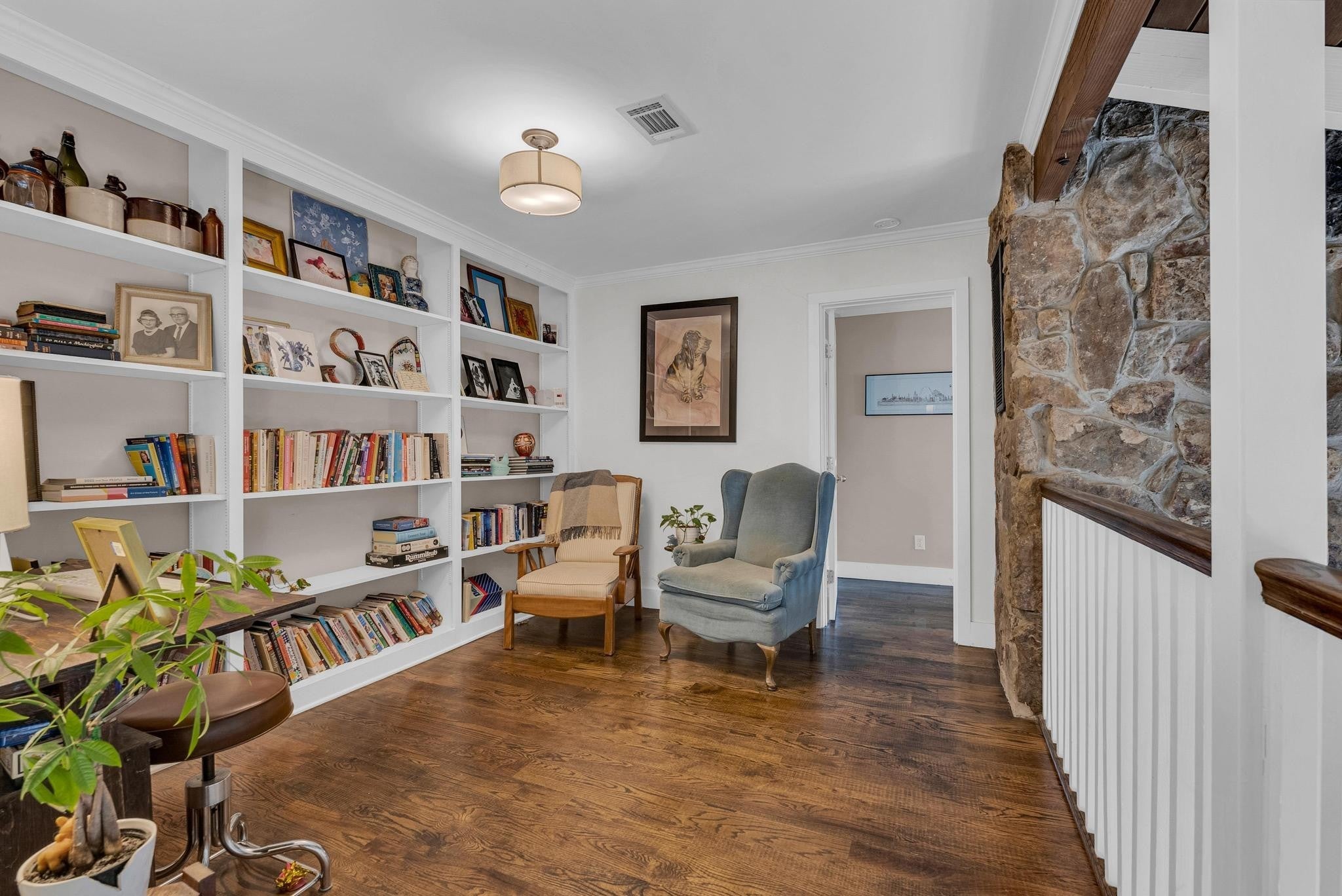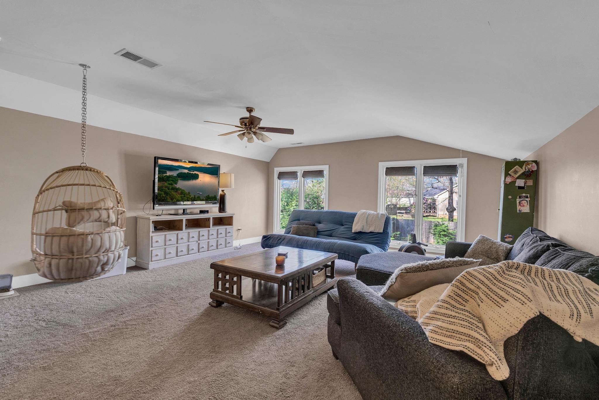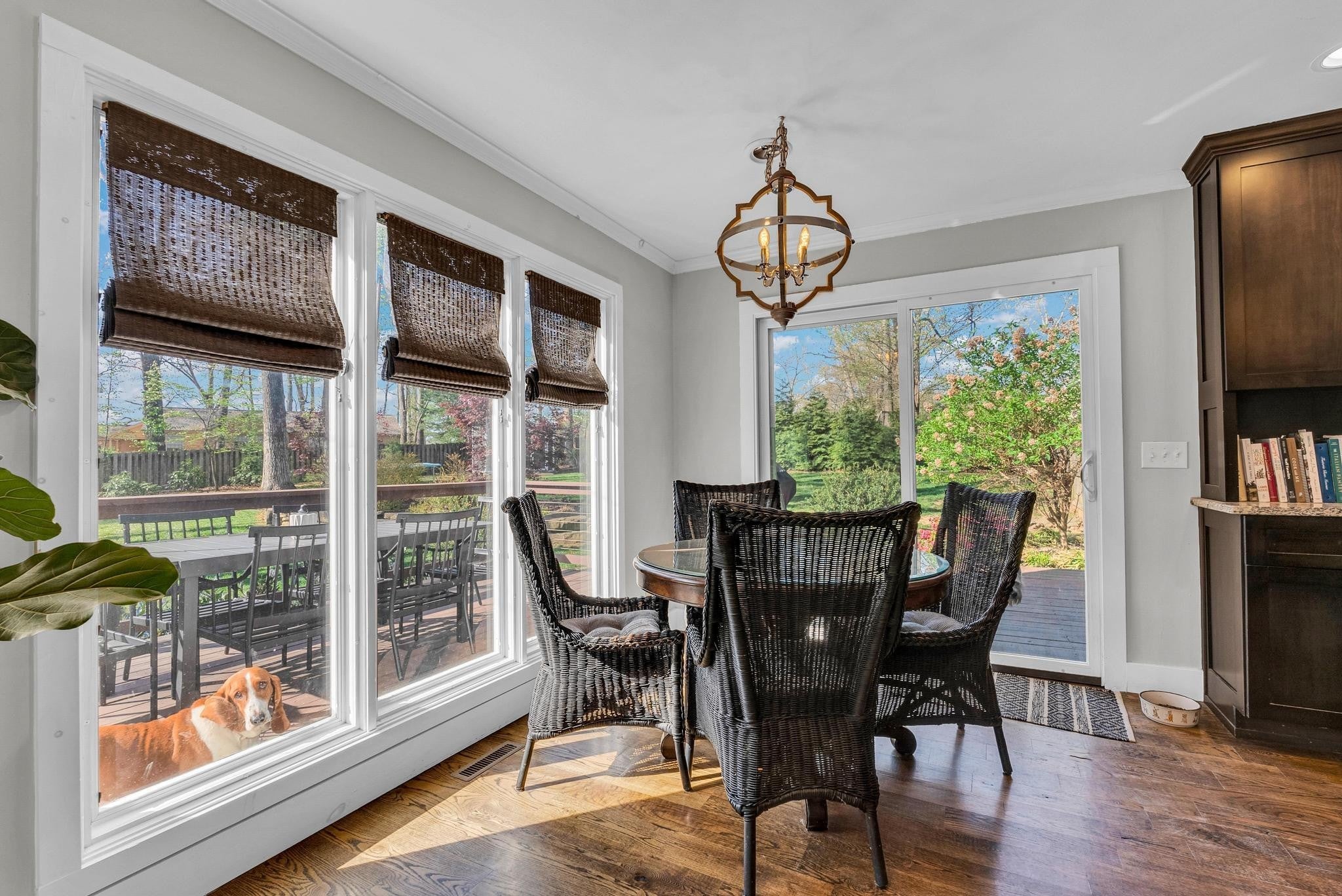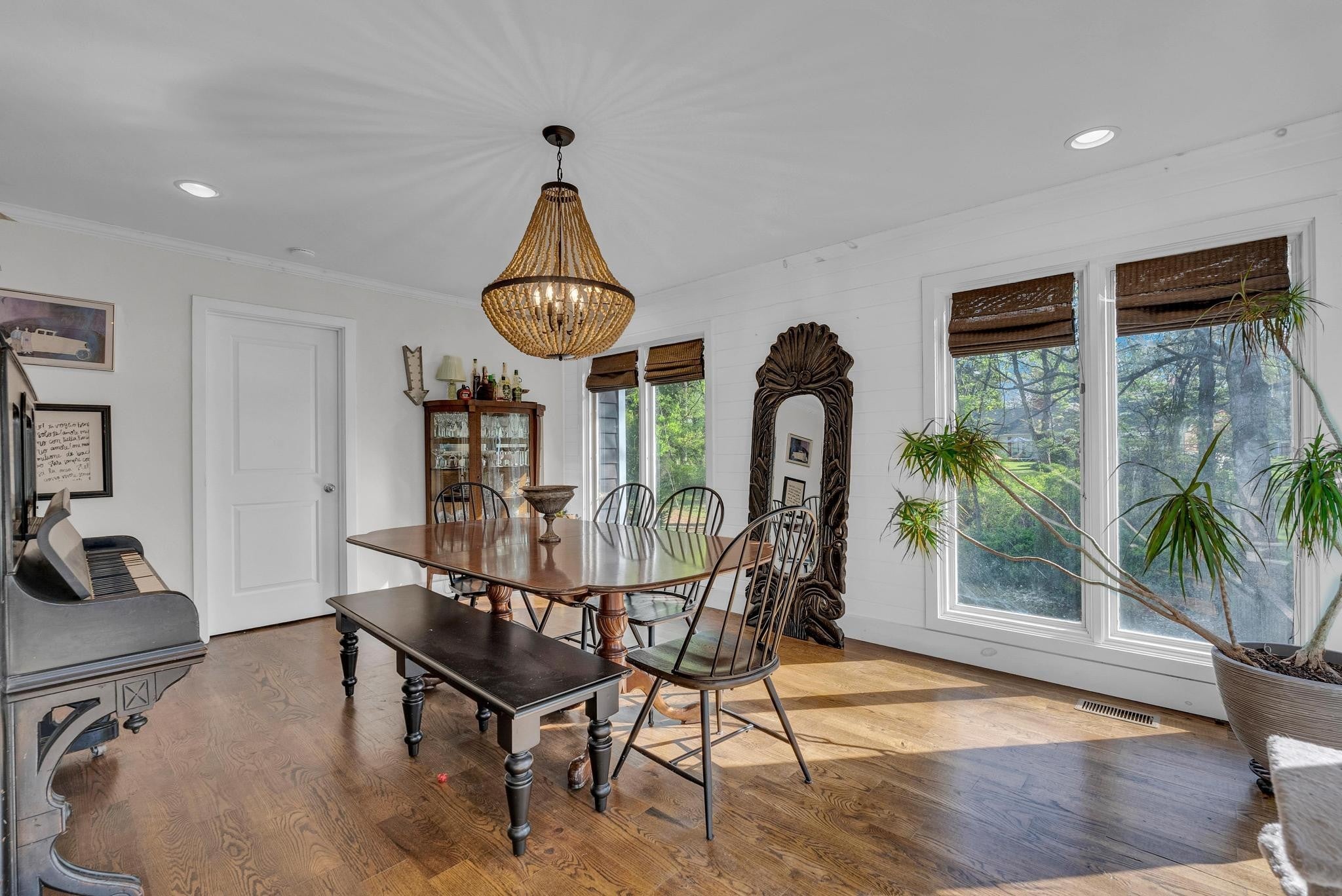 Exceptional 4-bedroom, 2.5-bath contemporary residence set on a private, tree-lined lot in an established setting. A striking architectural exterior with rich charcoal tones, dramatic rooflines, and manicured landscaping creates unforgettable curb appeal. Inside, sophisticated living spaces are anchored by a stunning floor-to-ceiling stone fireplace, blending timeless elegance with modern design. The updated kitchen features stylish finishes, quality cabinetry, and ample workspace, and is seamlessly connected to the living room—perfect for everyday living and entertaining. On the opposite side of the living room, a dedicated dining room provides a defined yet accessible space for hosting gatherings. A spacious bonus room offers flexibility for a home office, media room, or additional living space to suit your needs. Step outside to an expansive deck overlooking a park-like, fully fenced backyard—an ideal setting for relaxing, entertaining, or enjoying the peaceful natural surroundings. Expansive windows invite natural light and serene views throughout, while the thoughtfully designed floor plan ensures effortless flow for both refined entertaining and everyday comfort. Surrounded by mature trees and lush seasonal color, this property offers a rare blend of privacy, luxury, and architectural character—truly a standout residence that combines modern sophistication with natural beauty.