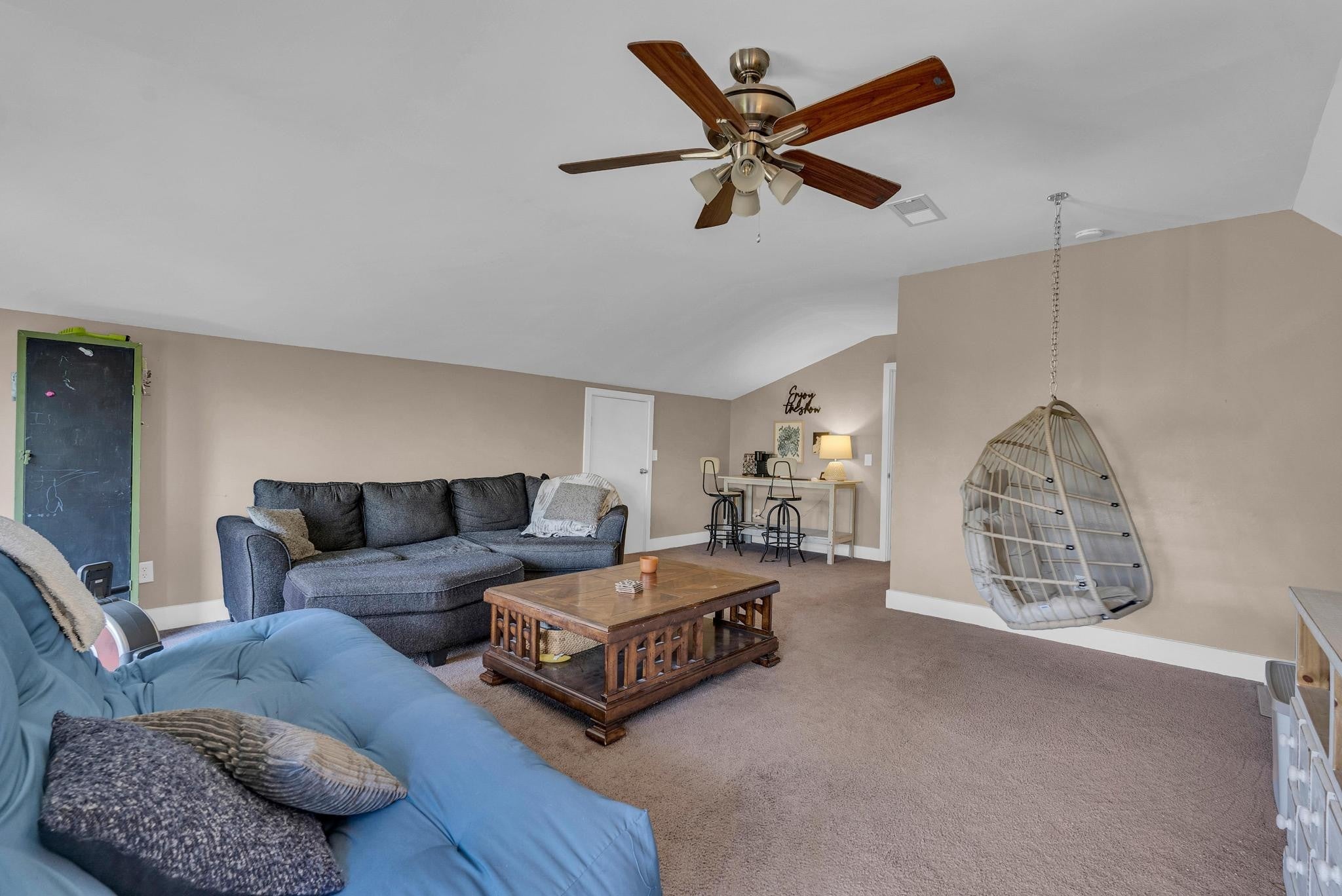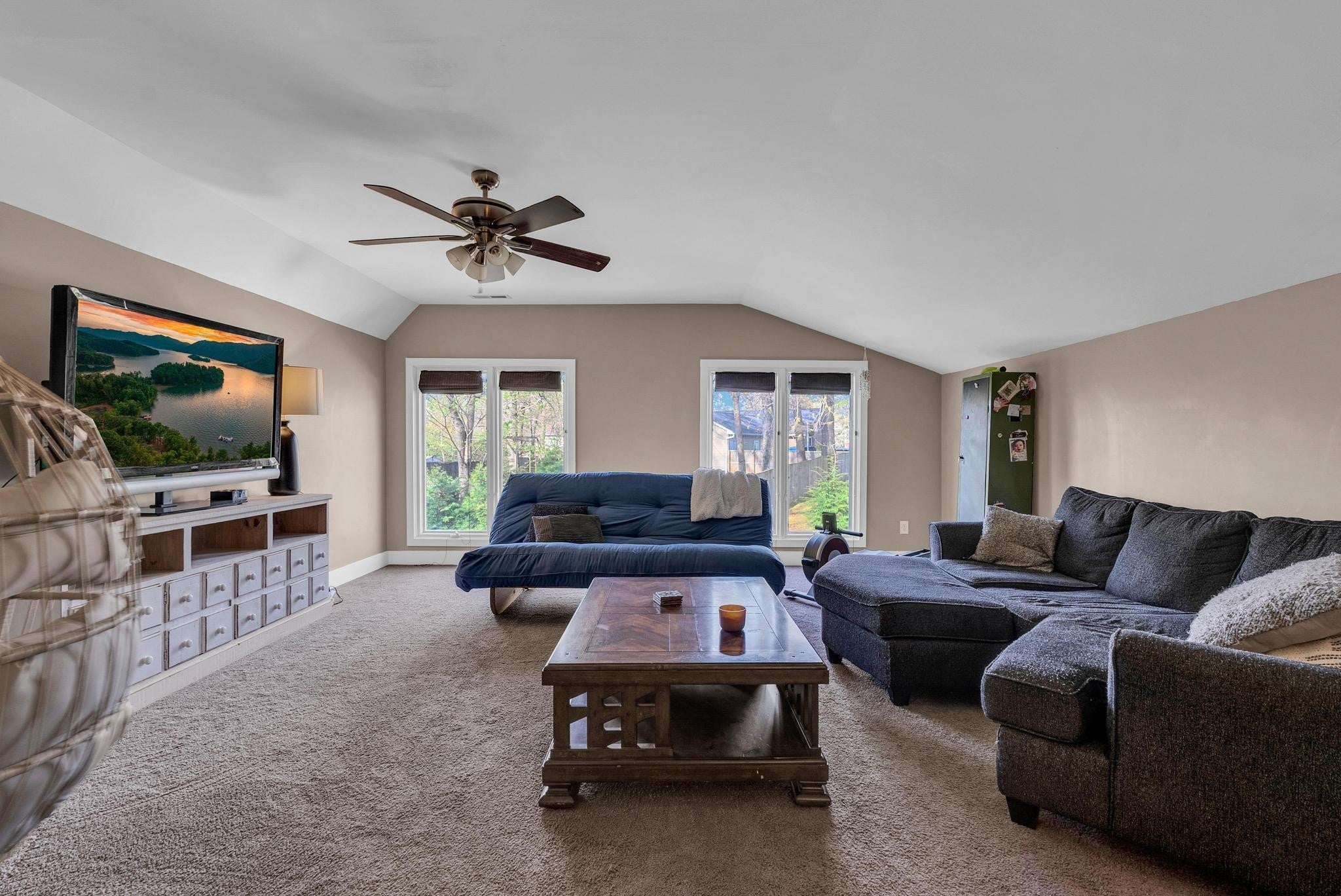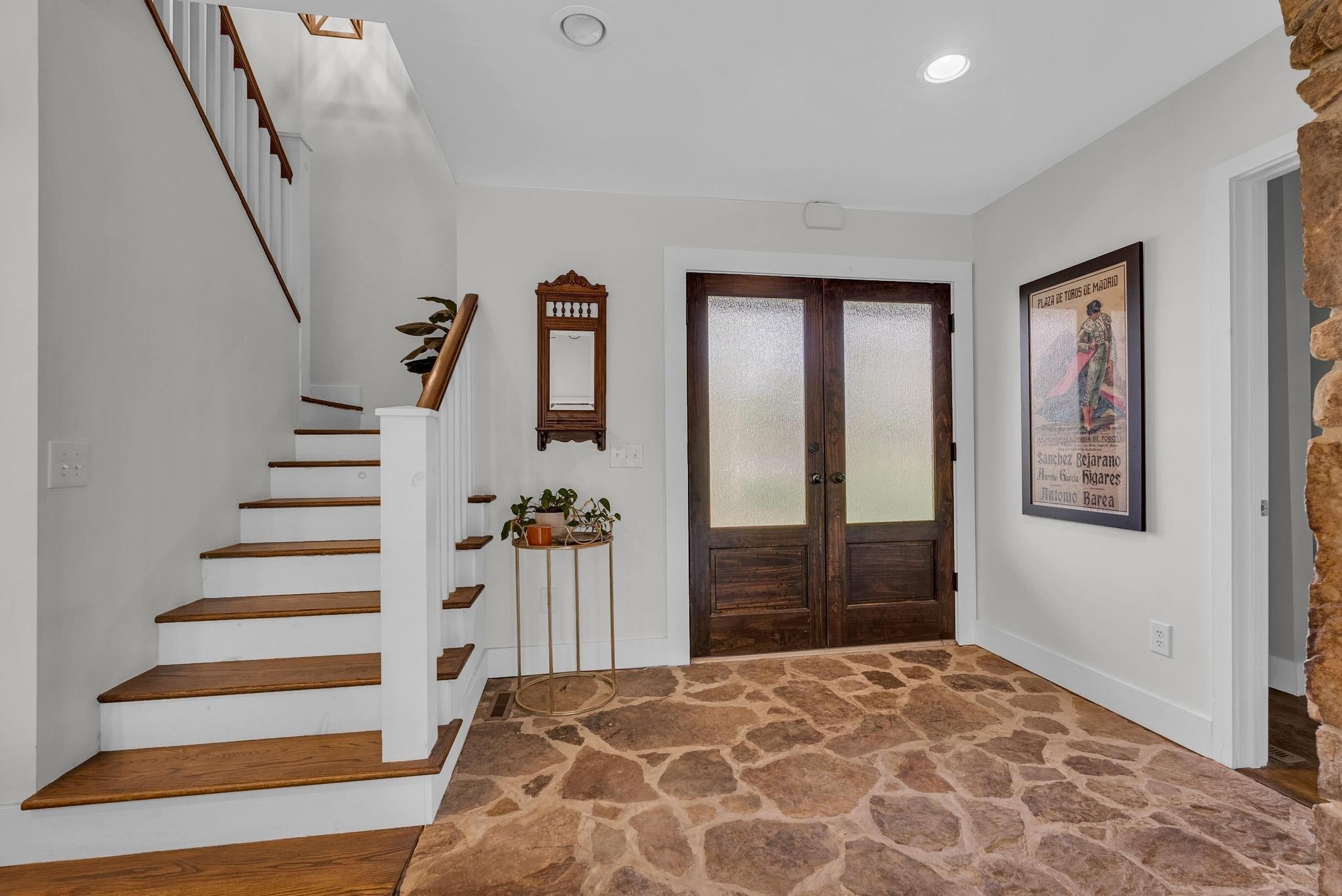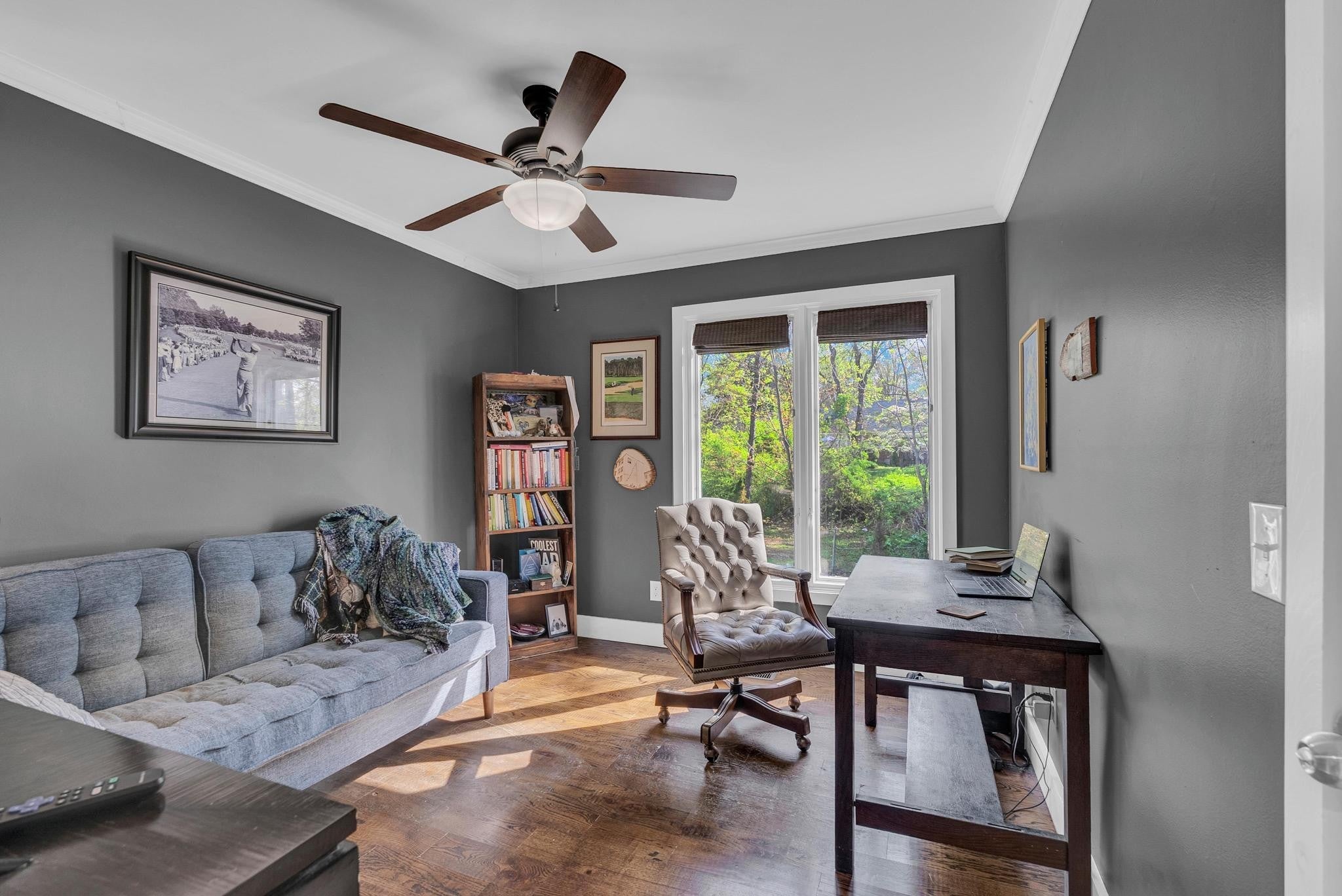 Exceptional 4-bedroom, 2.5-bath contemporary residence set on a private, tree-lined lot in an established setting. A striking architectural exterior with rich charcoal tones, dramatic rooflines, and manicured landscaping creates unforgettable curb appeal. Inside, sophisticated living spaces are anchored by a stunning floor-to-ceiling stone fireplace, blending timeless elegance with modern design. The updated kitchen features stylish finishes, quality cabinetry, and ample workspace, and is seamlessly connected to the living room—perfect for everyday living and entertaining. On the opposite side of the living room, a dedicated dining room provides a defined yet accessible space for hosting gatherings. A spacious bonus room offers flexibility for a home office, media room, or additional living space to suit your needs. Step outside to an expansive deck overlooking a park-like, fully fenced backyard—an ideal setting for relaxing, entertaining, or enjoying the peaceful natural surroundings. Expansive windows invite natural light and serene views throughout, while the thoughtfully designed floor plan ensures effortless flow for both refined entertaining and everyday comfort. Surrounded by mature trees and lush seasonal color, this property offers a rare blend of privacy, luxury, and architectural character—truly a standout residence that combines modern sophistication with natural beauty.