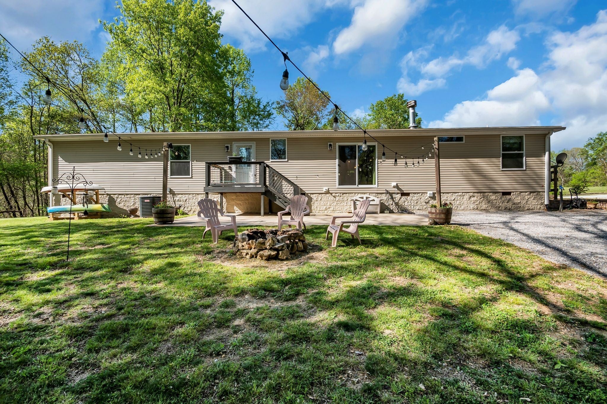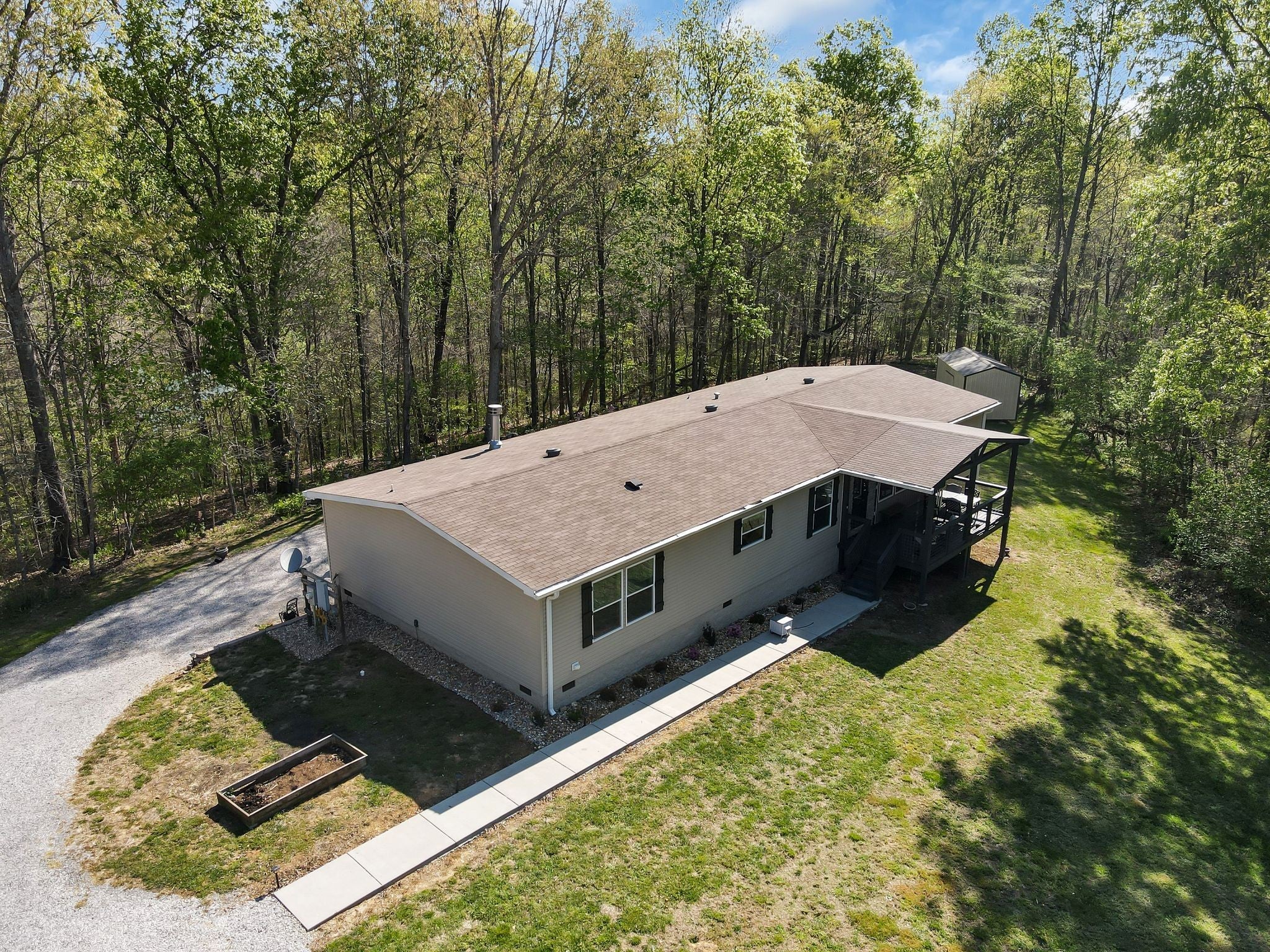 Just over one mile from the Lost Creek Boat Ramp on Tims Ford Lake, this beautiful nearly 10‑acre property offers the perfect blend of privacy, usability, and modern living. Mature woods surround the land, creating a natural buffer, while the open, level areas provide ideal space for a shop, barn, boat garage, or mini‑farm. A peaceful creek sits at the bottom of the hill behind the home, adding to the charm of the setting. The house is positioned toward the back of the property, well off the road, offering exceptional privacy. Built in 2021, the home features 2,356 sq ft of thoughtfully designed living space with high‑quality finishes and a spacious, modern layout. Finished with smooth, residential‑grade drywall and ceilings, it has the look and feel of a traditional site‑built residence. With 2x6 exterior construction and generous room sizes, the home delivers comfort, durability, & efficiency throughout. Inside, you’ll find four bedrooms, each with its own walk‑in closet, along with two full baths, two living areas, & a large mudroom/laundry room. The huge primary suite includes an en‑suite bathroom, & the massive kitchen provides outstanding storage & workspace, making it ideal for cooking, gathering, & entertaining. Outdoor living is just as inviting, with a covered front porch, a back porch leading to a fire‑pit sitting area, & plenty of room to enjoy the peaceful surroundings. The property also includes a dedicated 10x20 storage shed with ample room for tools, equipment, & seasonal items — plus enough space to park your zero‑turn. With a strong offer, the 2019 Gravely Pro Turn 260 with 60" deck can be included as part of the sale. A rare combination for a rural property, this home offers both exceptional privacy & modern convenience, including access to two fiber‑optic internet options & strong cell phone service. Whether you’re looking for acreage, modern comfort, or proximity to Tims Ford Lake, this property brings it all together in one remarkable package.