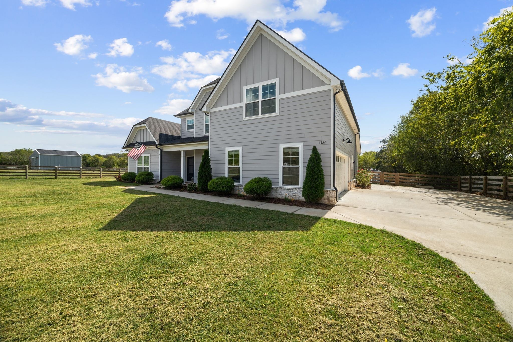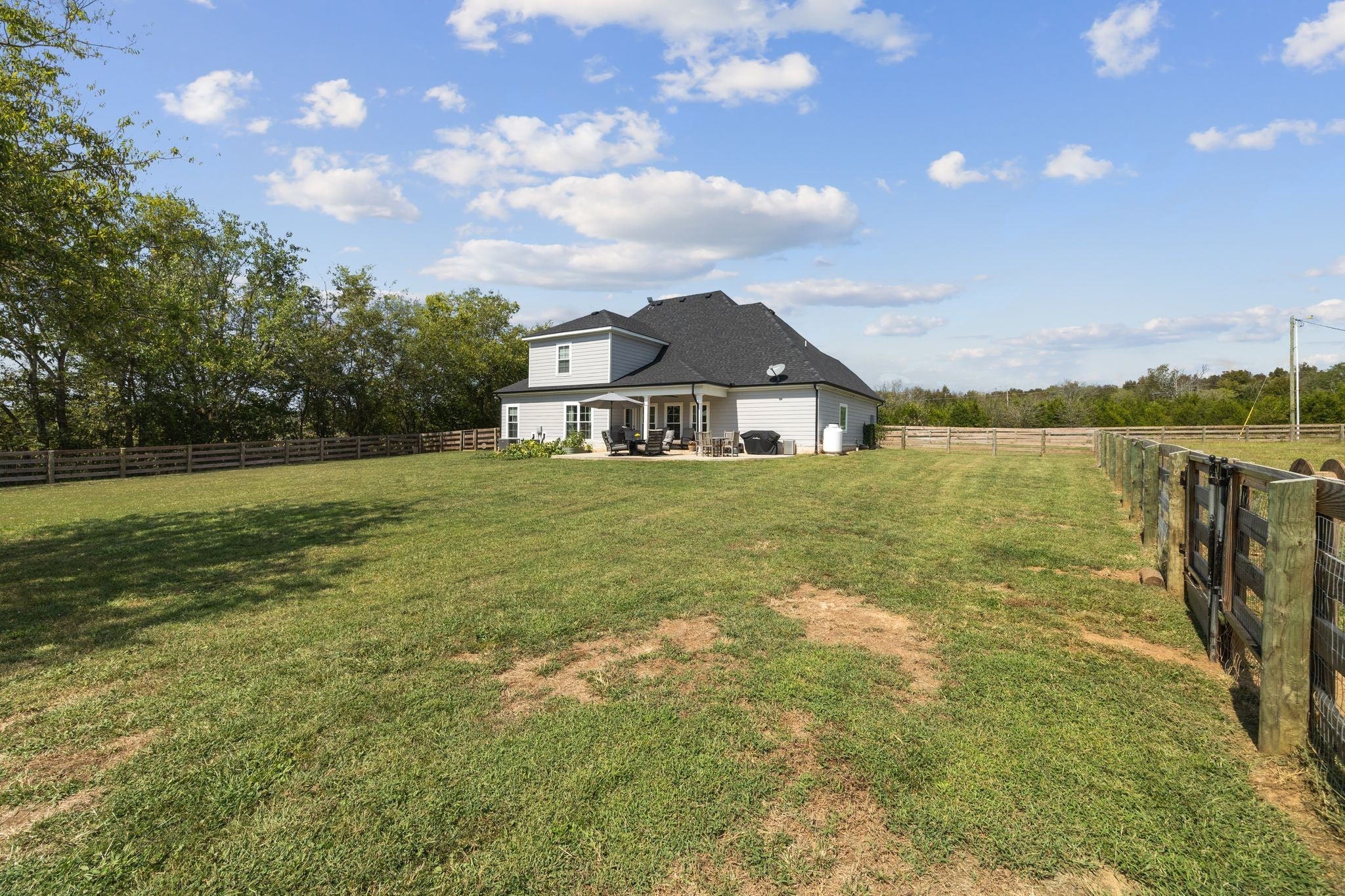 Looking for a turnkey mini farm with acreage and privacy — yet still close to town? Welcome to 3834 Holly Grove Road, a rare 5-acre country farmhouse outside city limits offering the freedom to bring horses, goats, chickens, trailers, RVs, and more. This fully fenced property is thoughtfully divided into two pastures plus a separate front and backyard area, creating a safe and functional setup for animals, hobbies, and everyday living. The 24x24 metal pole barn is fully equipped with utilities and was recently built out in 2024 to include multiple stalls and a tack room, with additional space for equipment or storage. A 16x10 Graceland wood shed adds even more versatility. Inside the home, the open floor plan features three bedrooms, a large bonus room, and an oversized flex room that easily functions as a fourth bedroom, making this home ideal for growing families, multigenerational living, or work-from-home needs. The primary suite is located on the main level, and high-end finishes throughout include granite countertops, tile backsplash, soft-close cabinets and drawers, stainless steel appliances, a kitchen nook for everyday meals, a separate dining area for gatherings, a gas fireplace, tall ceilings, and large windows that flood the living space with natural light. Enjoy peaceful mornings and relaxing evenings on the covered front and back porches while taking in the wide-open Tennessee views. Additional features include abundant storage, new garage storage racks, a reverse osmosis water filtration system, a septic tank replaced in 2022, brand-new field lines installed in 2024, and a fire pit in the backyard. Located in the welcoming community of Lascassas and just minutes from daily conveniences and approximately 45 minutes to Nashville, this move-in-ready mini farm offers the perfect blend of country living, modern comfort, usable land, and long-term value — a place where your animals have room to roam and your family truly feels at home.
